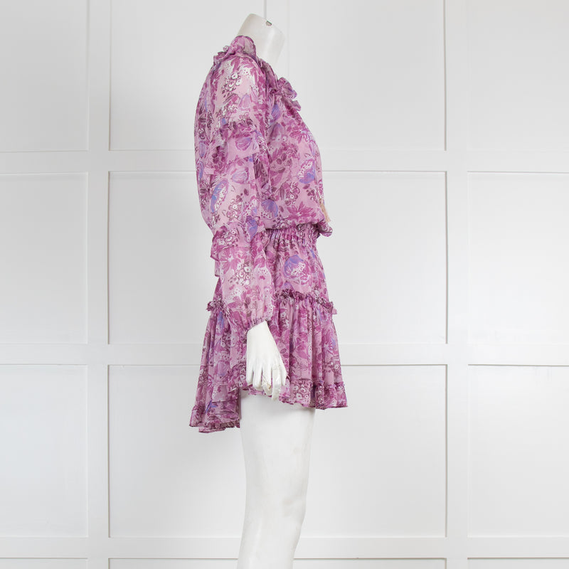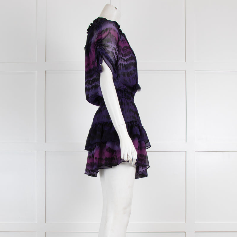 Misa Purple/Mauve Line Print Ruffle Mini Dress