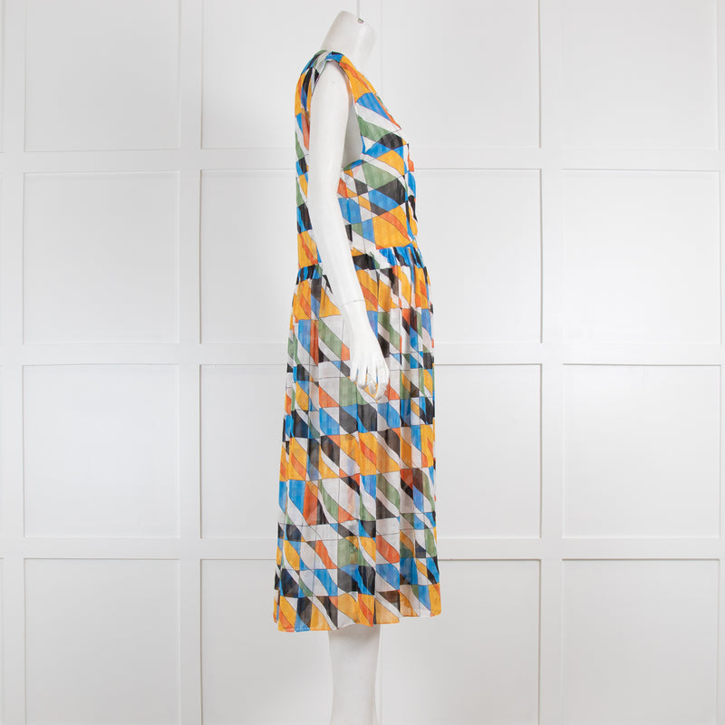 Carolina Herrera White Blue Floral Cotton Sleeveless Dress