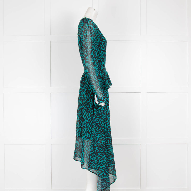 Markus Lupfer Green Animal Print Sheer Dress With Frill