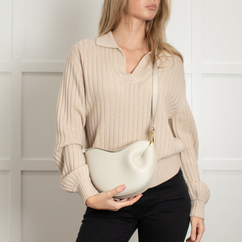 Polene Cream Grainy Leather Tonca Crossbody Bag
