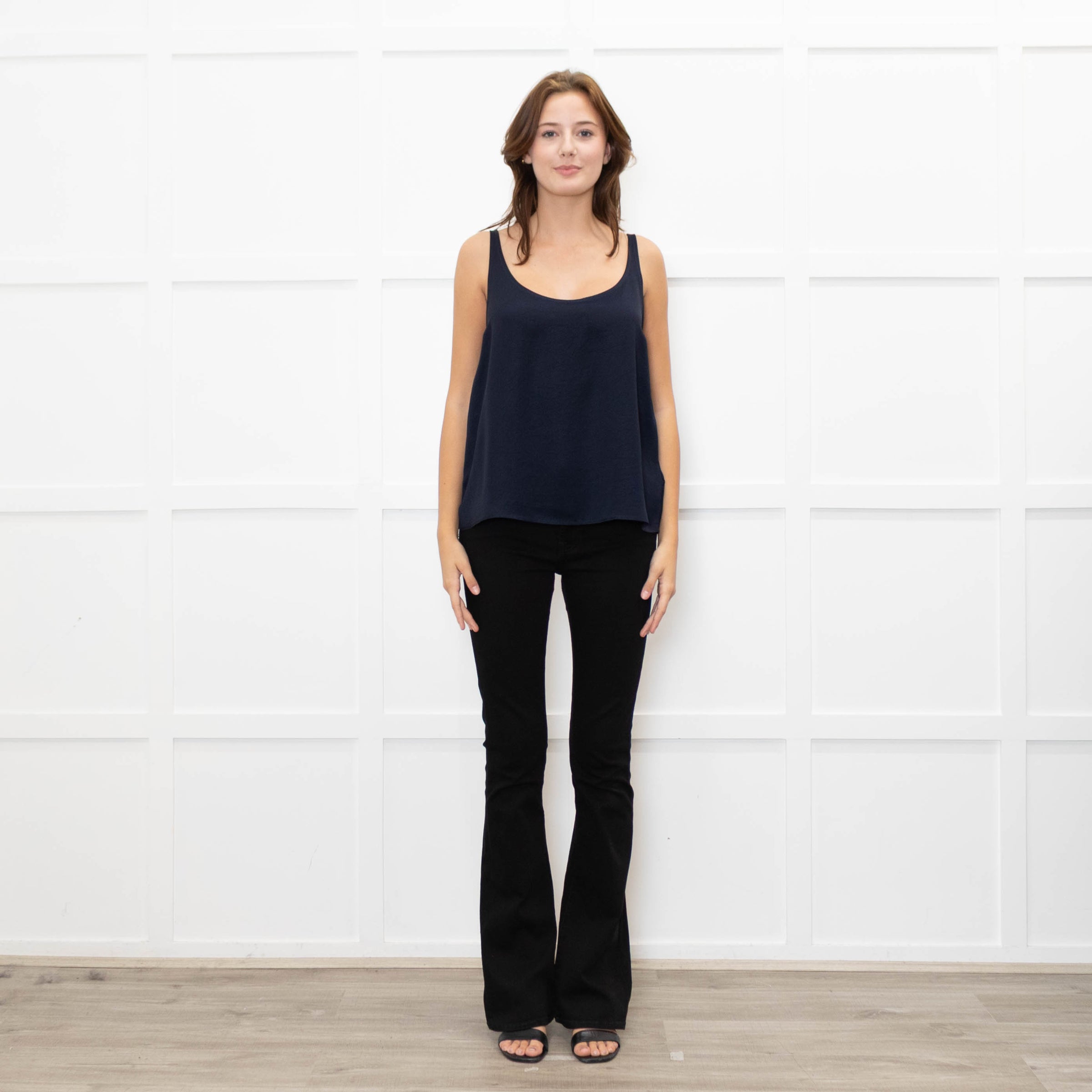 American Vintage navy camisole with a round neckline and longer front hem. Slightly loose fit.
