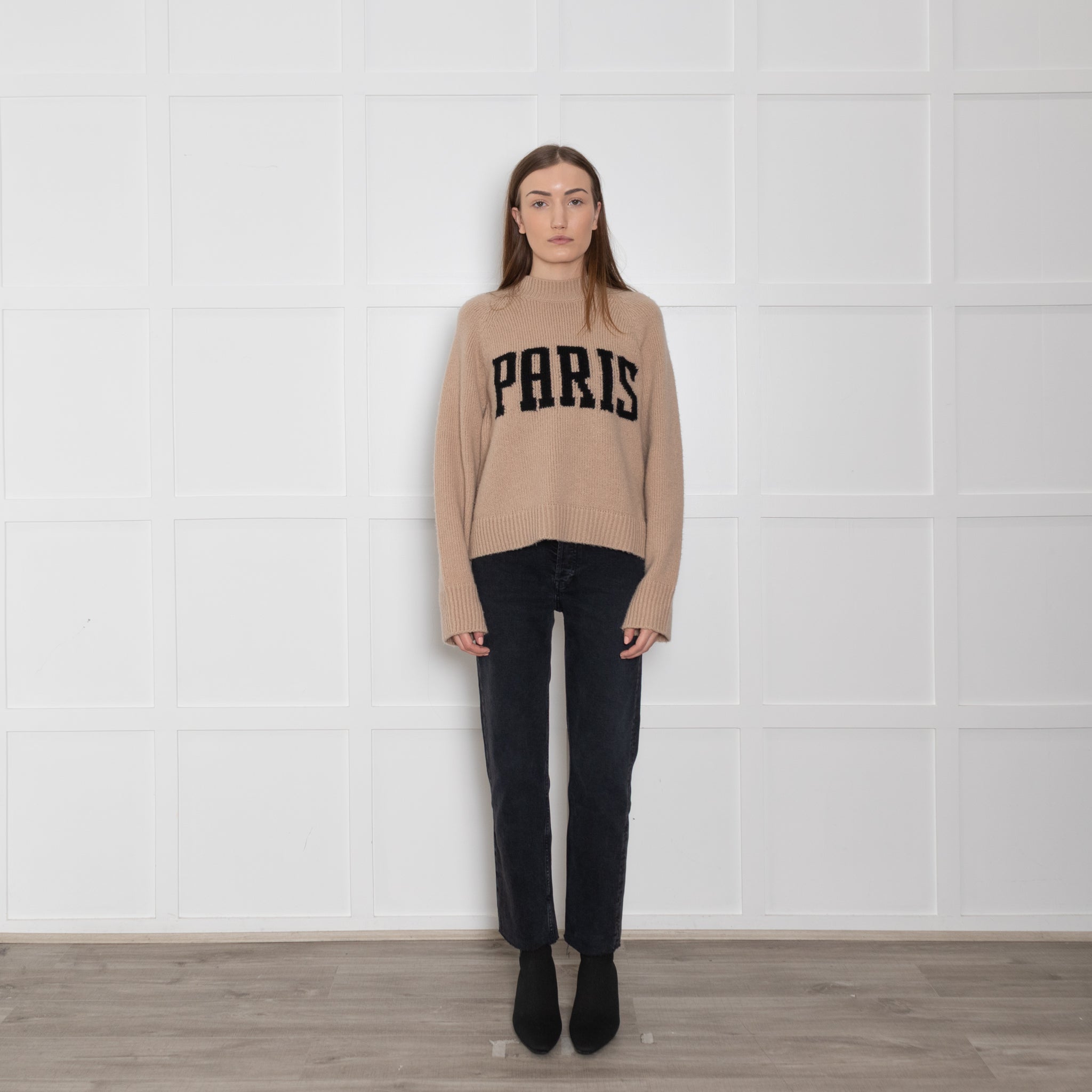 Anine Bing brown wool and cashmere mix jumper with Paris logo. This jumper features a rounded neckline with ribbed trims.