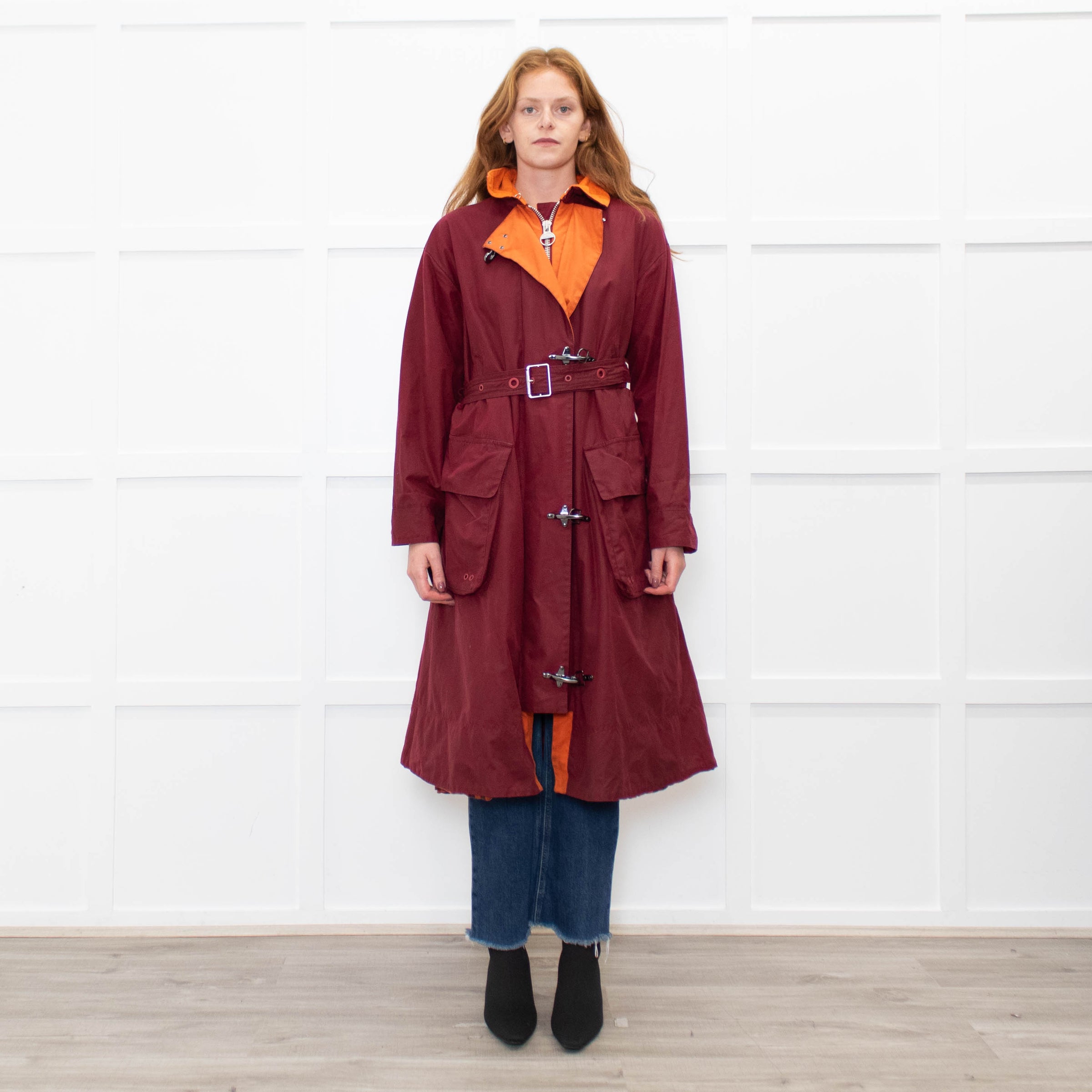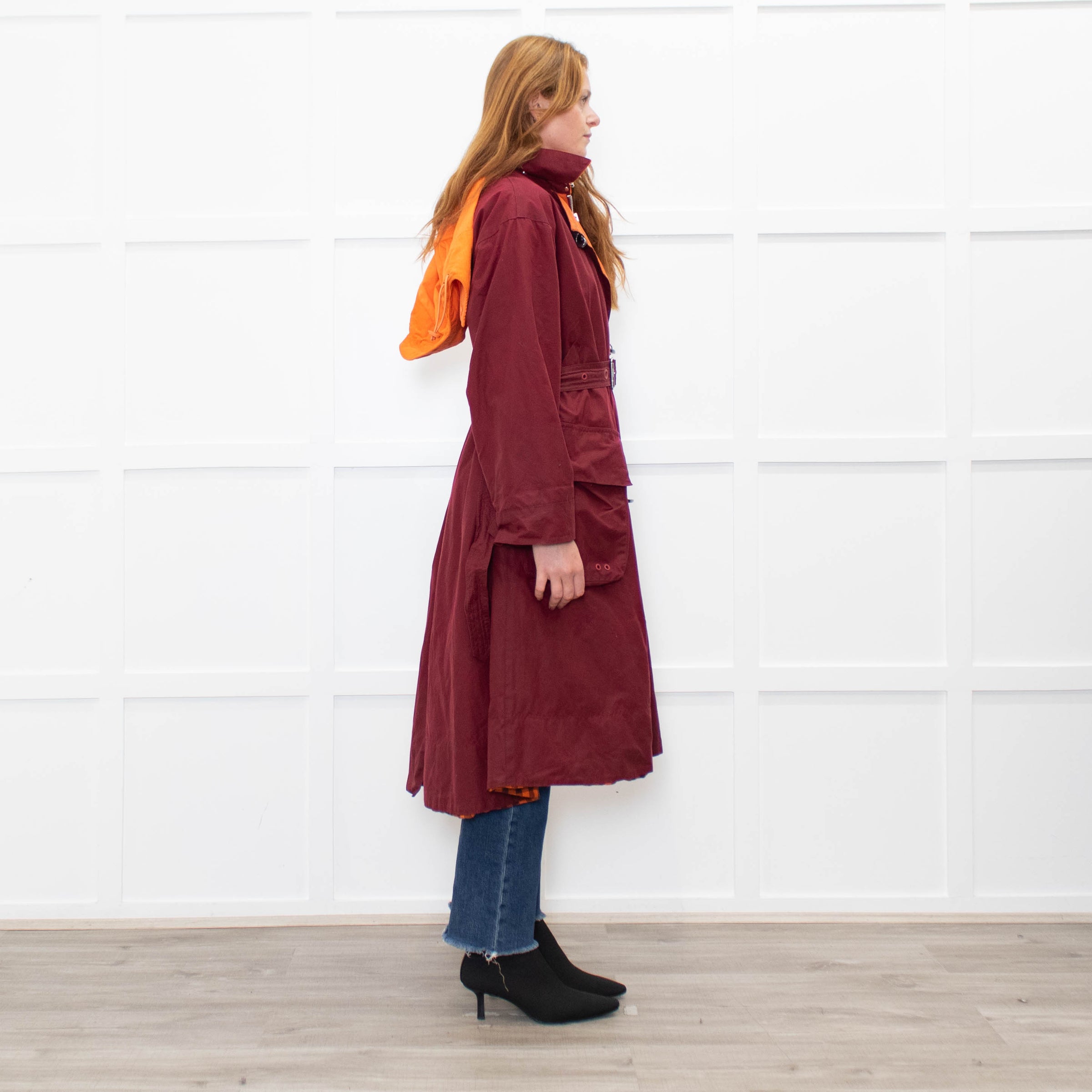 Barbour X Roksanda Burgundy and Orange Waxed Evengia Coat
