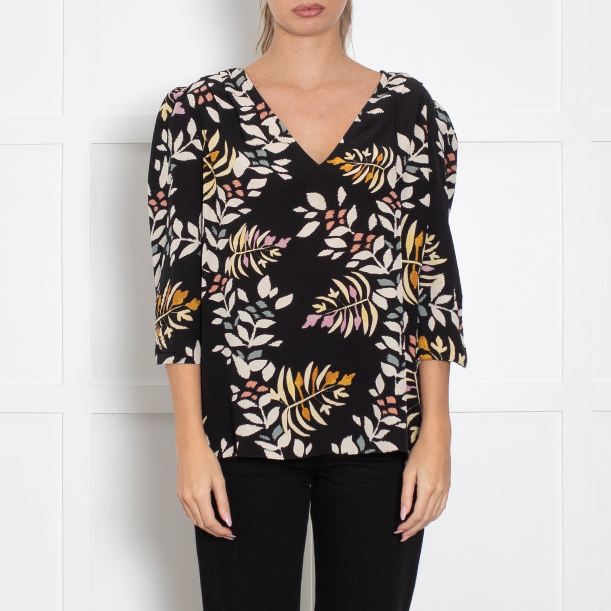 Ba&sh Black Floral Blouse with Gathered Cuffs