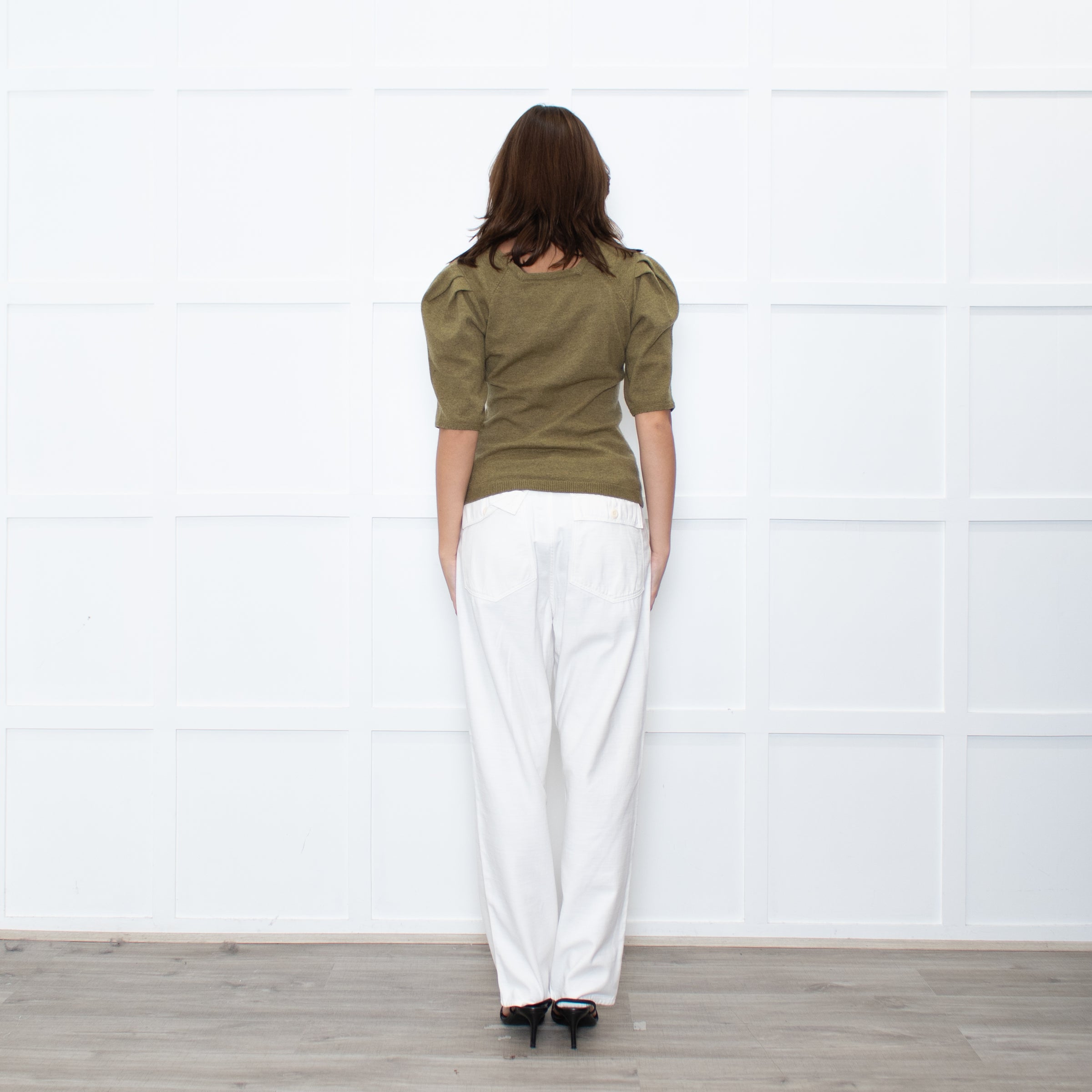Ba&sh Olive Green Wool Short Sleeve Jumper