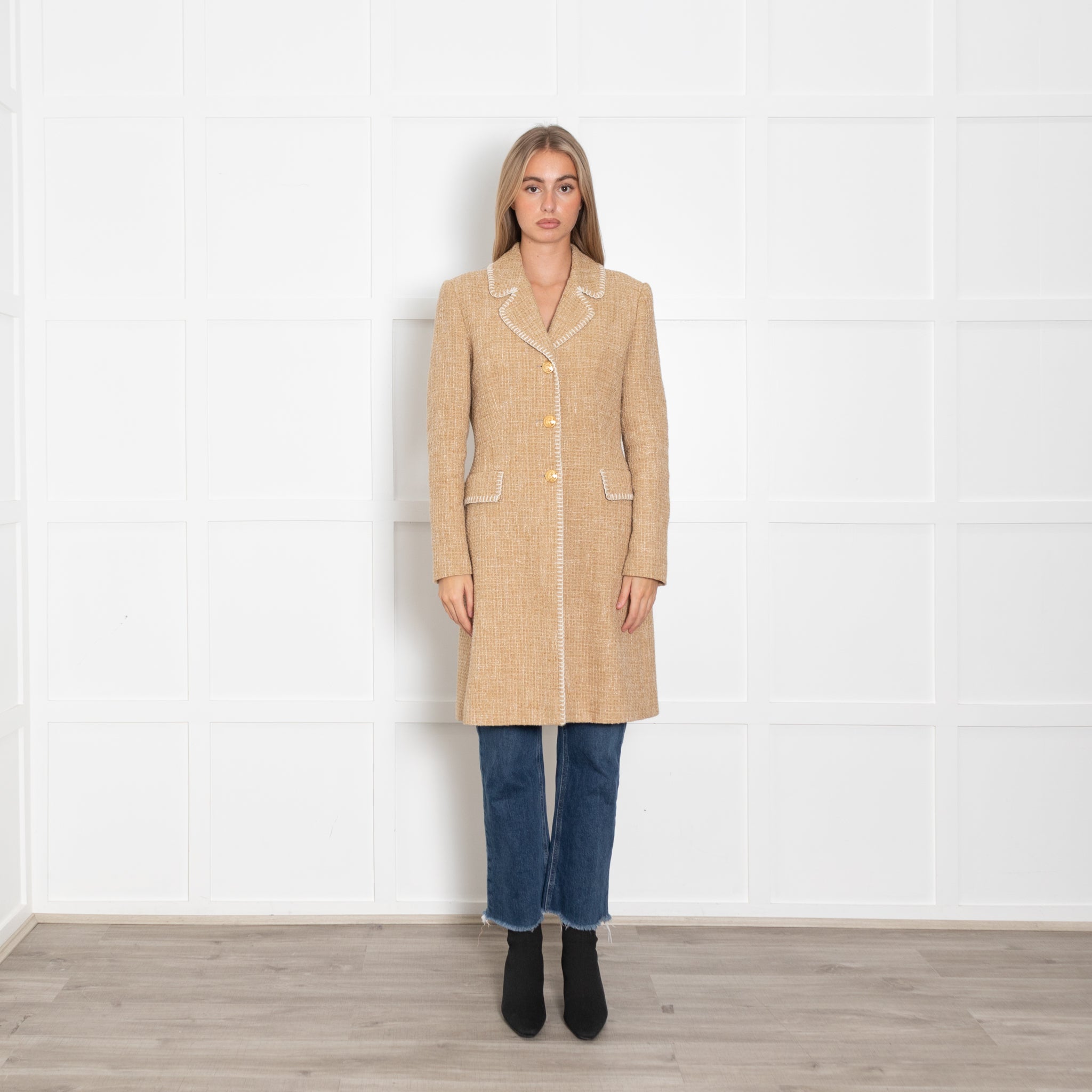 Boutique Moschino Beige Boucle Coat with Stitch Edge Detail