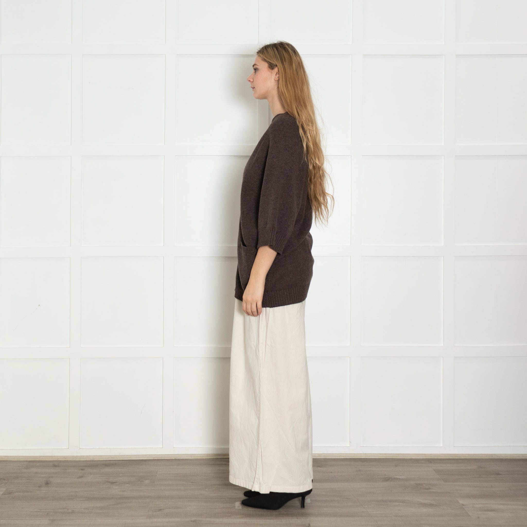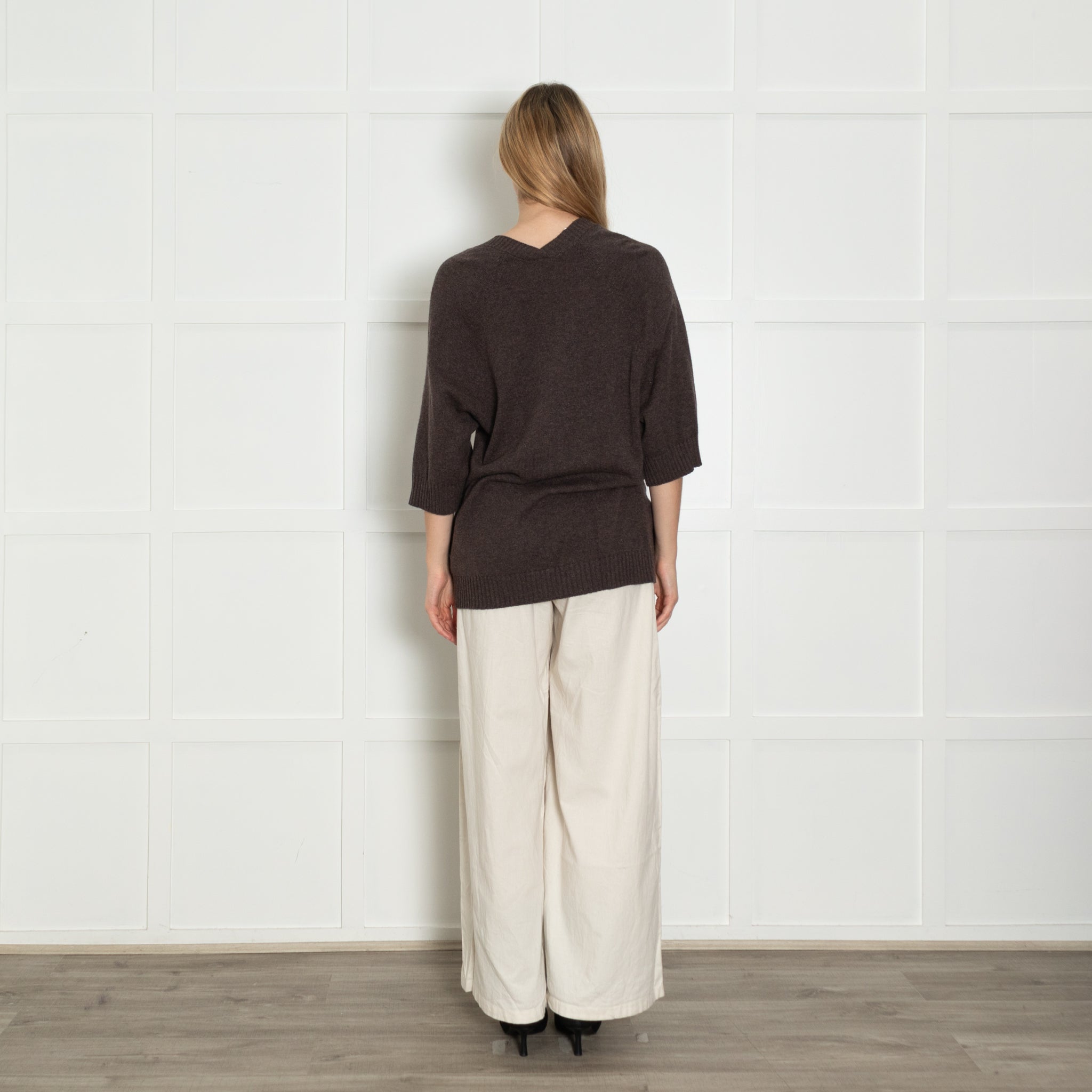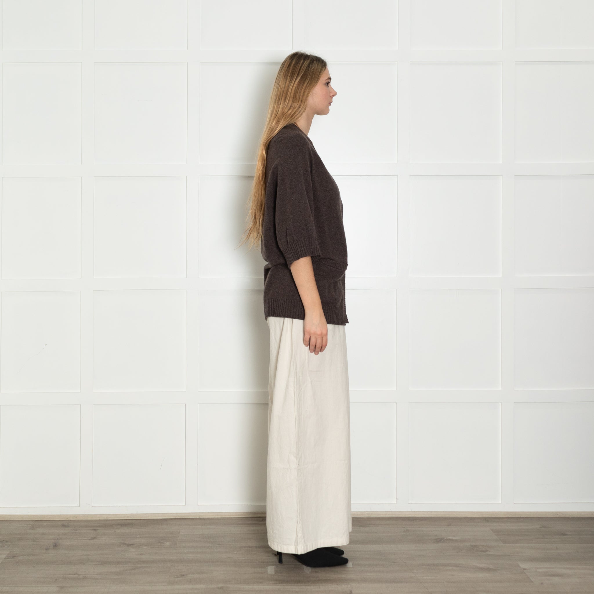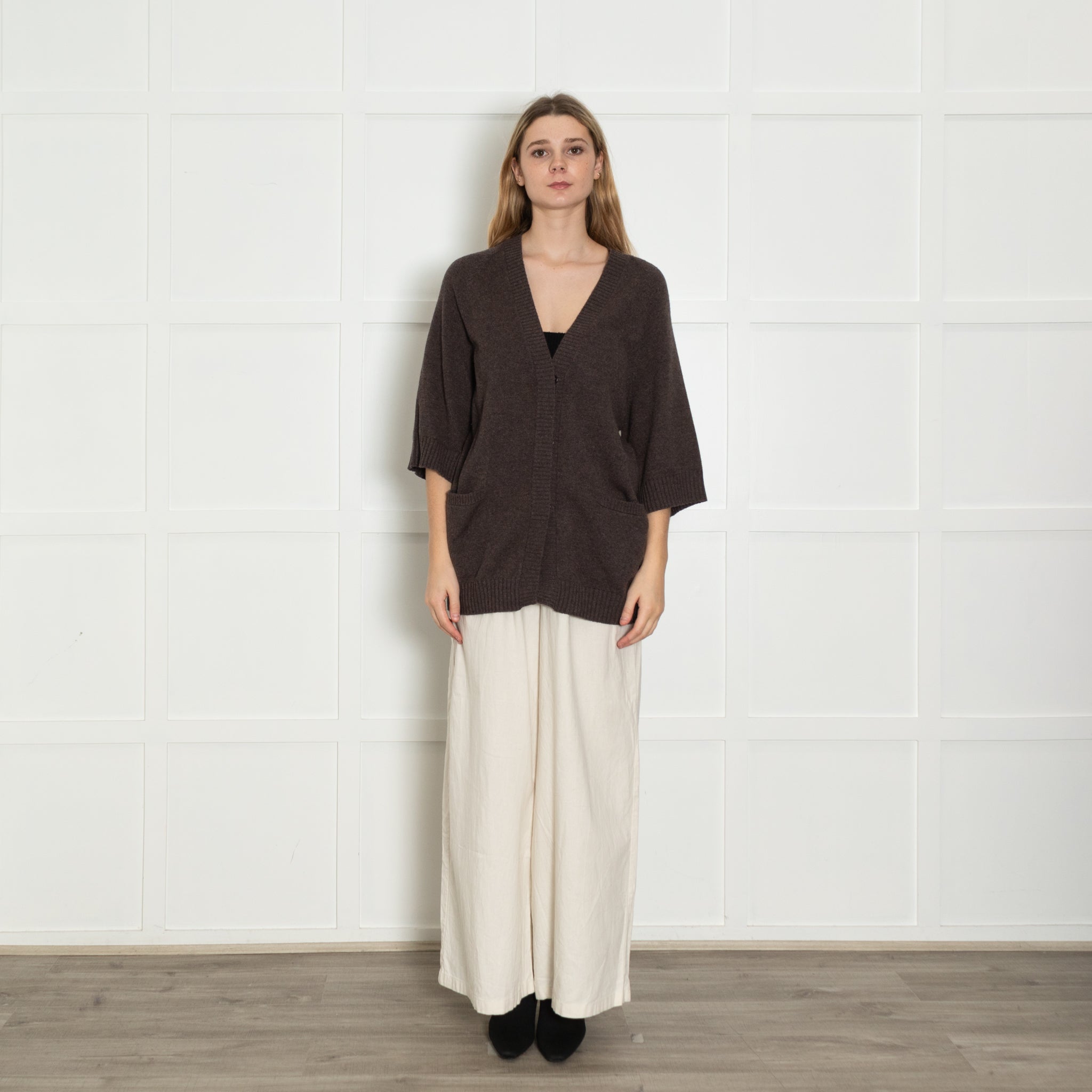 Brunello Cucinelli brown cashmere gilet. Button-down with a V-neckline, elbow-length sleeves and 2 classic symmetrical pockets to the lower waist.