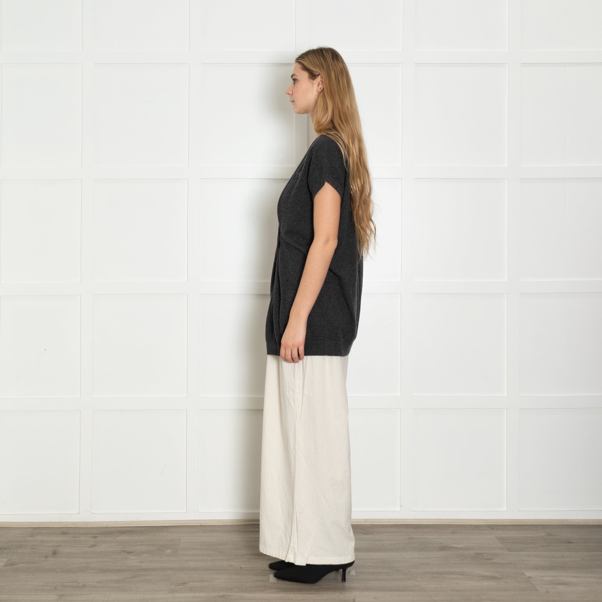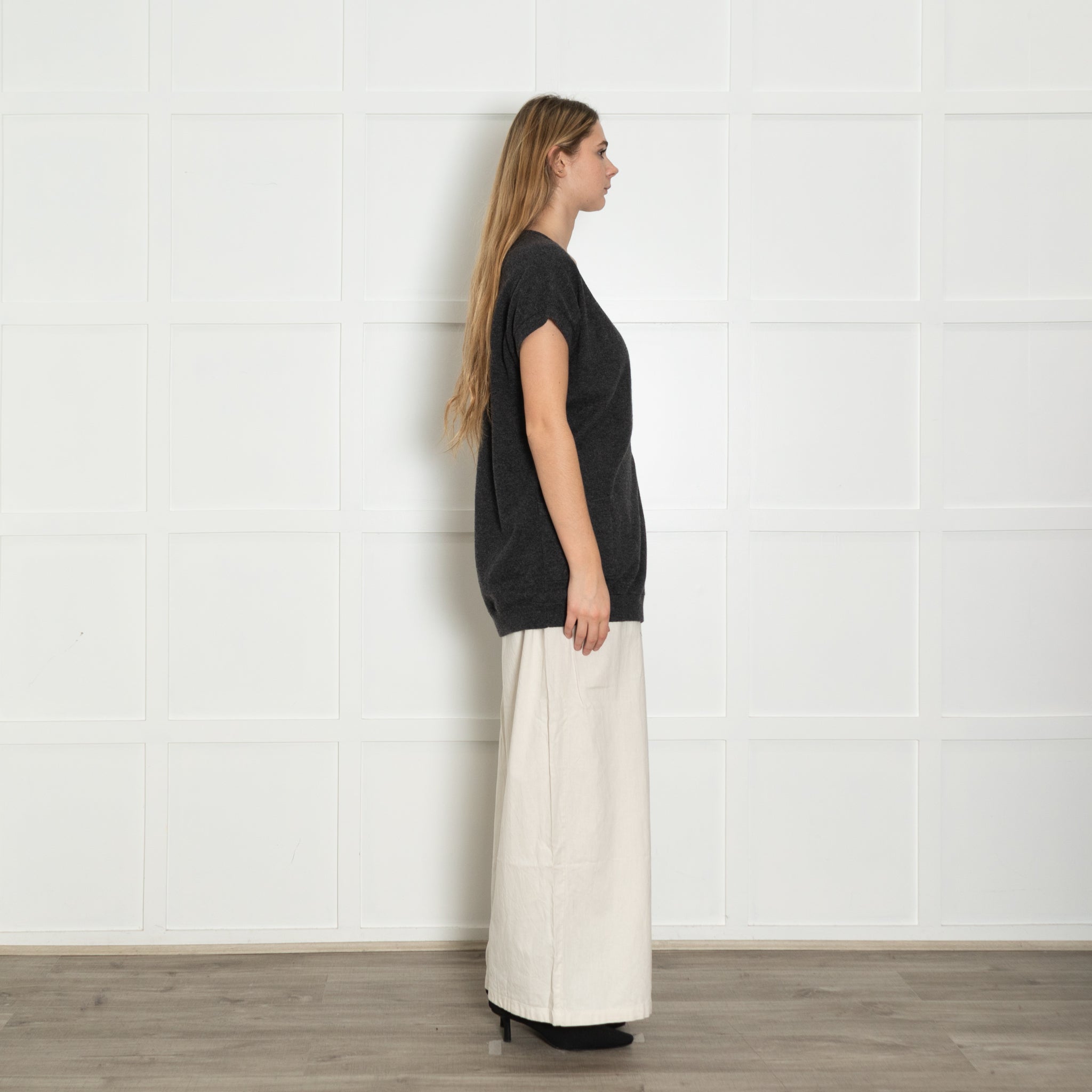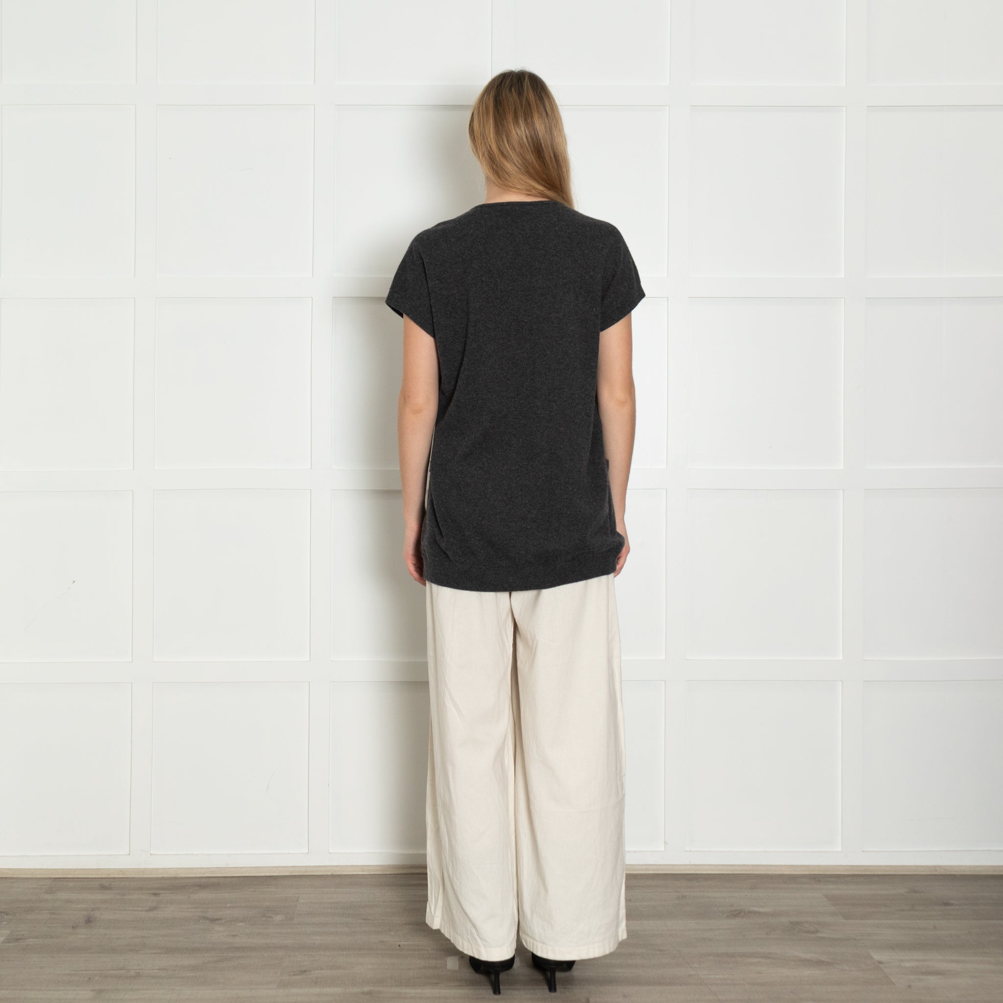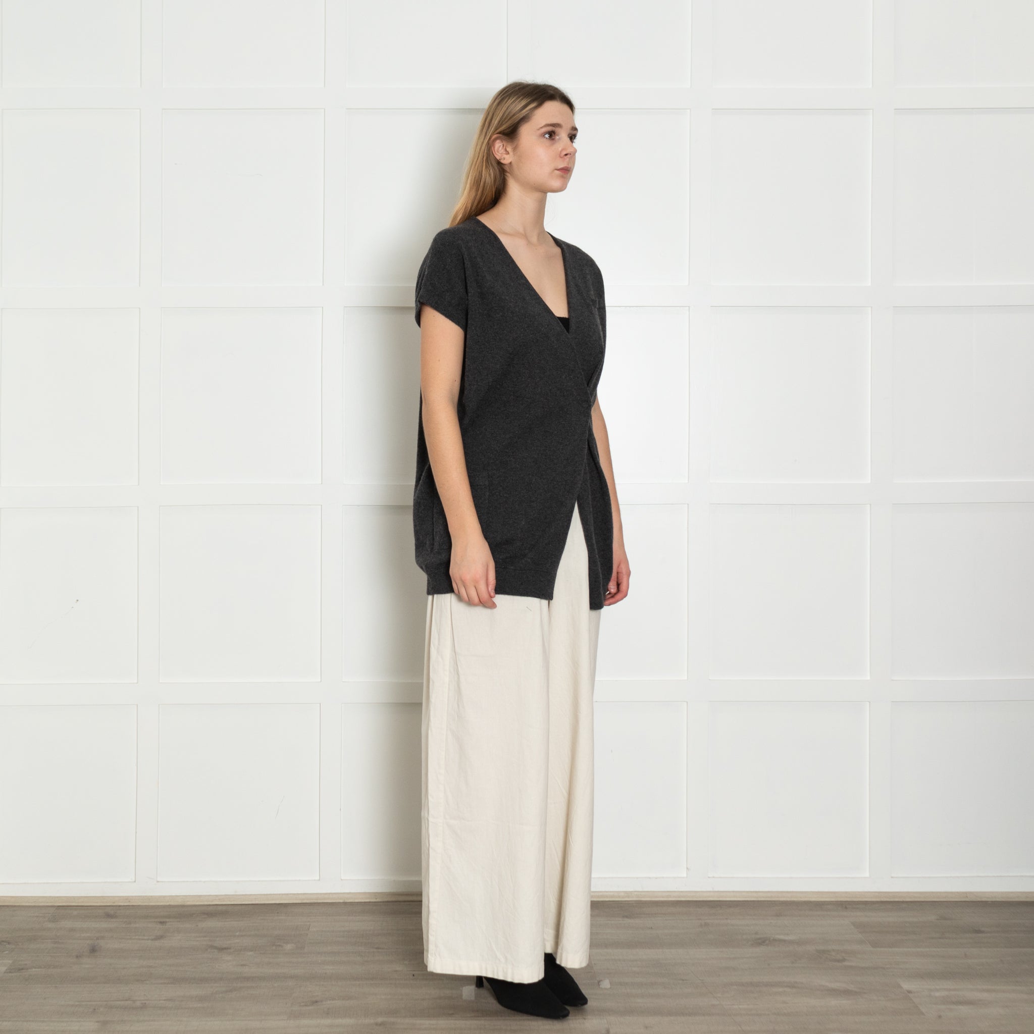 Brunello Cucinelli grey cashmere gilet. With a ribbed hemline and short capped sleeves. Symmetrical classic pockets at the hip.