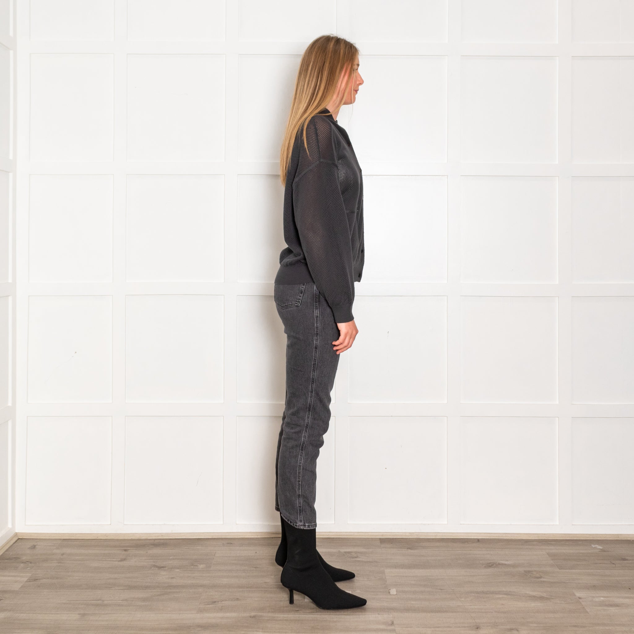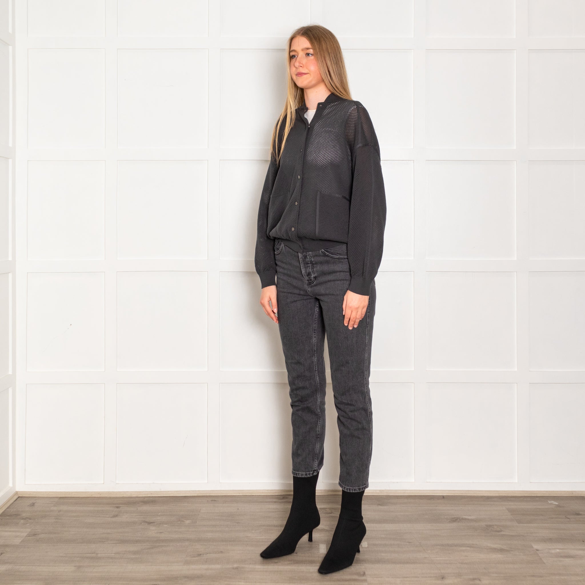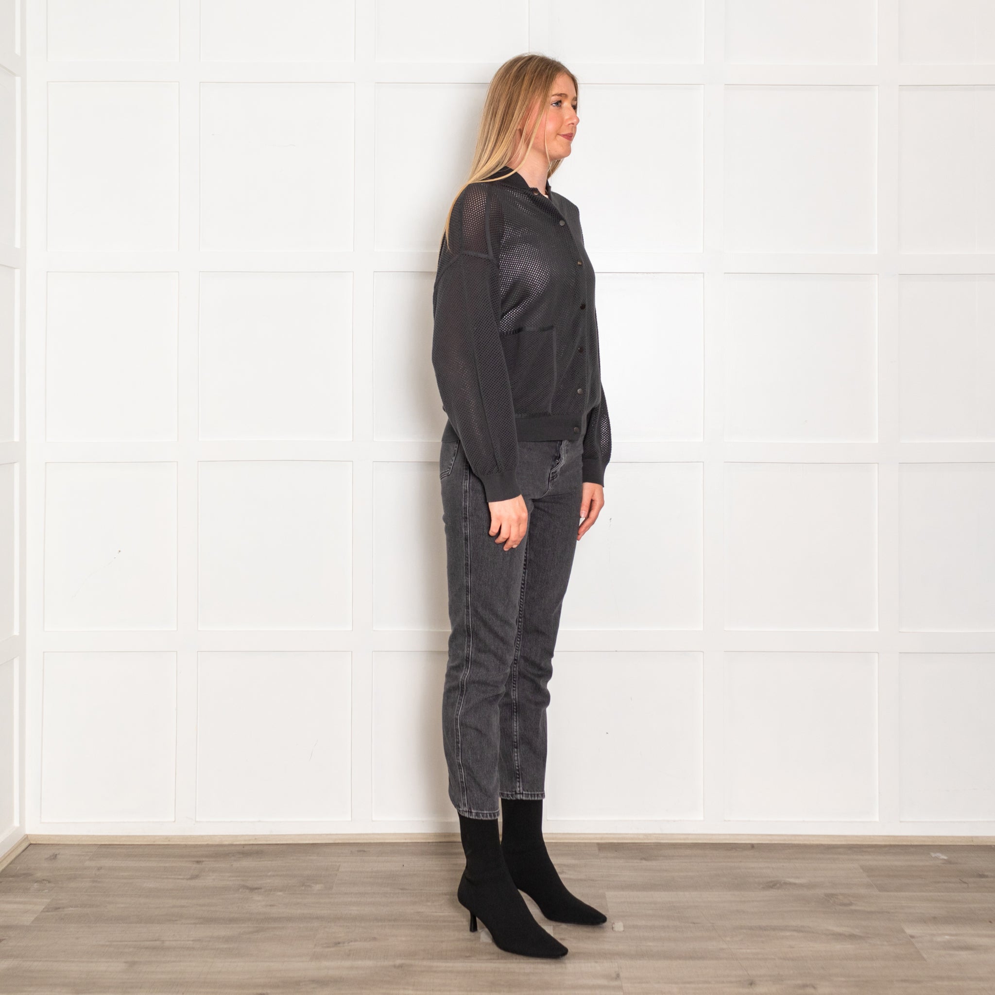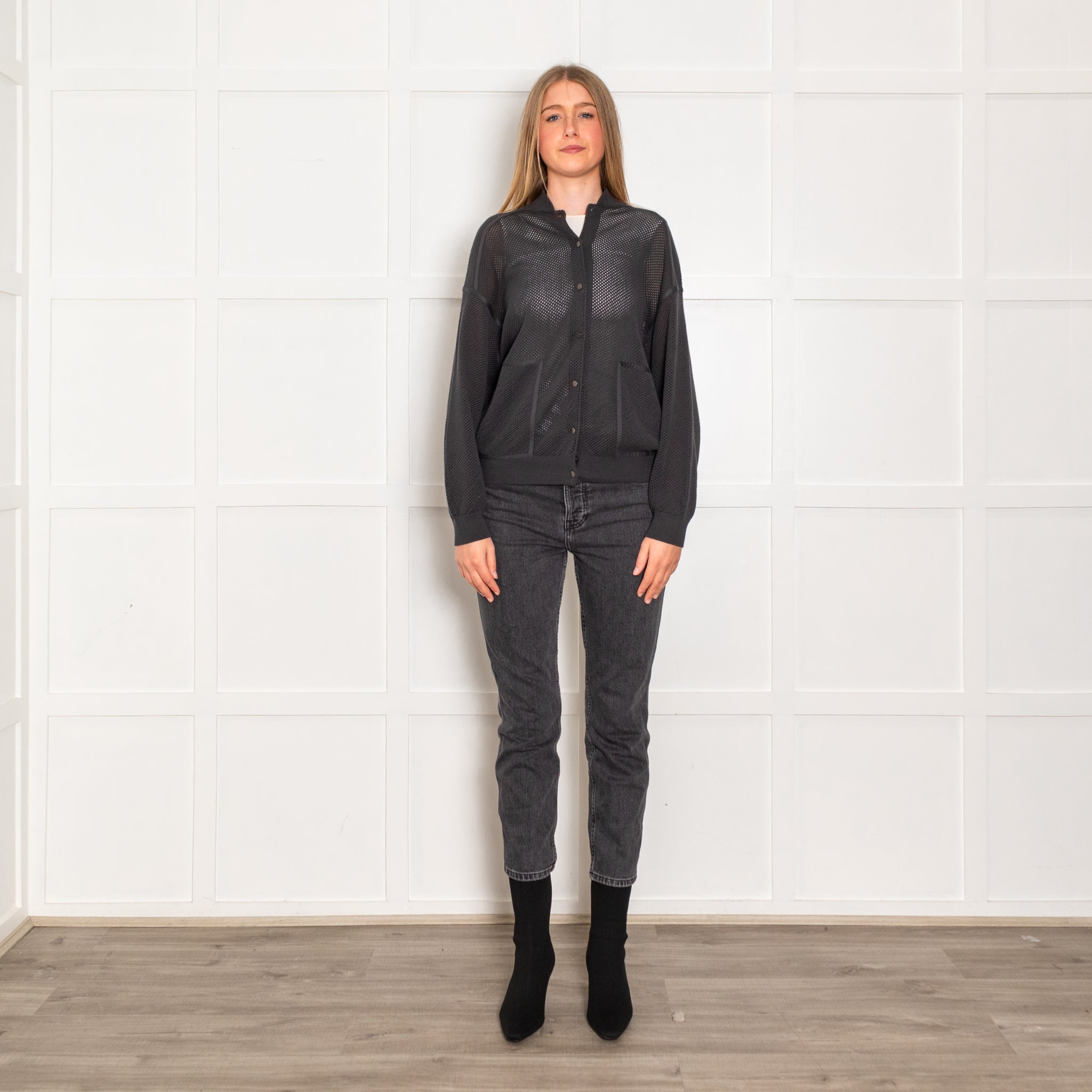 Brunello Cucinelli gorgeous grey cotton bomber jacket, featuring a semi-transparent net design, a button-up closure, two front pockets and small sequin detailing around the collar.