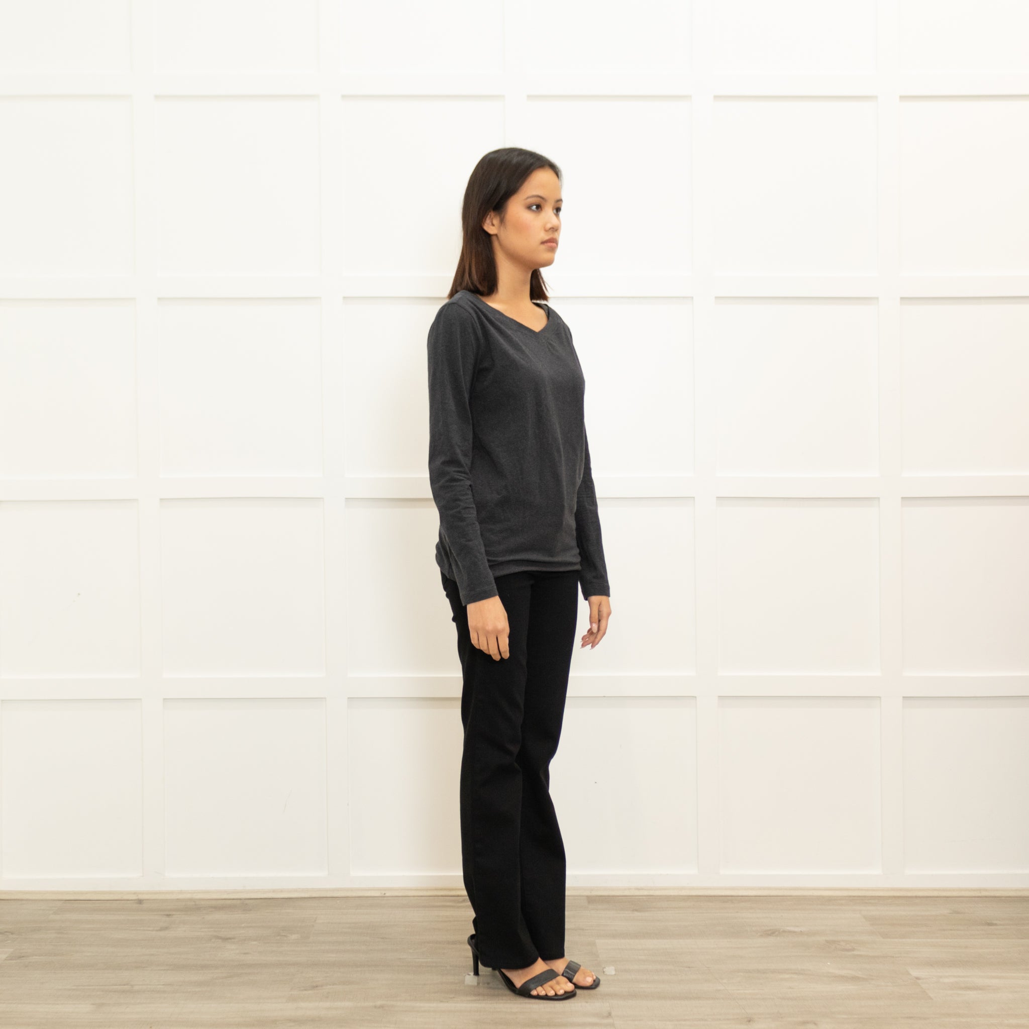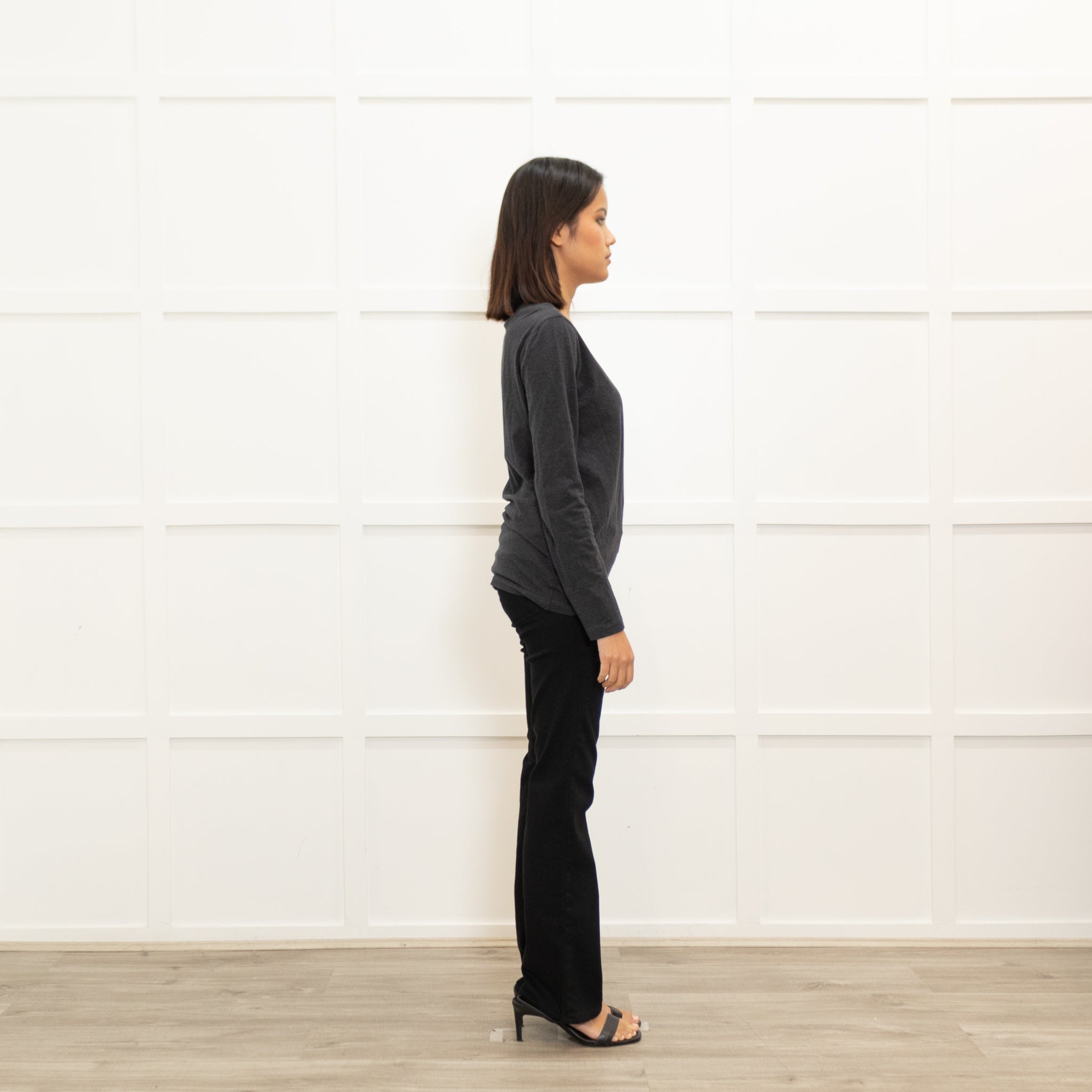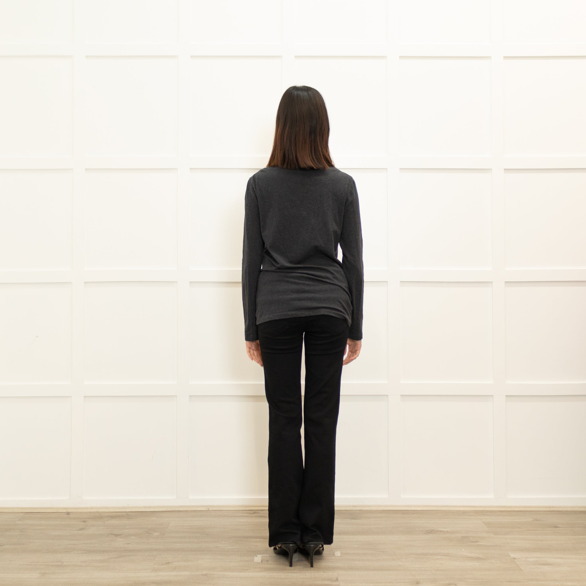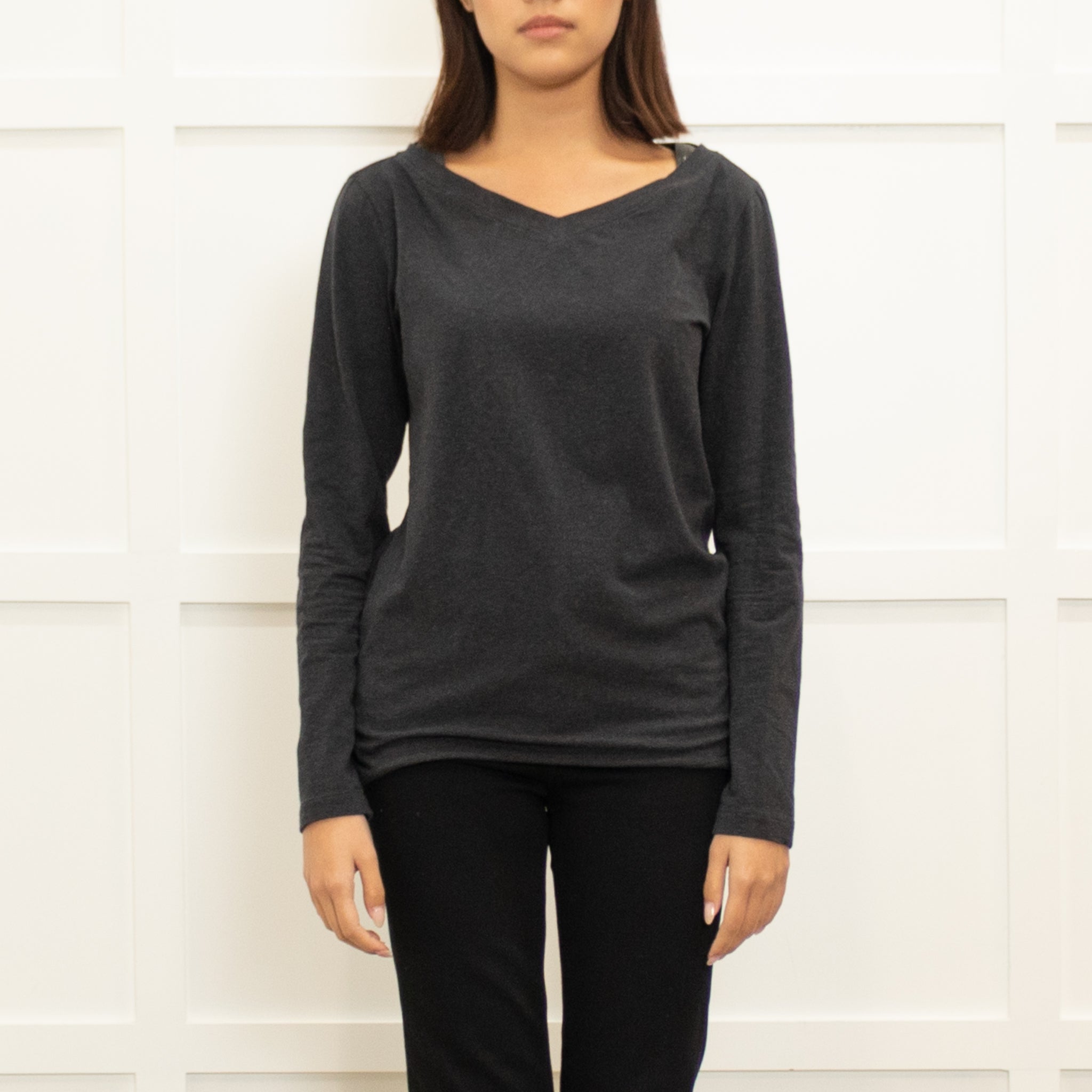 Brunello Cucinelli dark grey long sleeve cotton top with sequin detailing on the neckline.