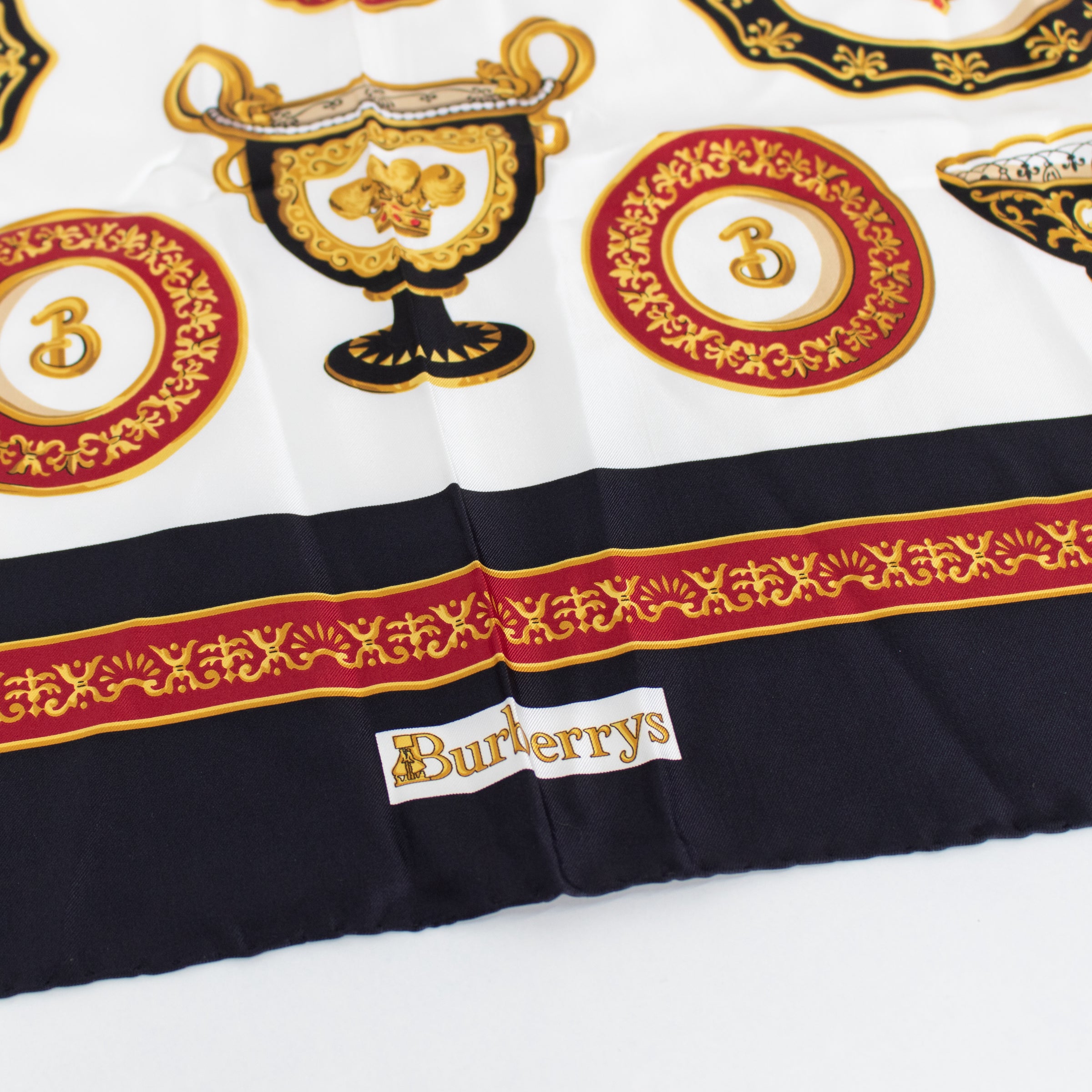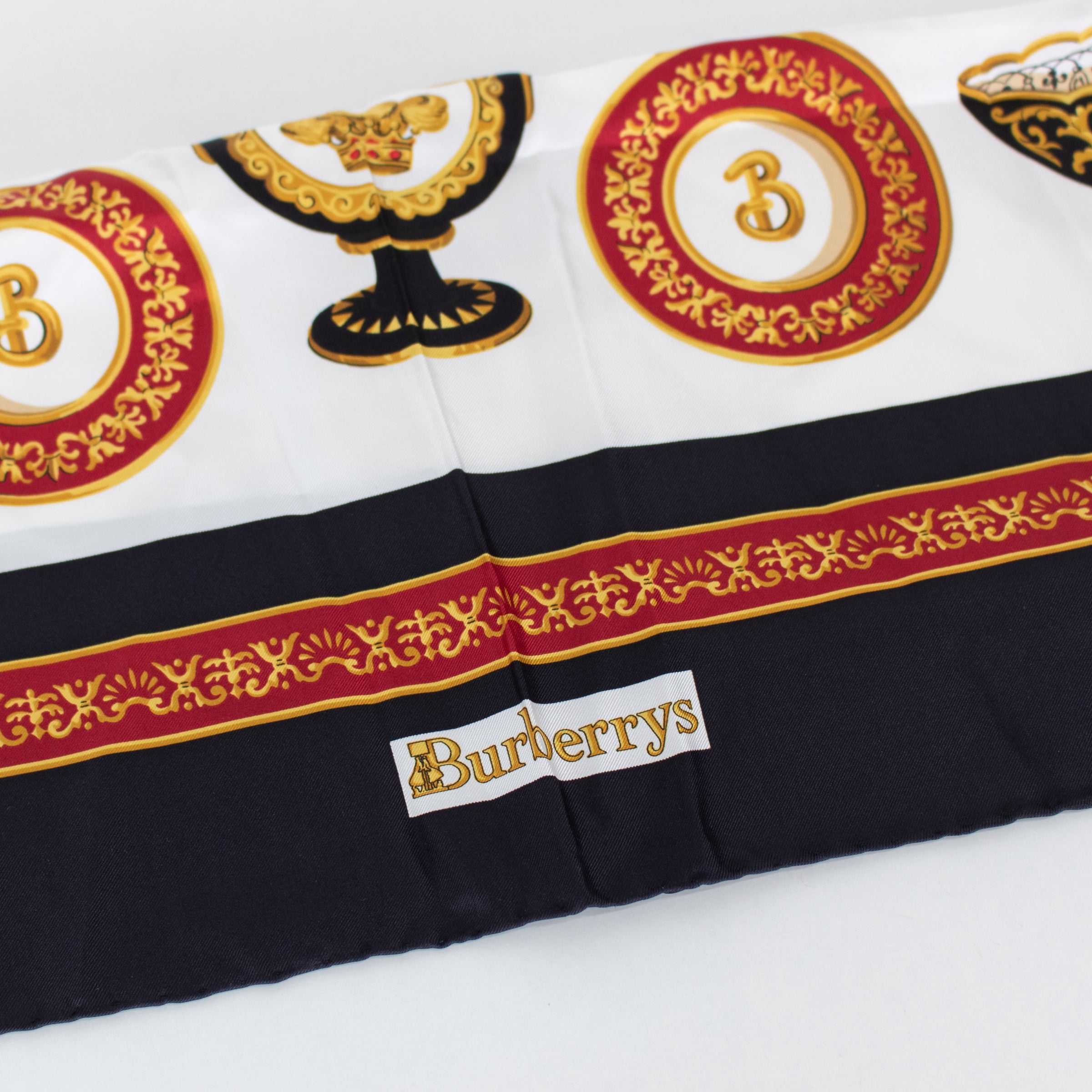 Burberry silk trophy scarf featuring a stunning square black and gold design, for a classic, sophisticated look.