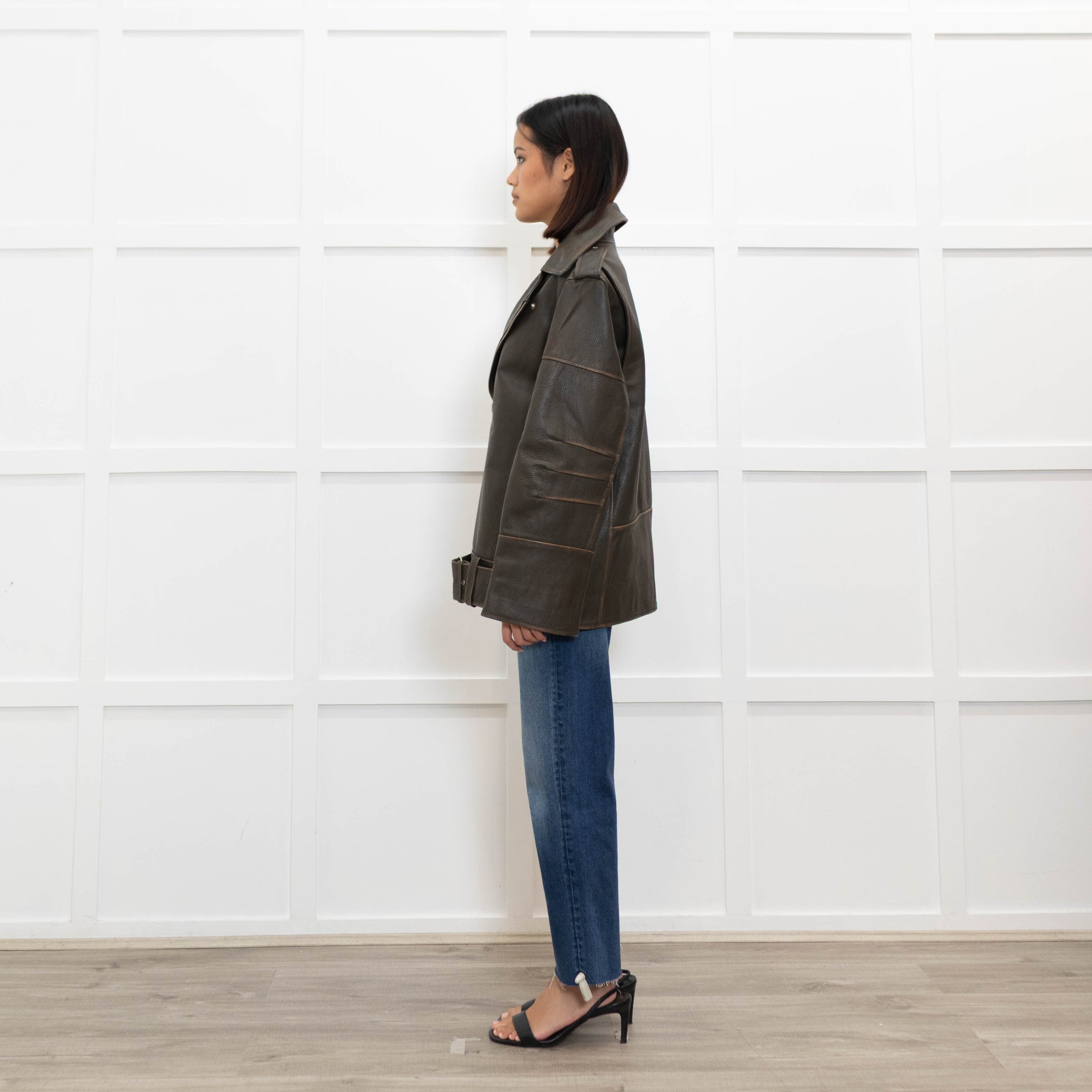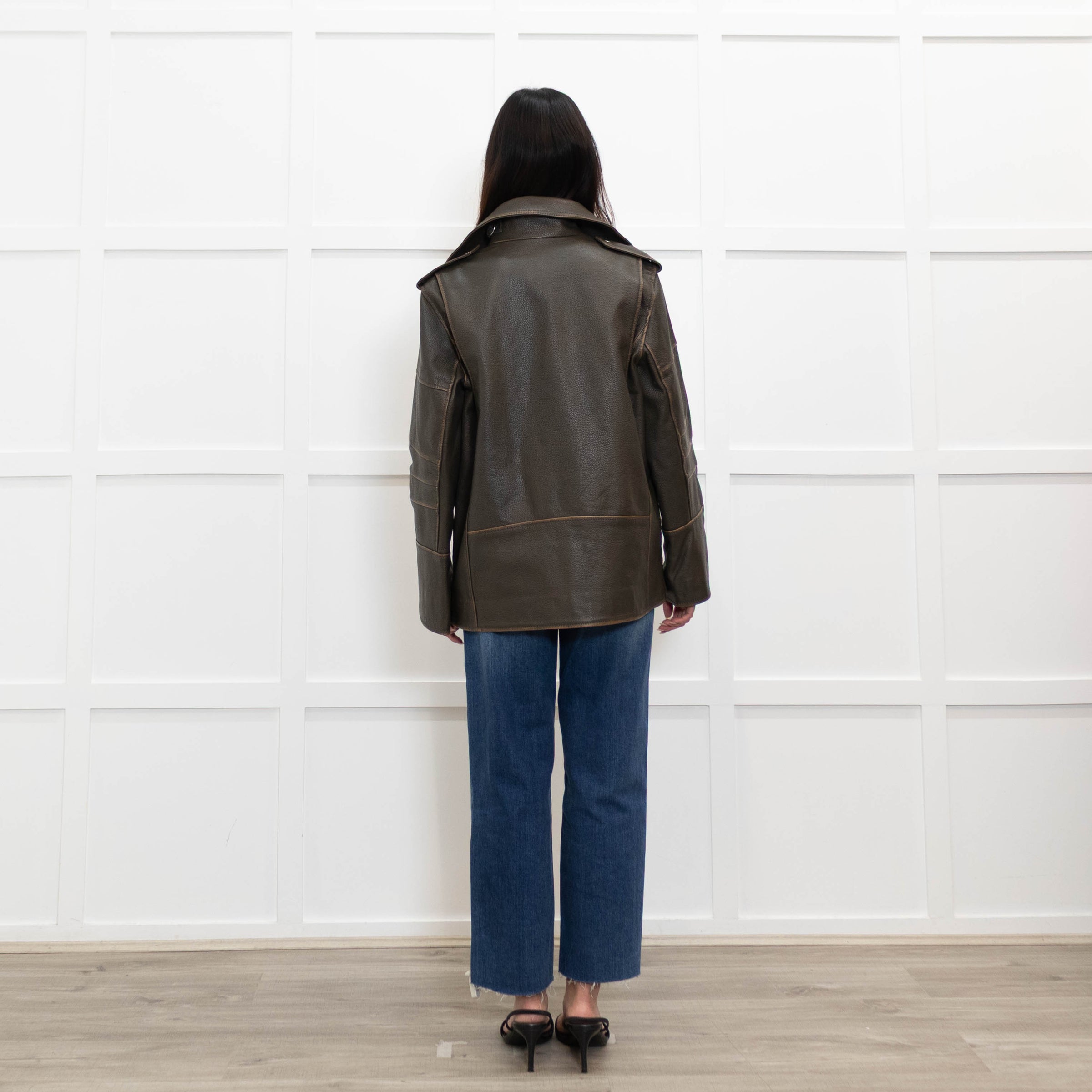 By Malene Birger Brown Leather Oversized Aviator Jacket