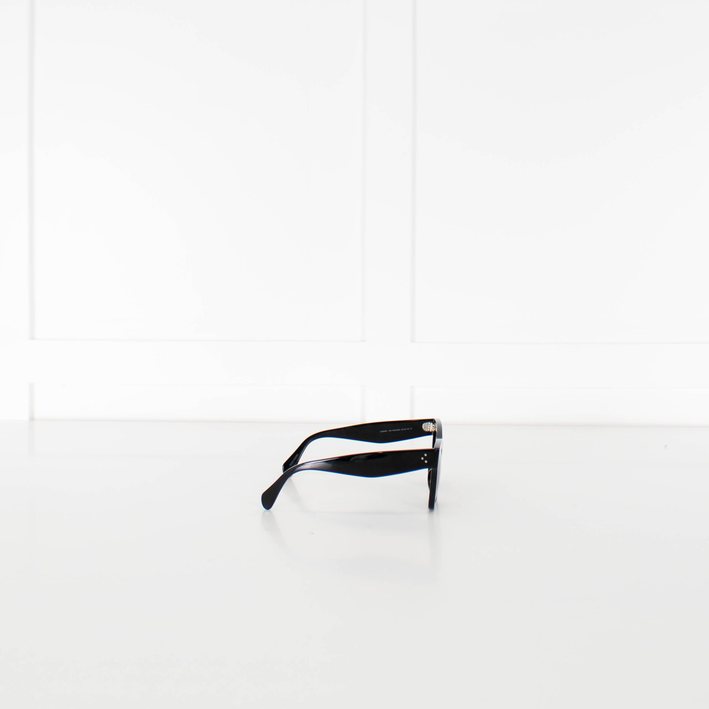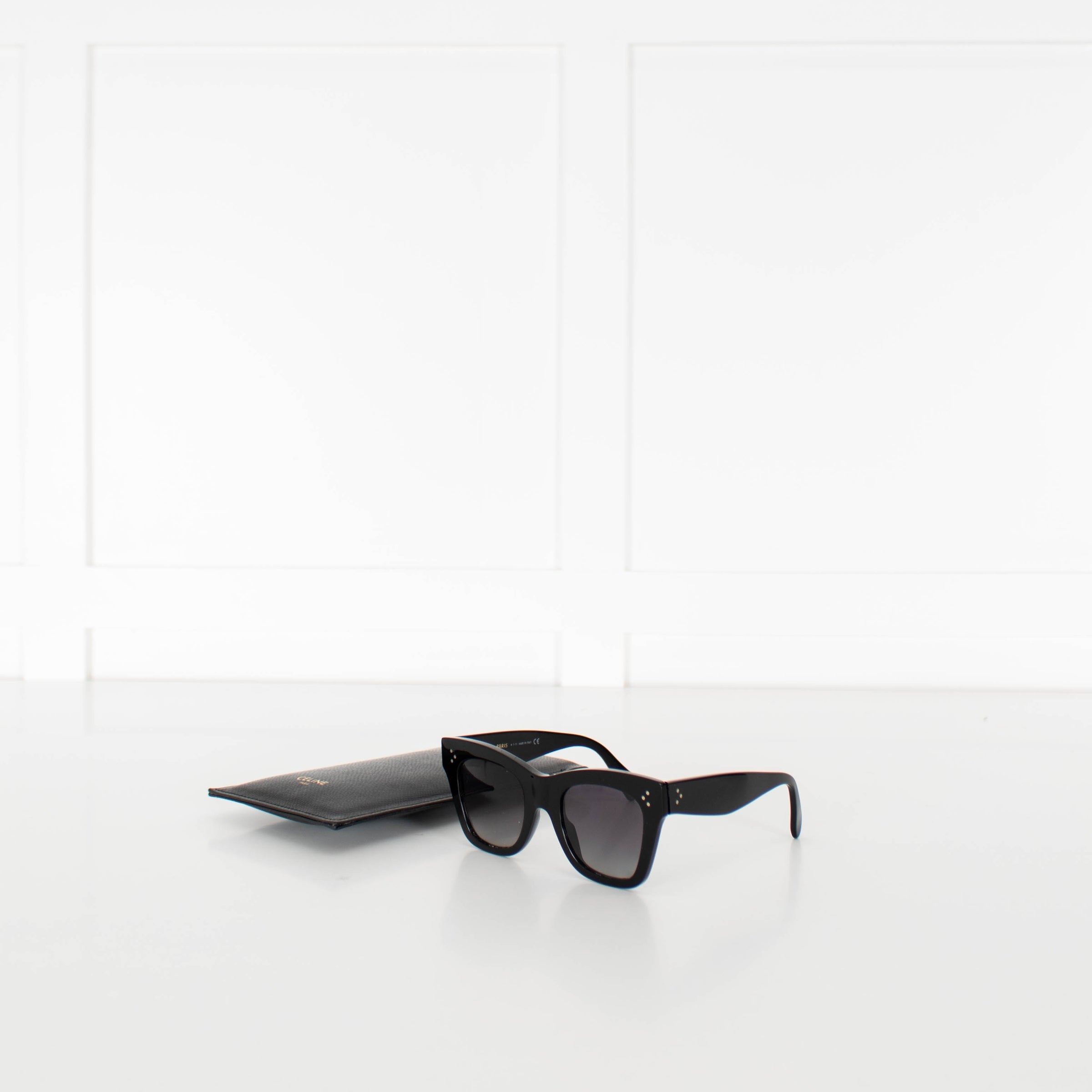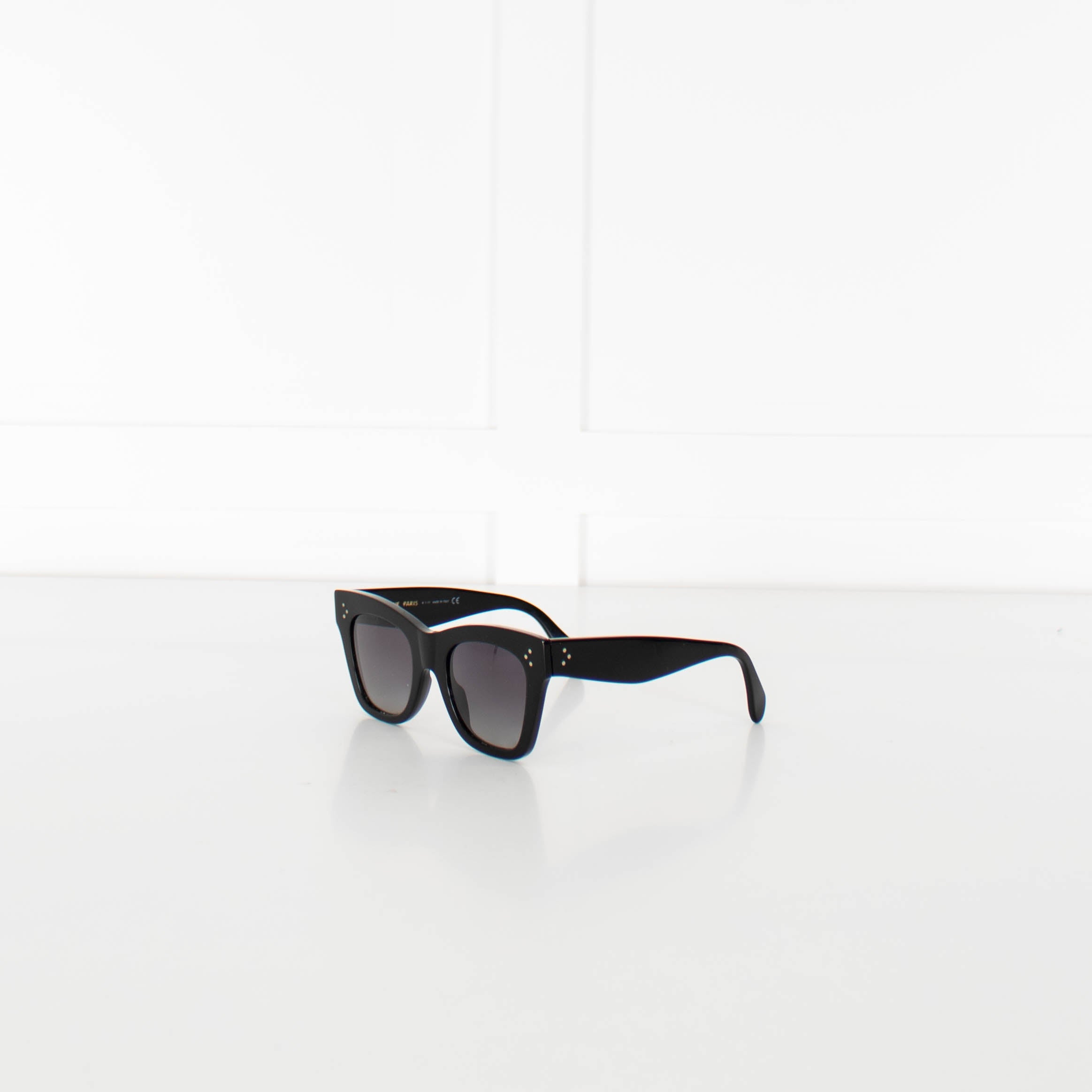 Celine black framed and lensed acetate sunglasses in a classic wayfarer style. Designed with signature Celine branding on the temples and sturdy acetate frames for durability.