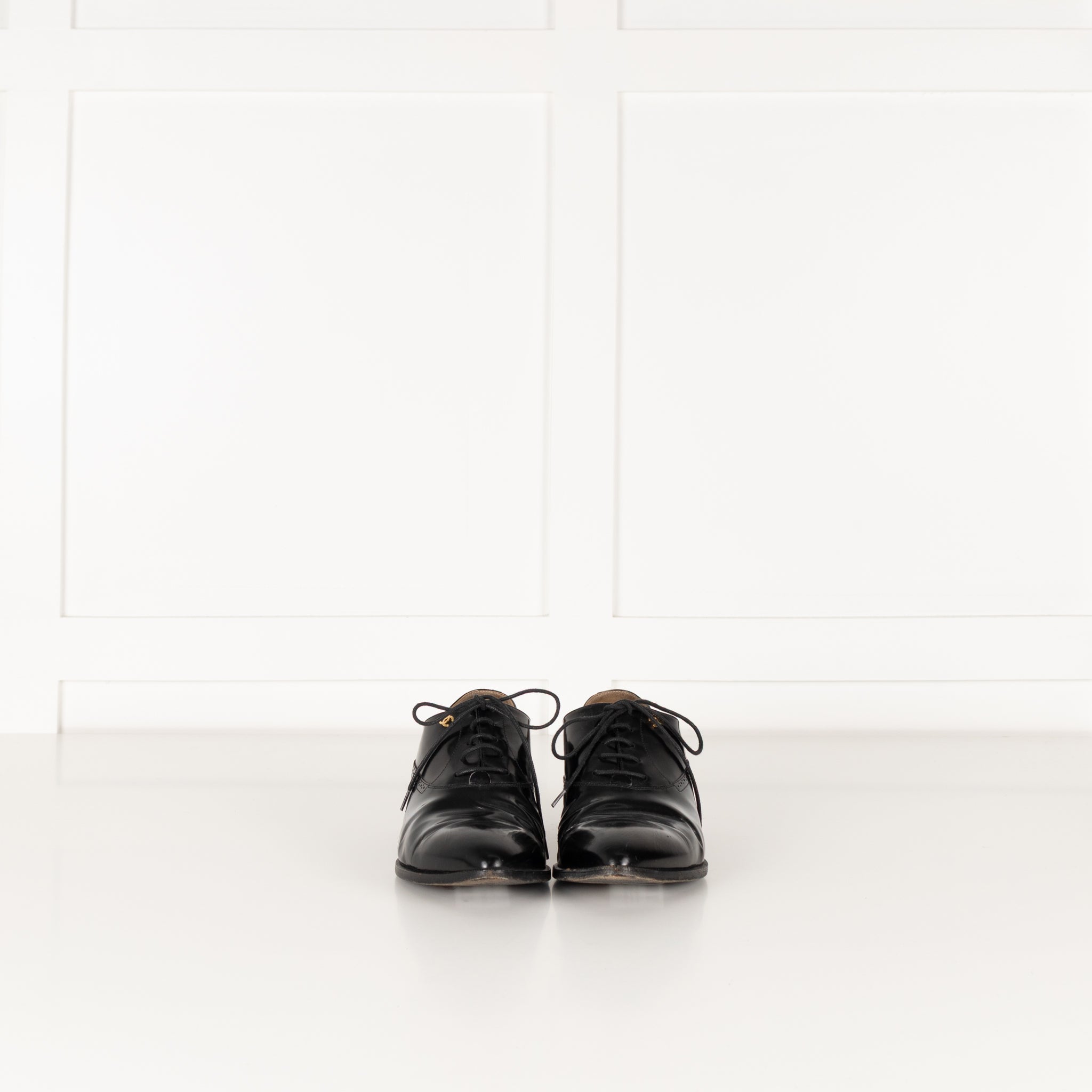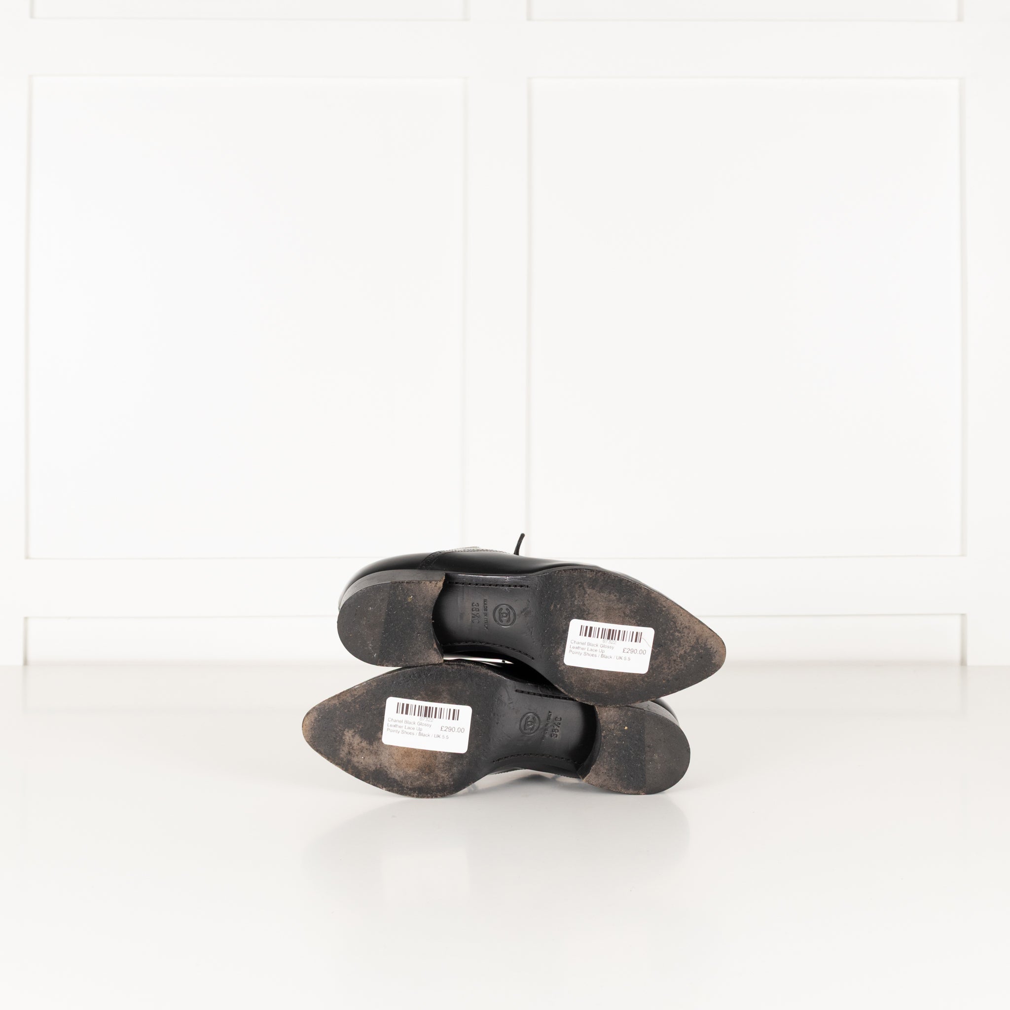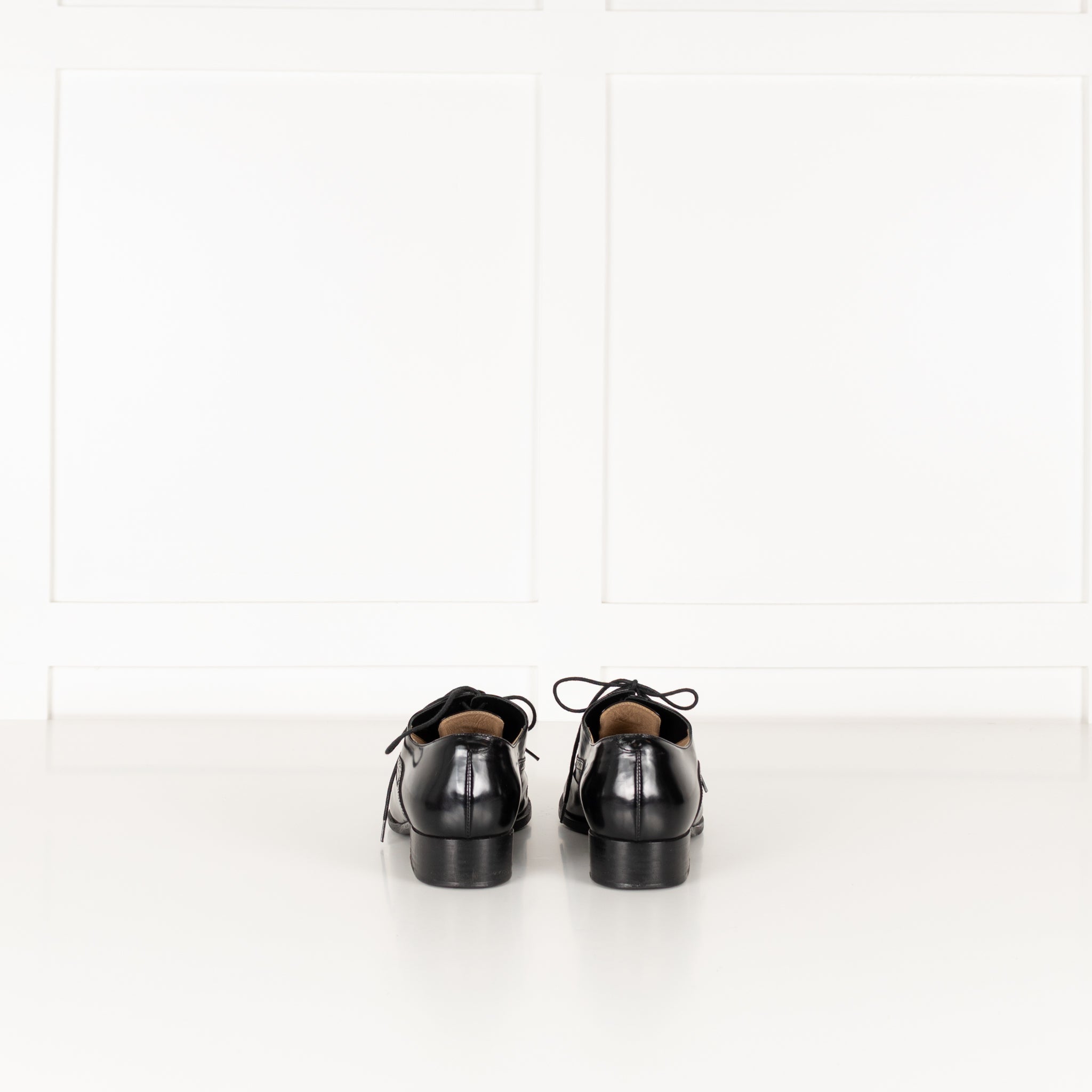 Chanel Black Glossy Leather Lace Up Pointy Shoes