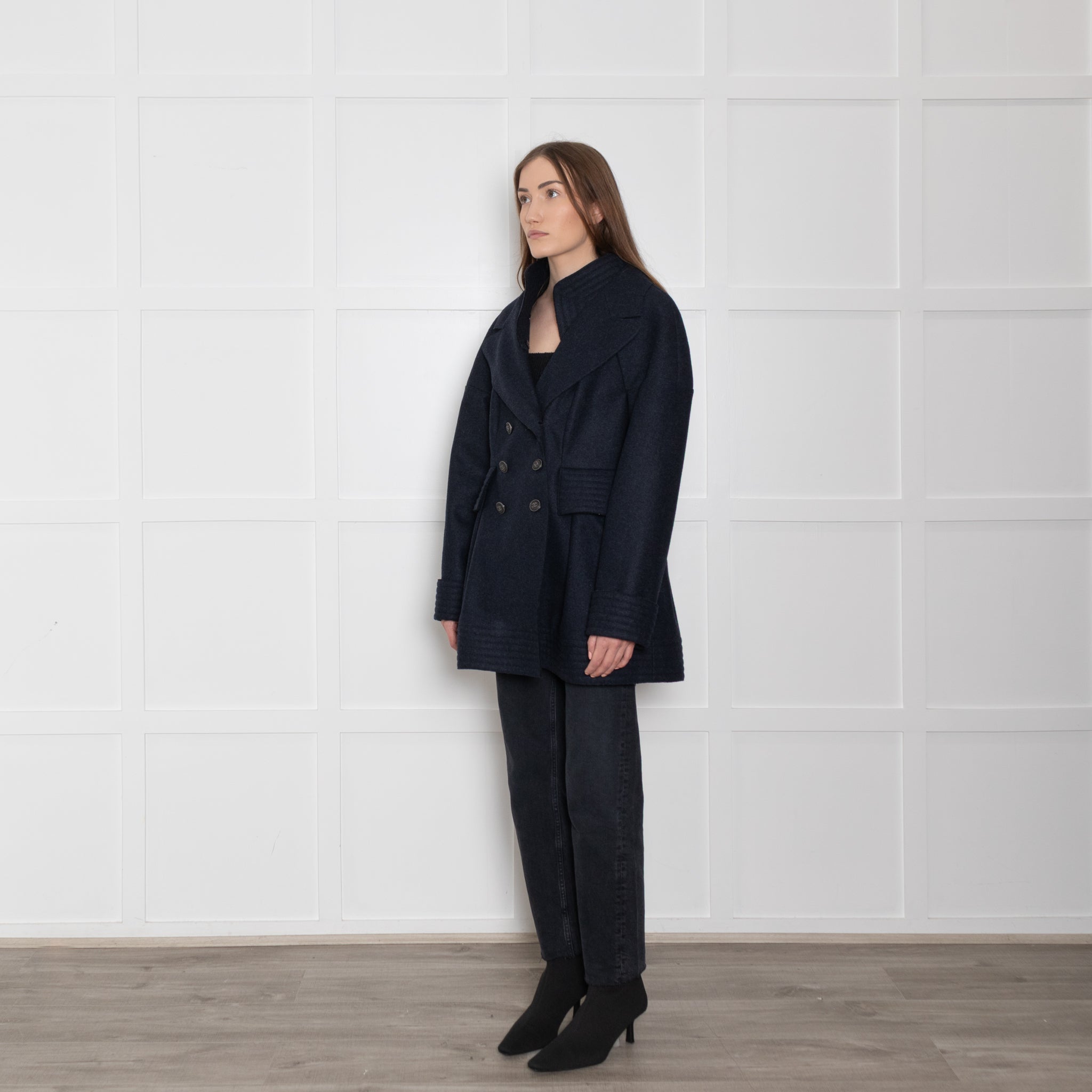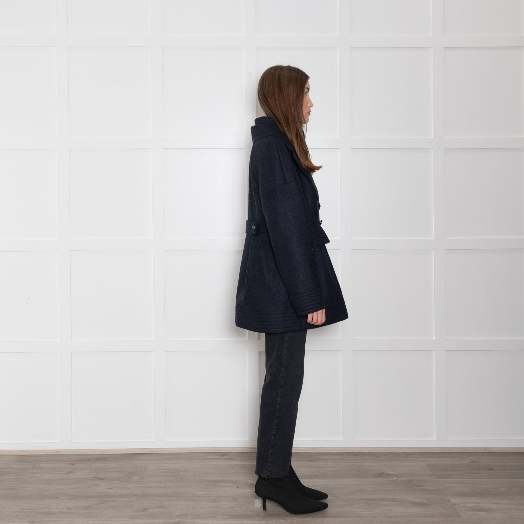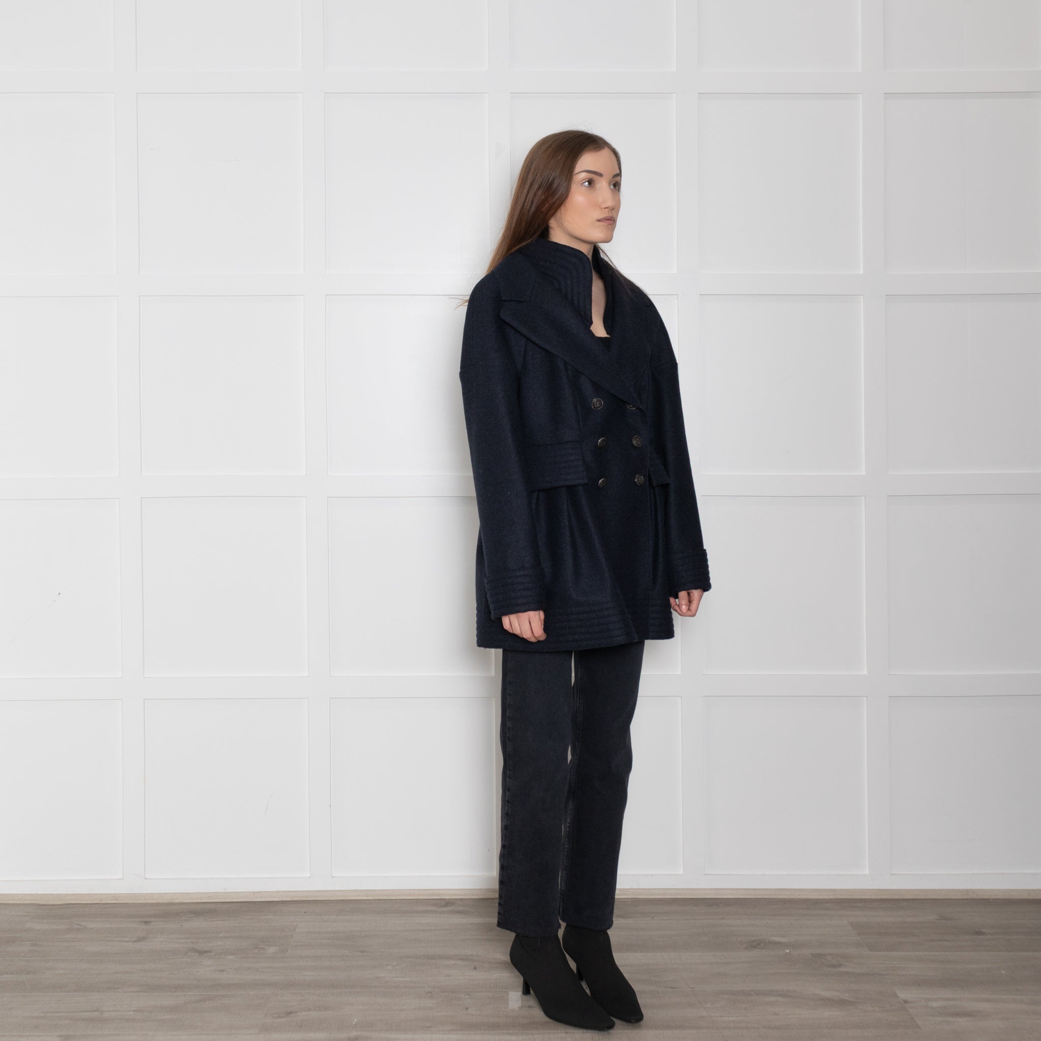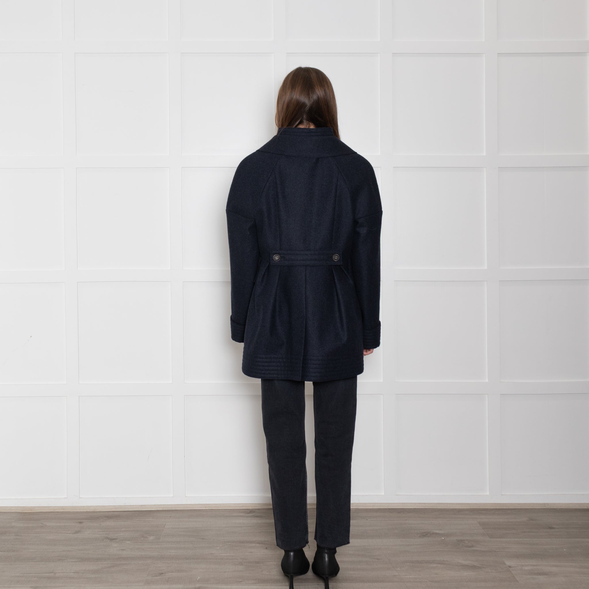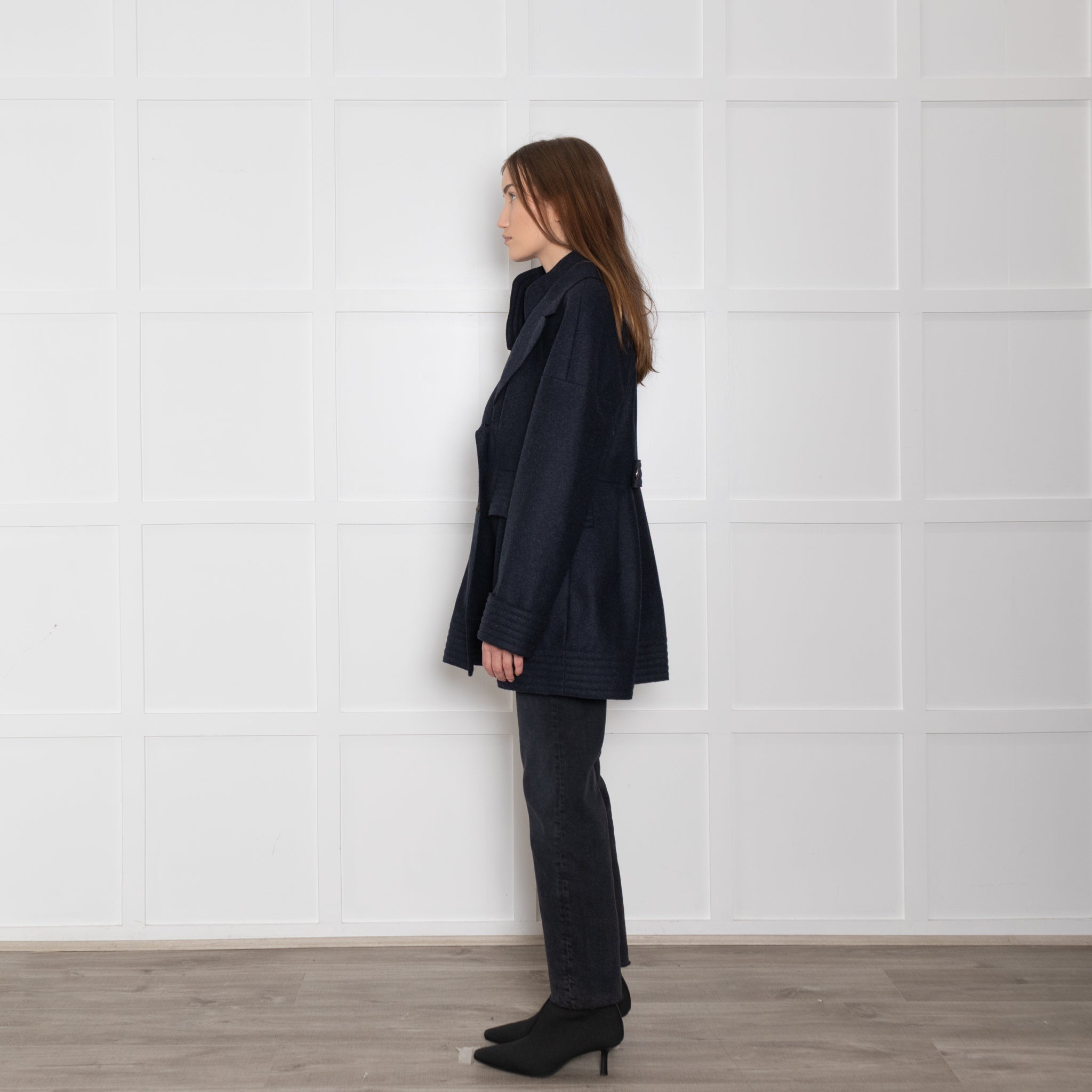 Chanel Navy Blue Waisted Wool Mix Short Coat