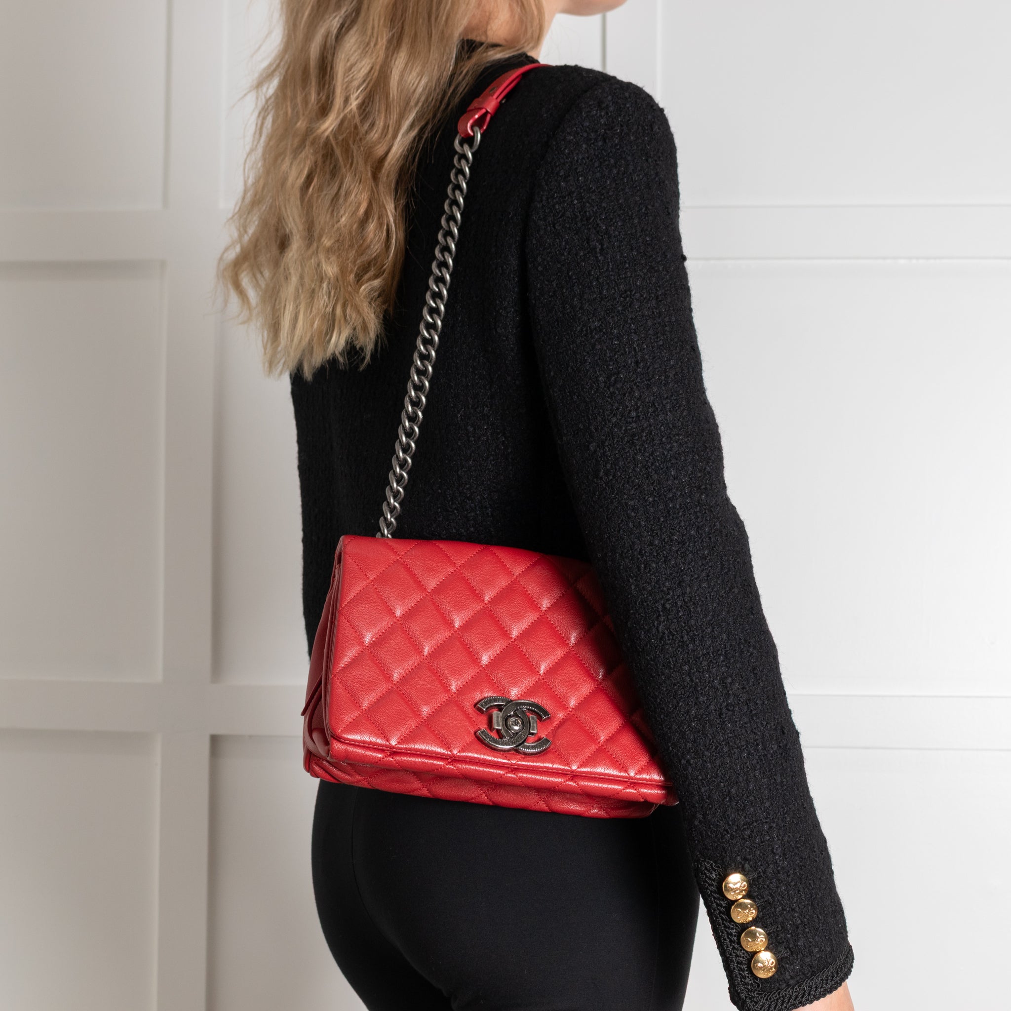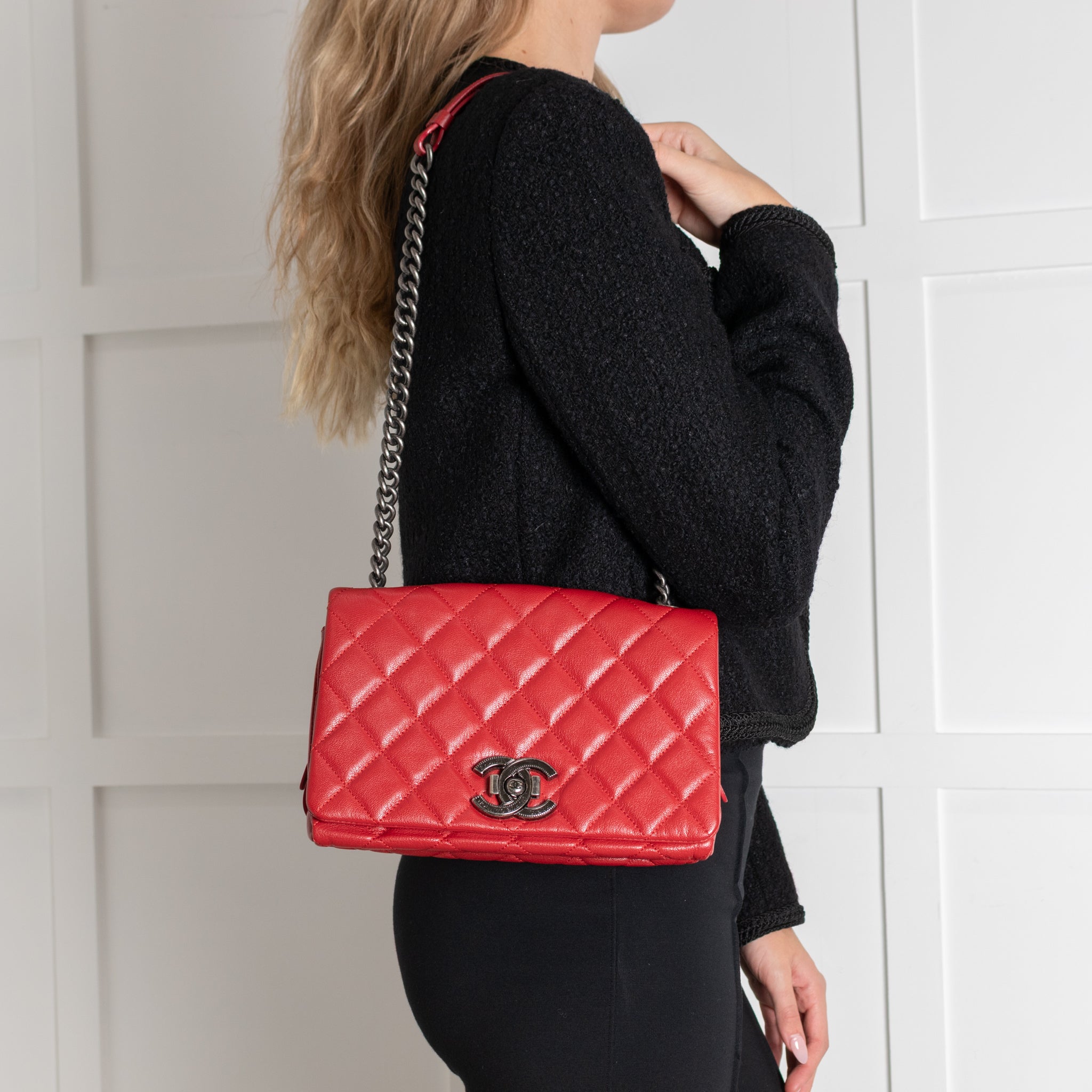 Chanel Red Leather City Rock Flap Shoulder Bag