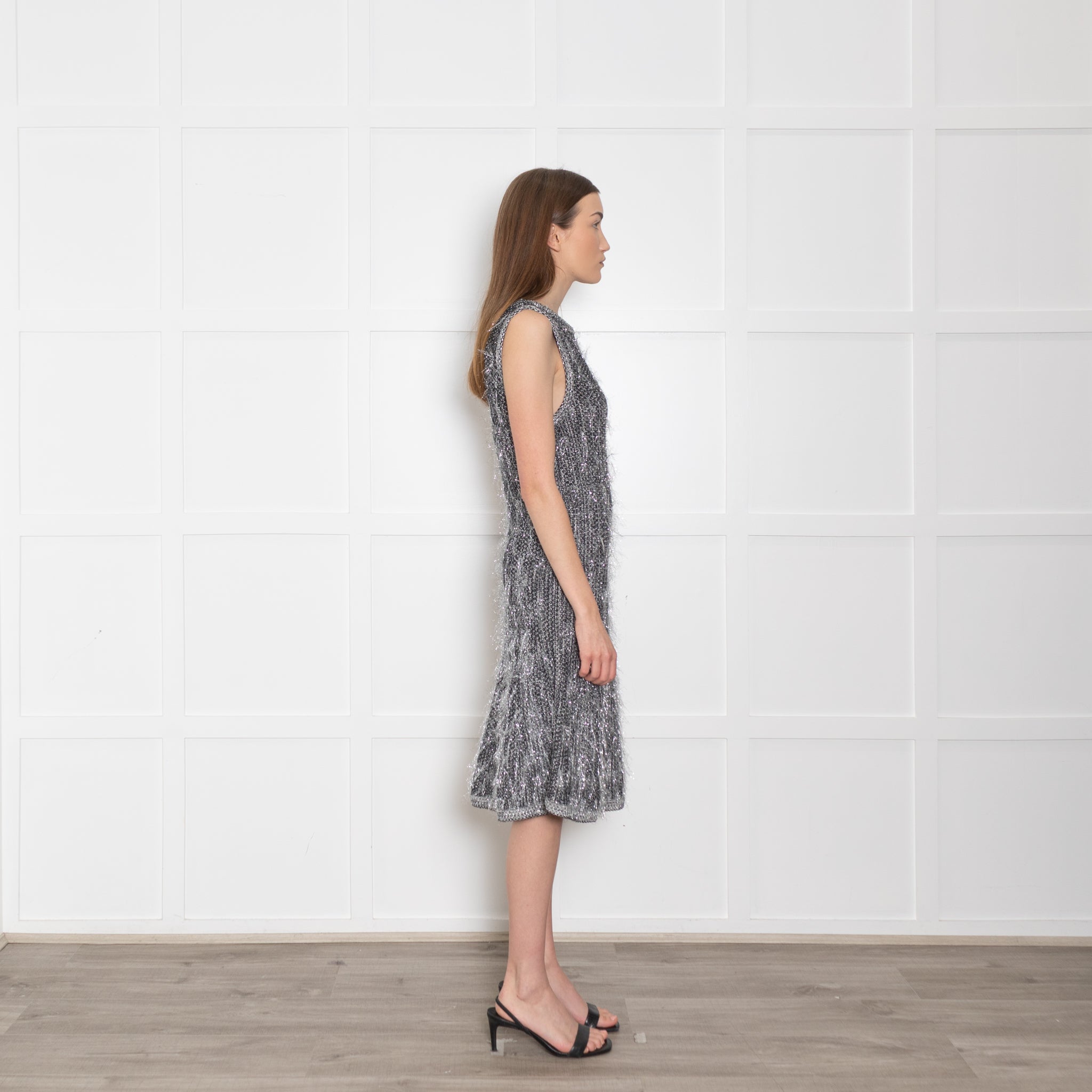 Chanel Silver Thread Silk And Cotton Knit Shift Dress