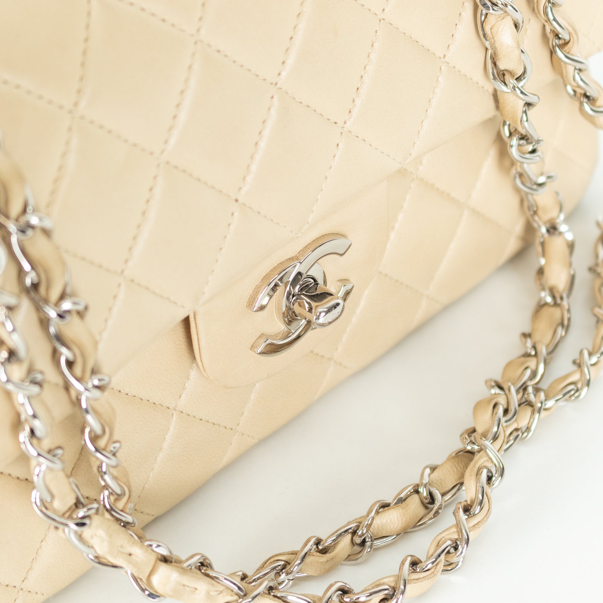 Chanel Small Beige Lambskin Classic Flap