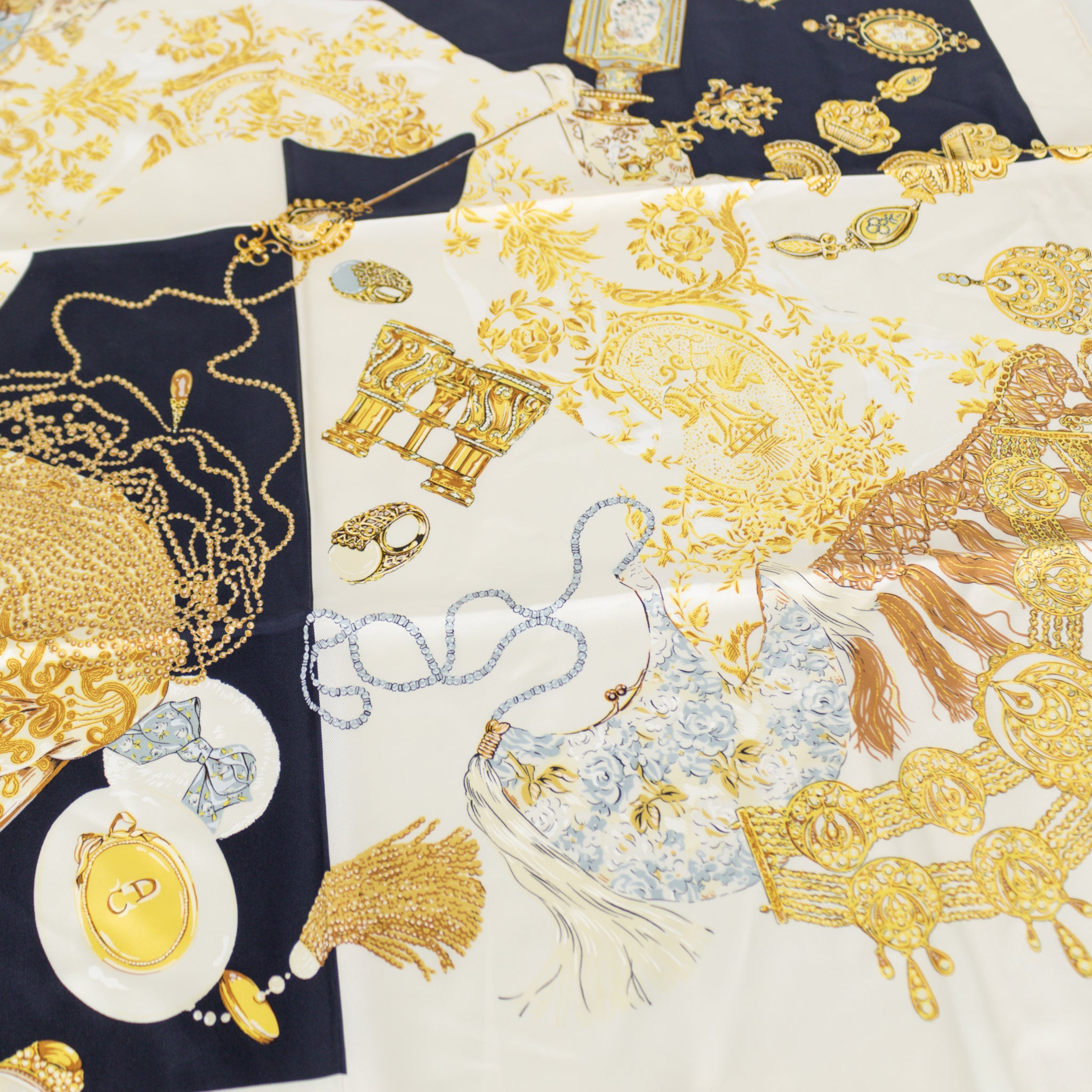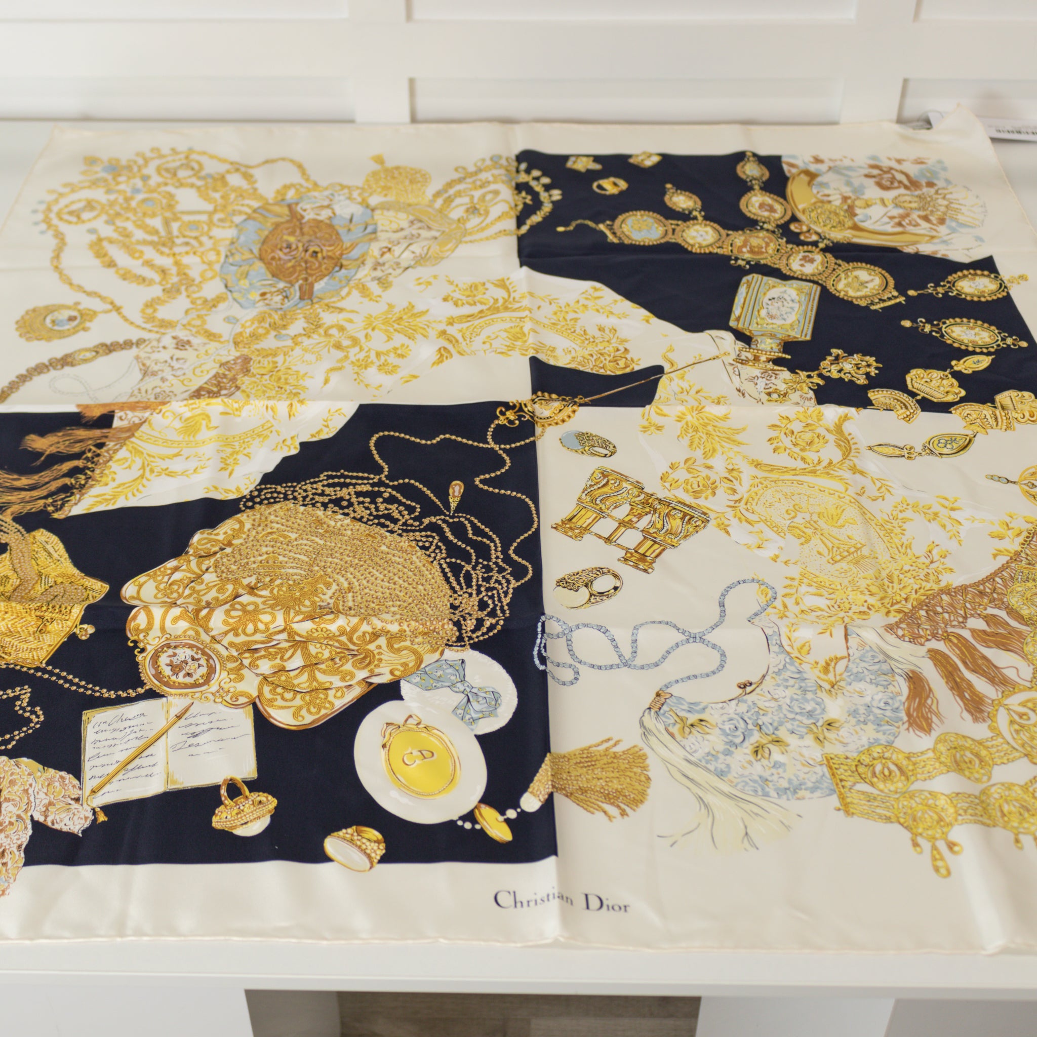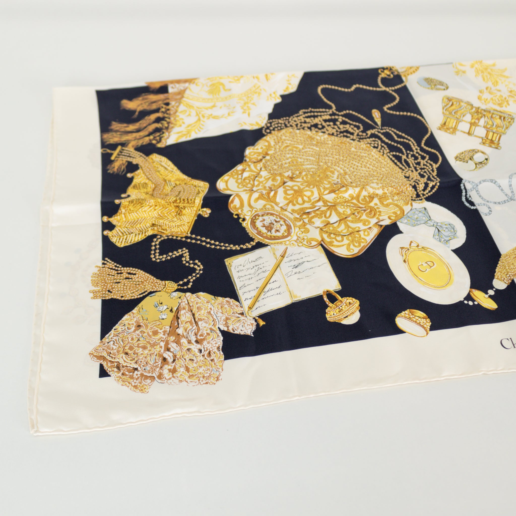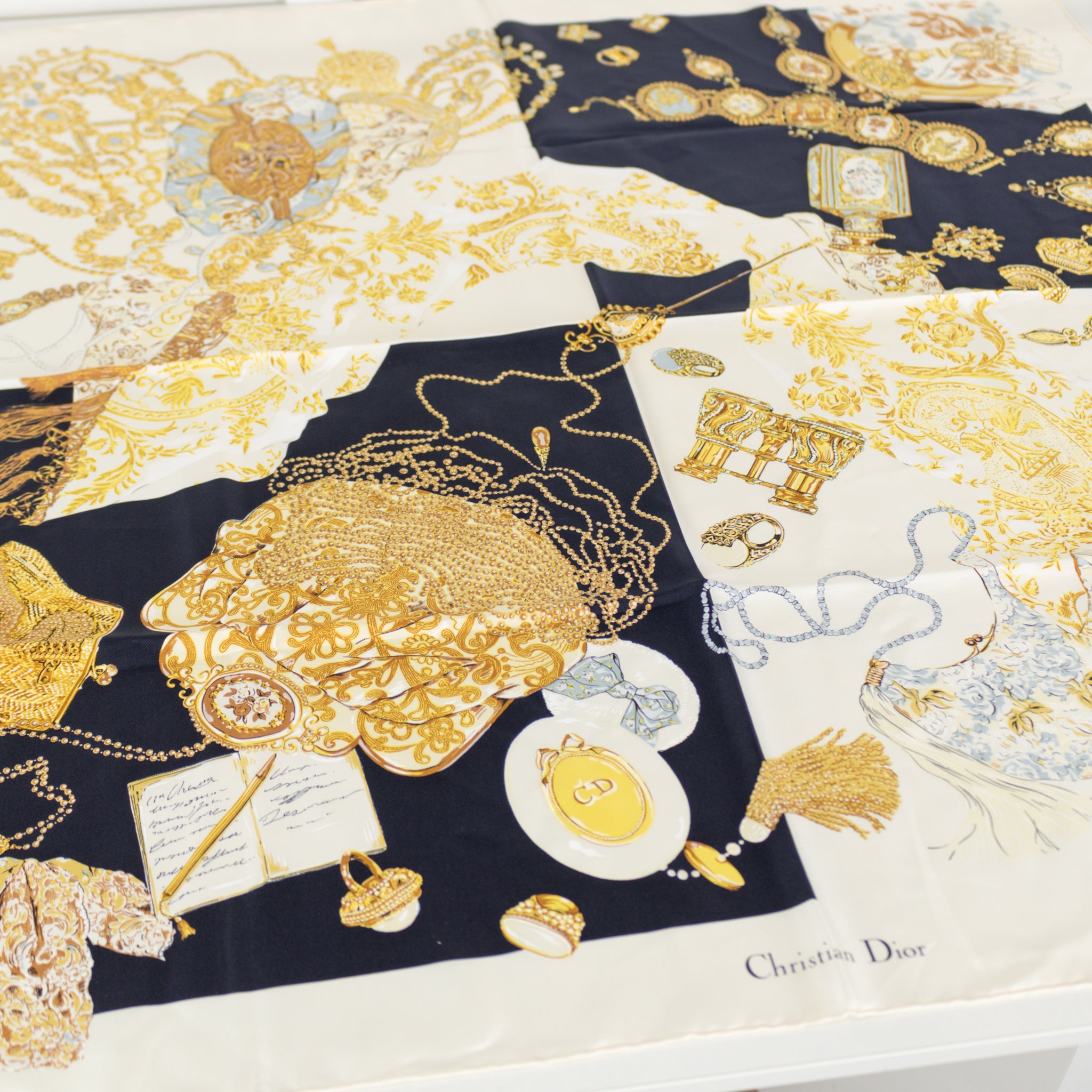 Christian Dior black, cream and gold silk scarf, featuring a stunning, elegant design, for a classic, sophisticated look.