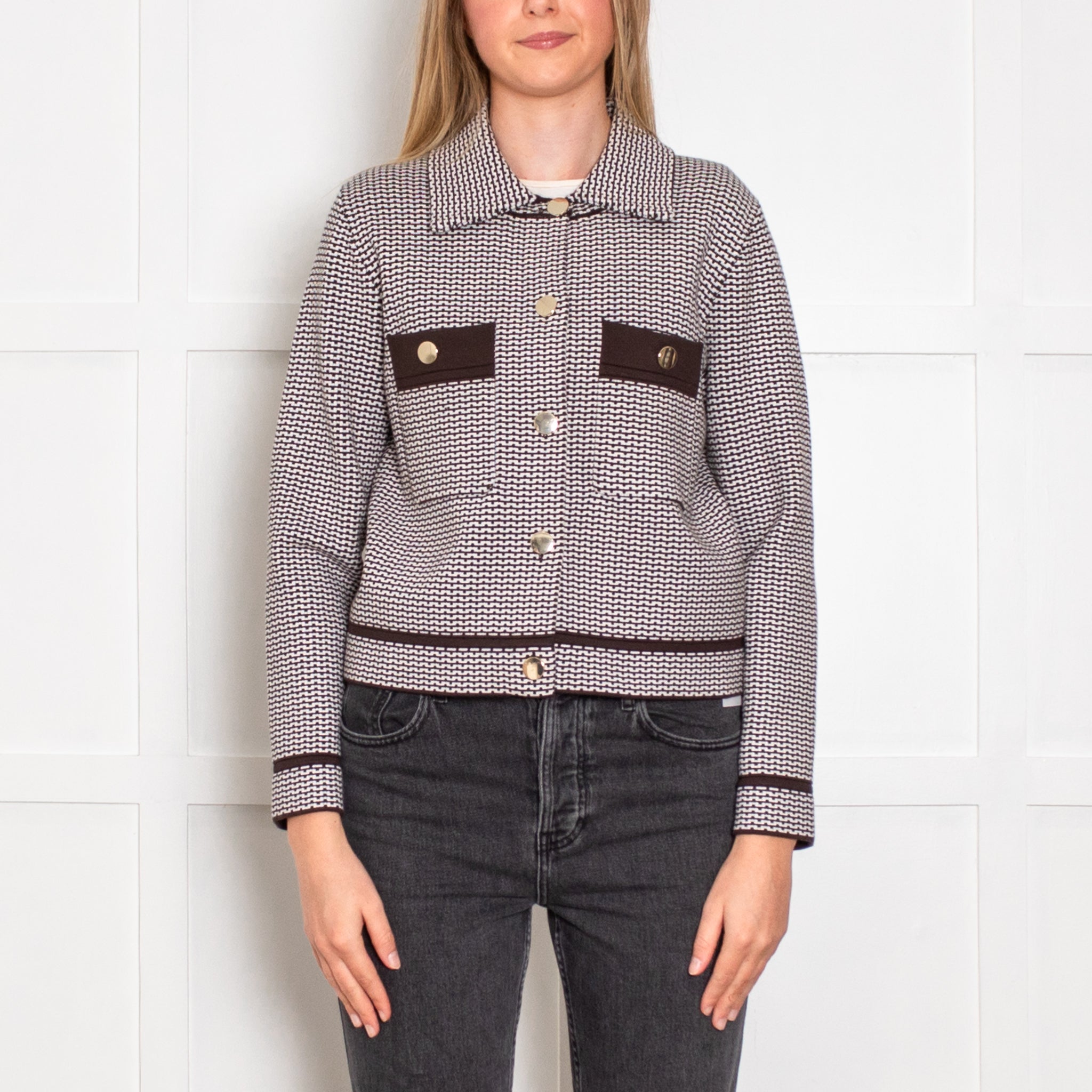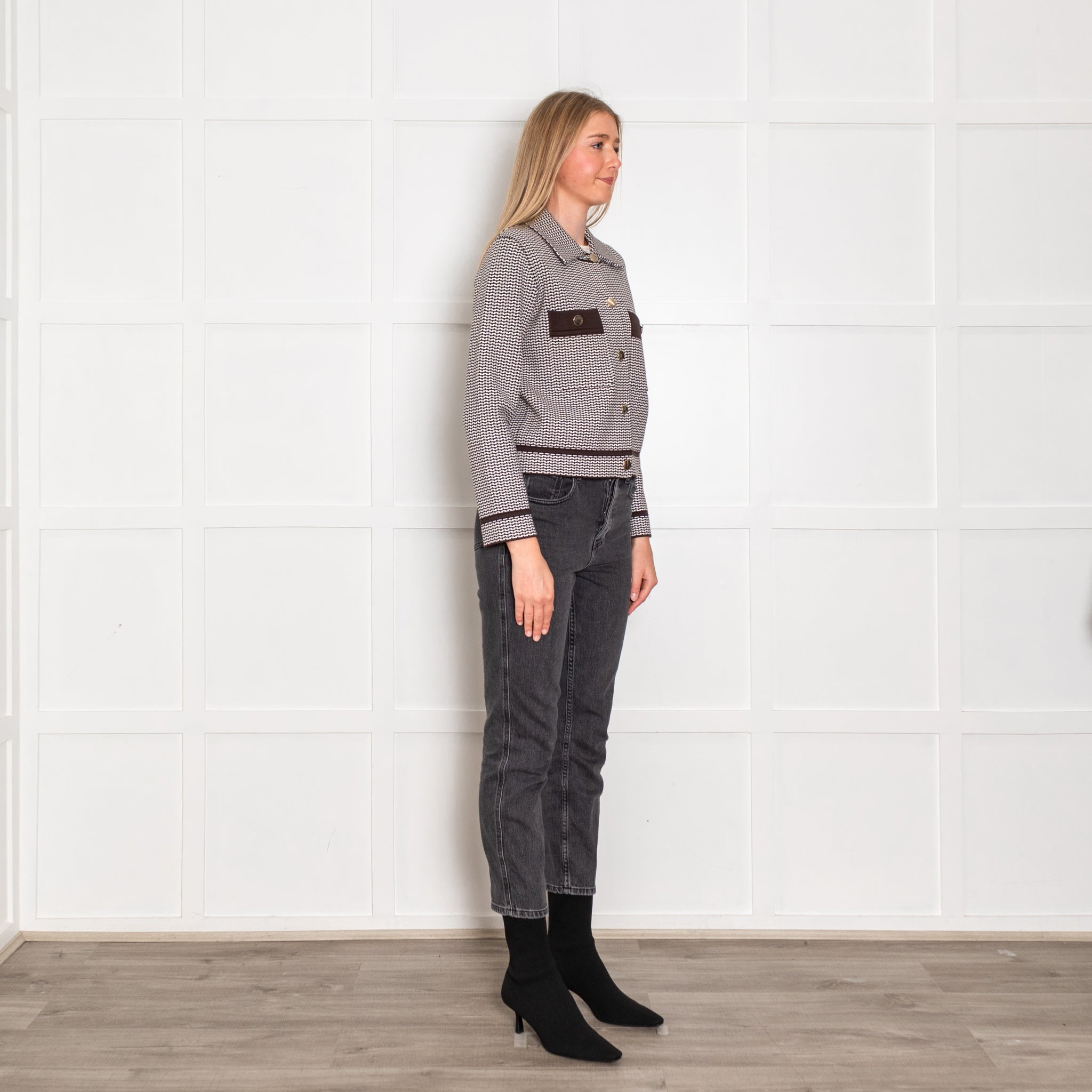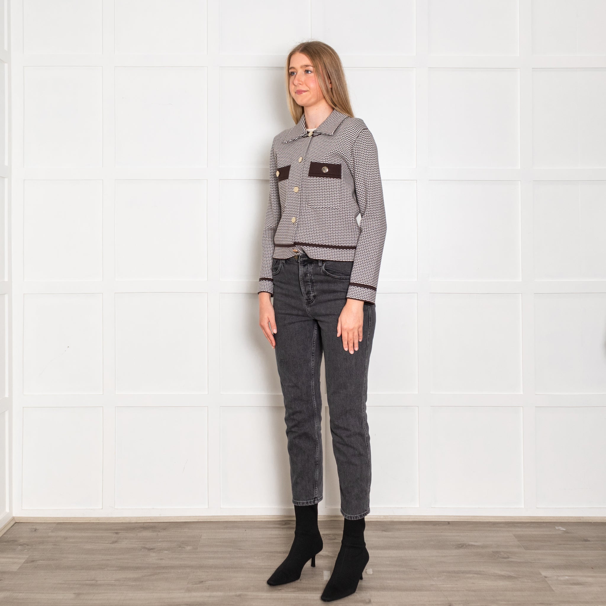 Claudie Pierlot Brown and White Stretch Knit Jacket with Gold Buttons
