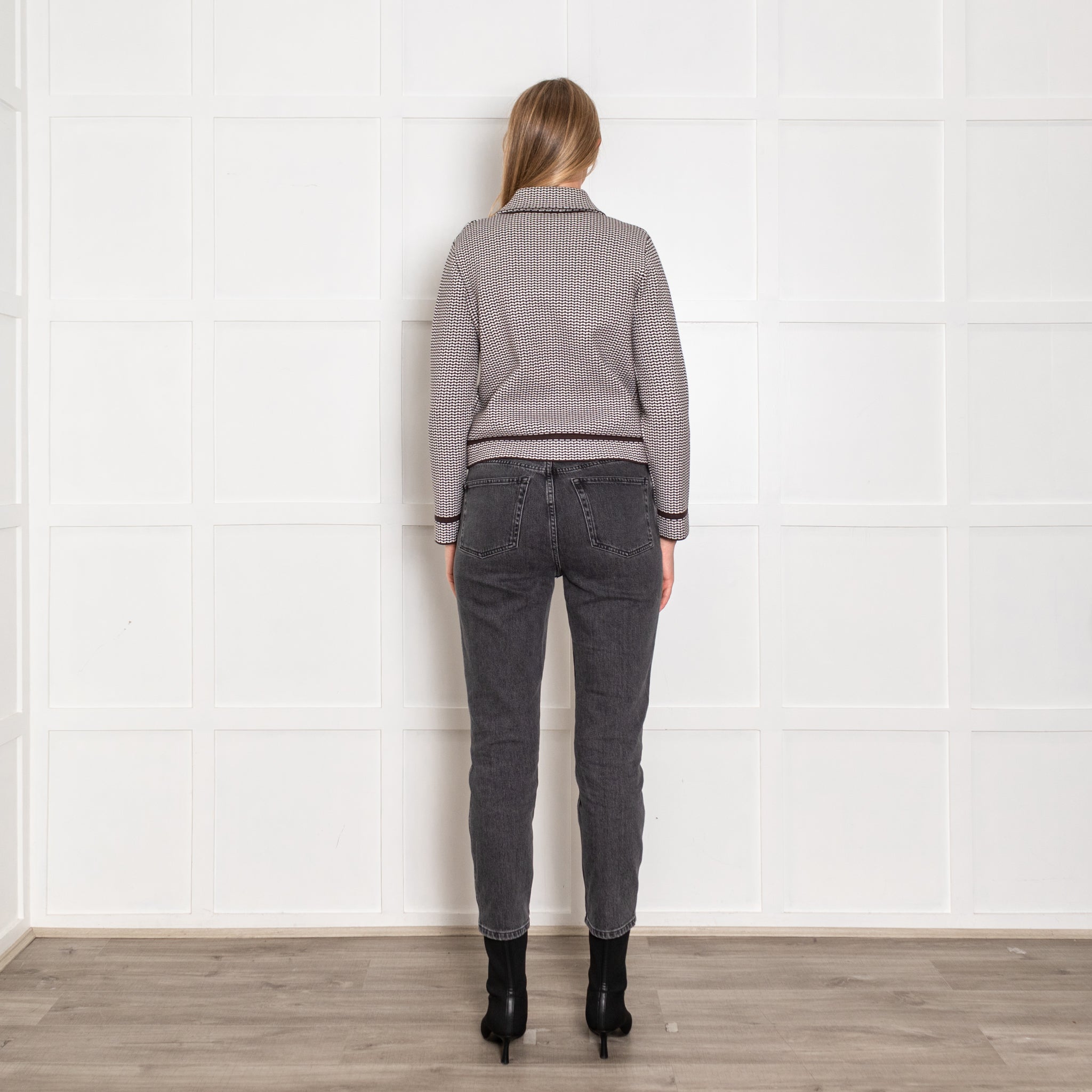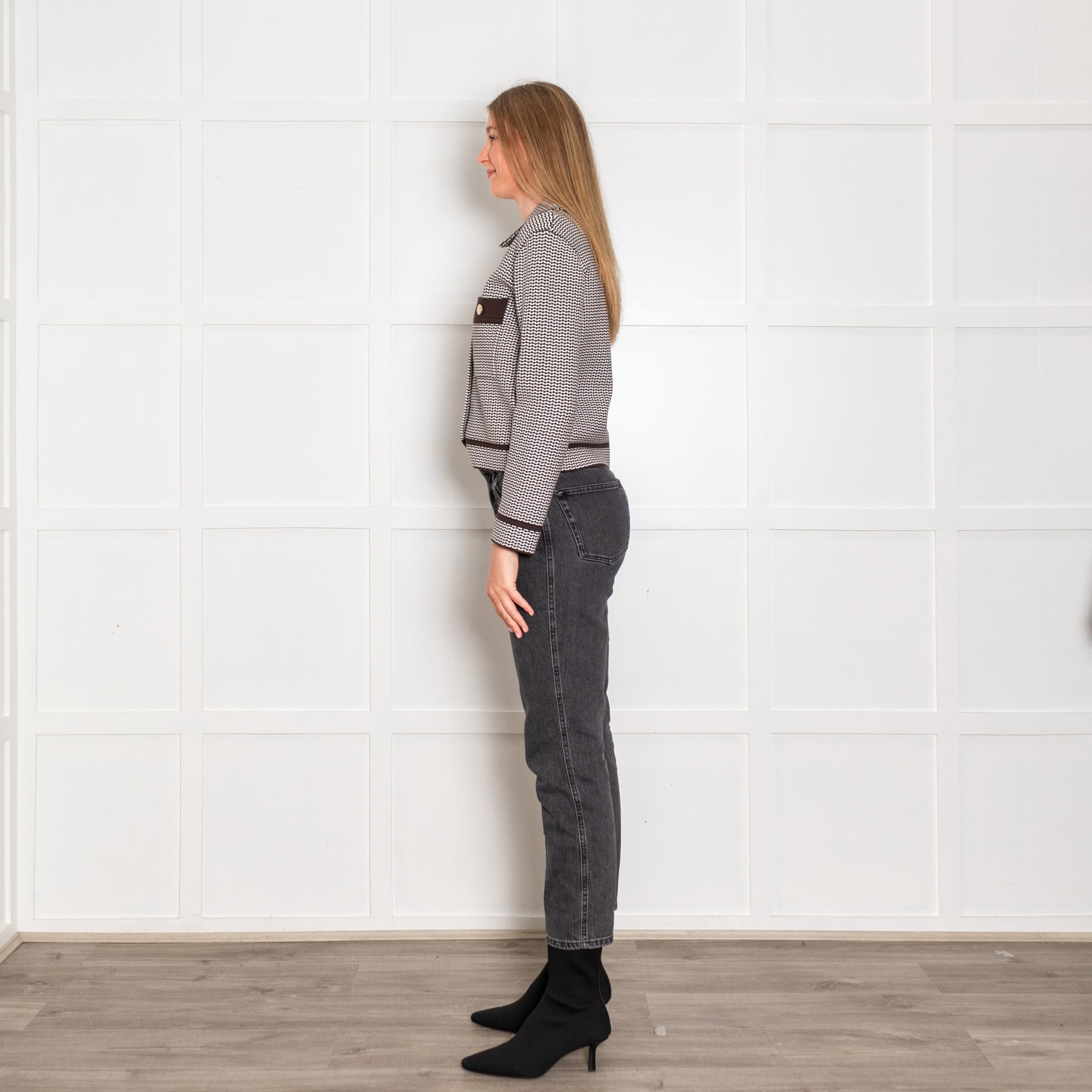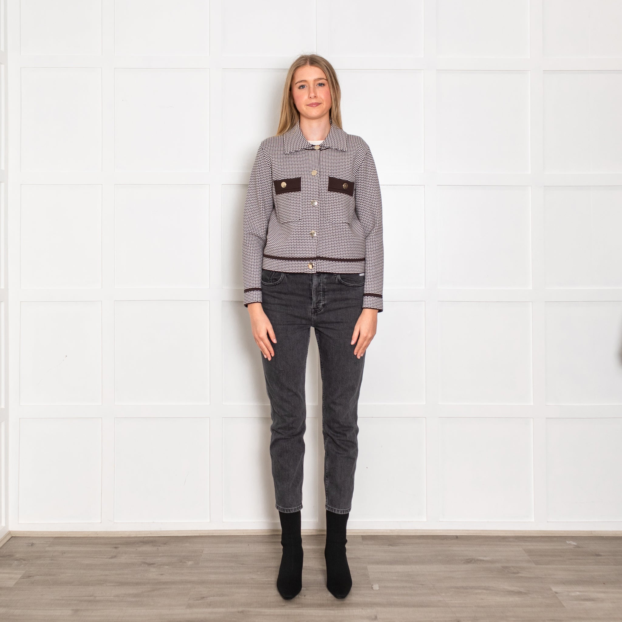 Claudie Pierlot Brown and White Stretch Knit Jacket with Gold Buttons