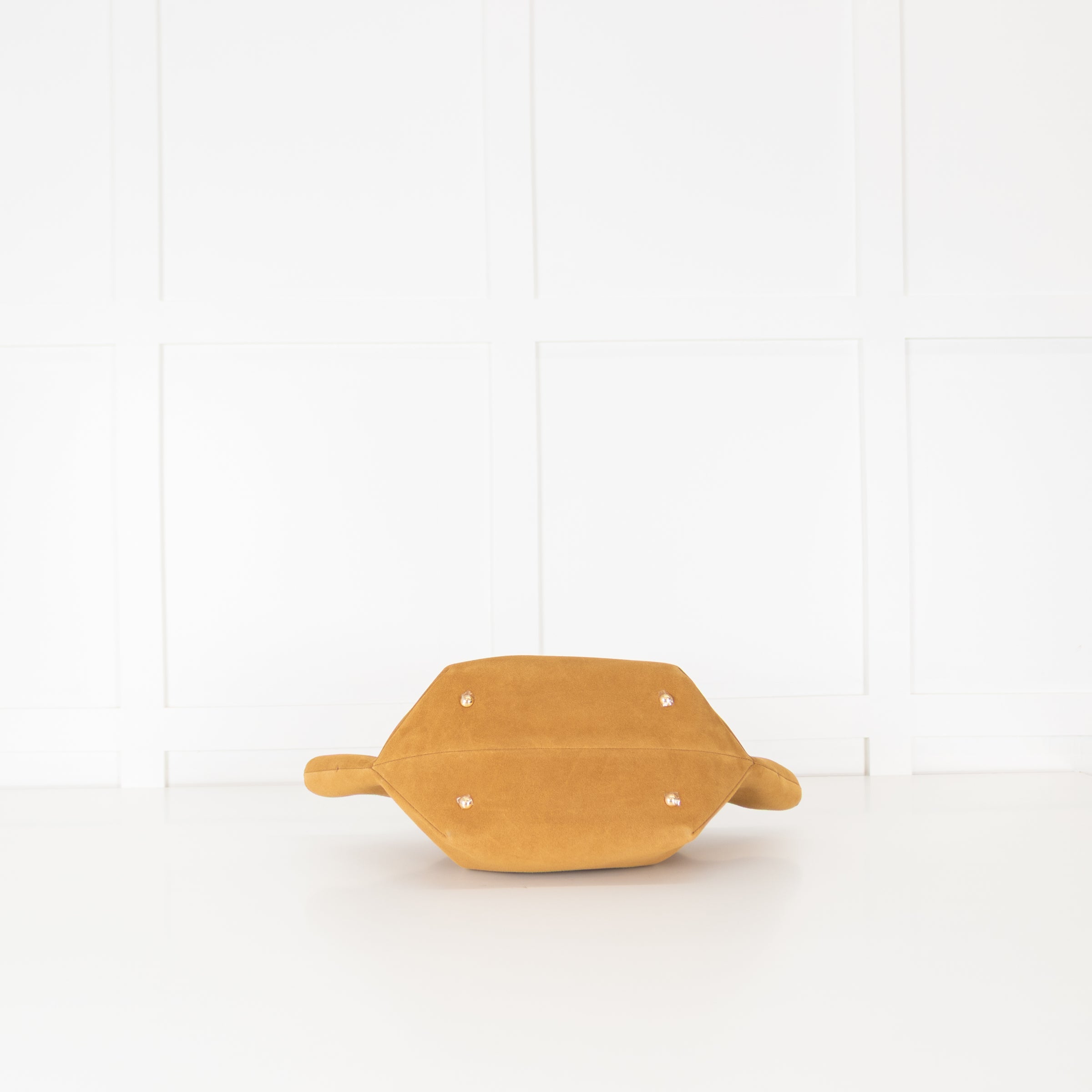 DeMellier golden tan suede Midi New York tote bag featuring the brand’s signature structured trapeze silhouette with soft, sculpted sides. Designed with dual top handles and a detachable shoulder strap for multiple styling options, it’s finished with gold-tone hardware and a magnetic top closure. The spacious interior reveals one main compartment with a zip pocket for valuables. Comes with the original dust bag. The original RRP £475.