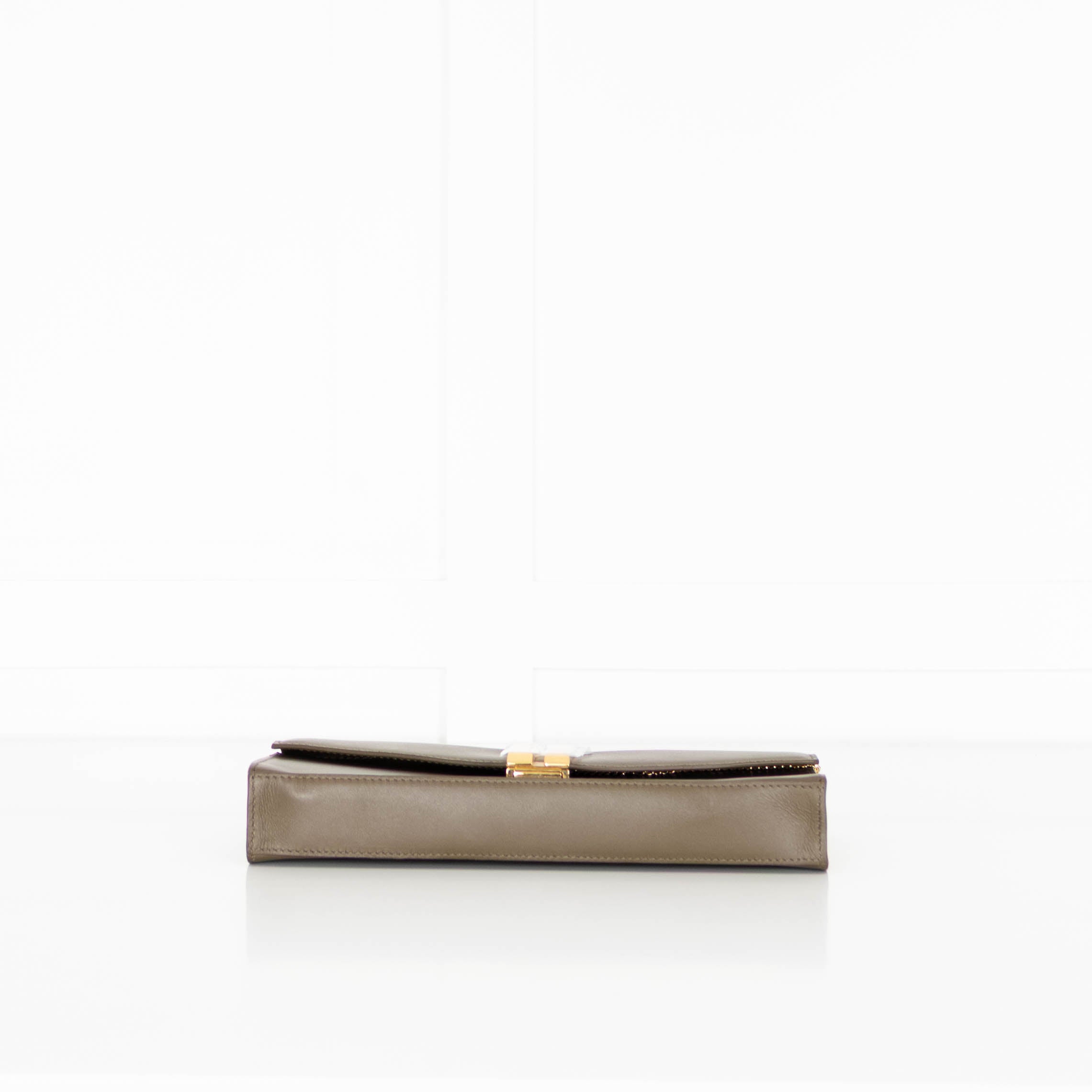 DeMellier Vancouver Olive Green Leather Clutch Bag