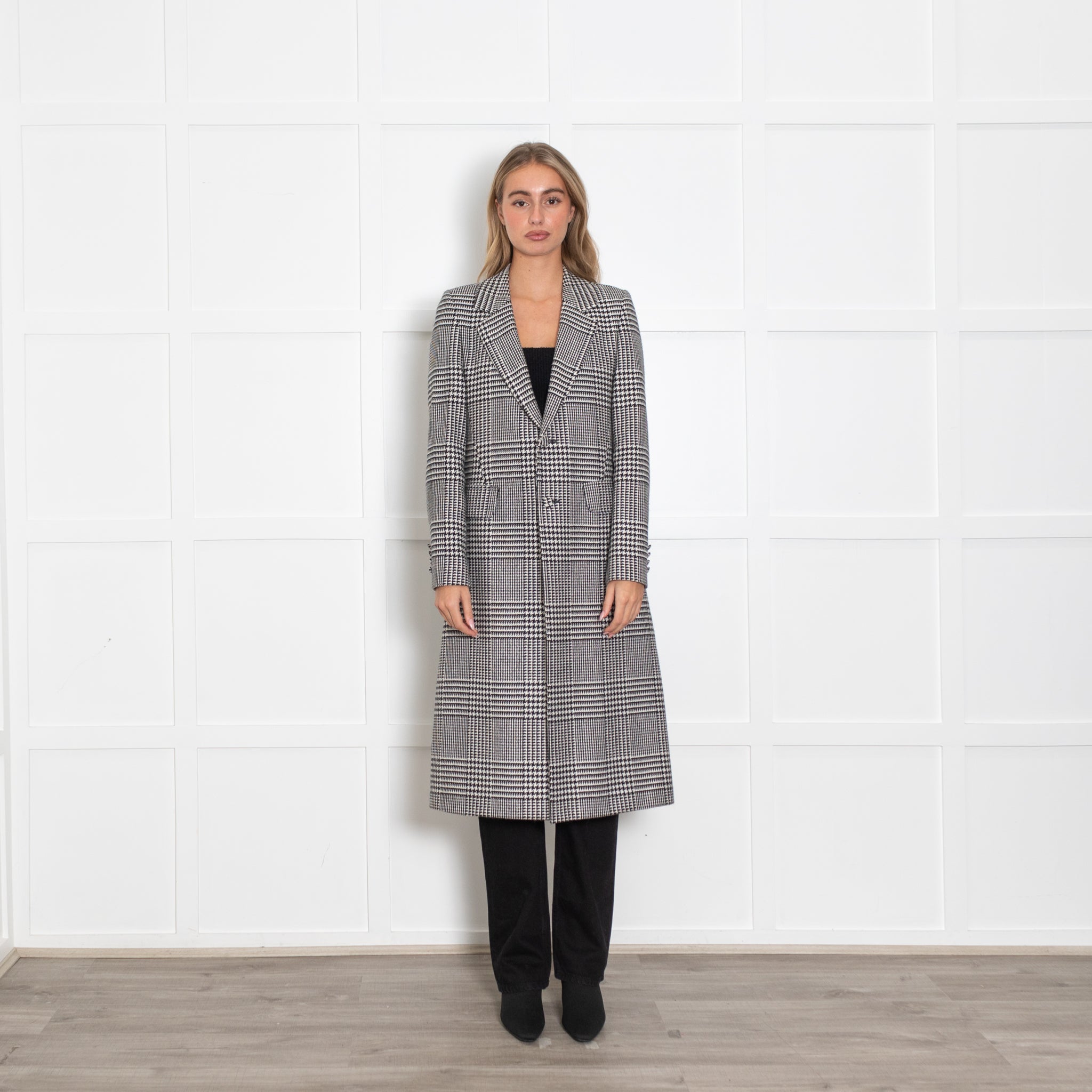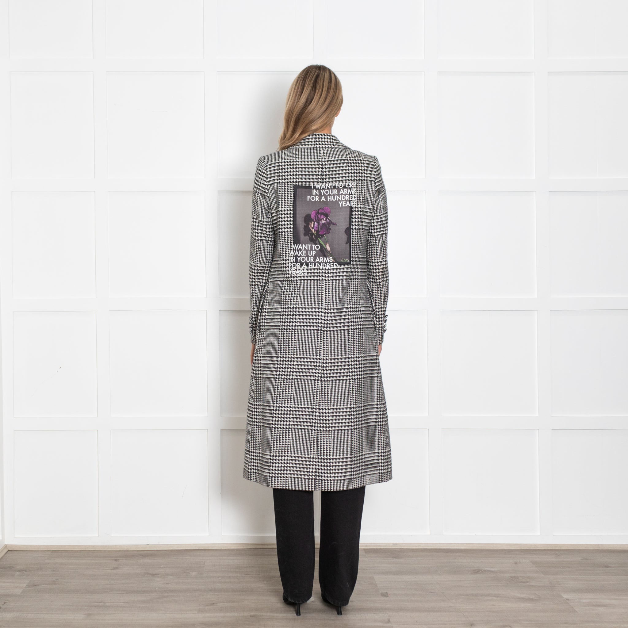 Each Other Black and White Houndstooth Wool Coat with Back Motif