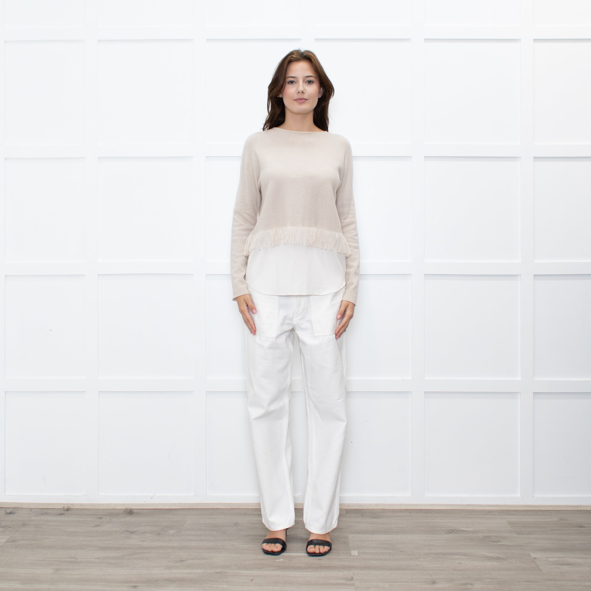 Fabiana Filippi Beige Cashmere Fringed Sweater