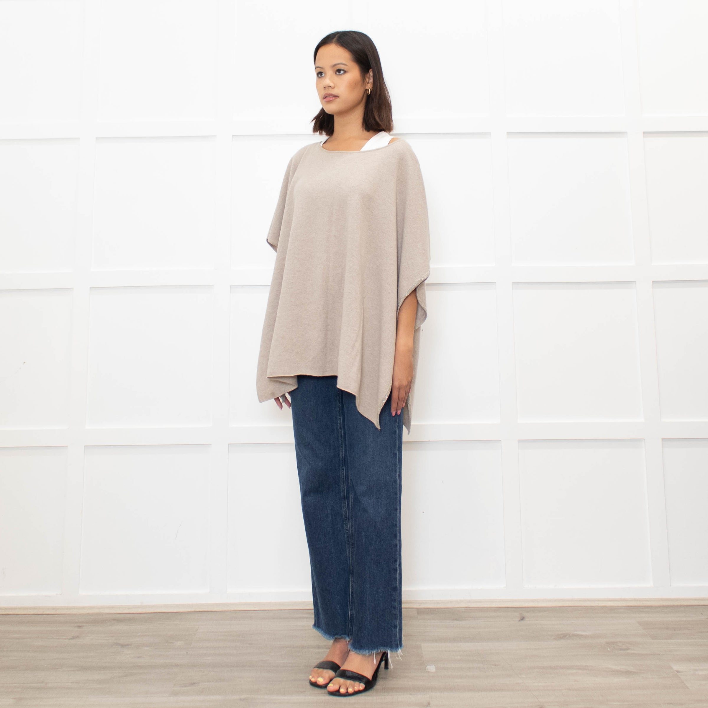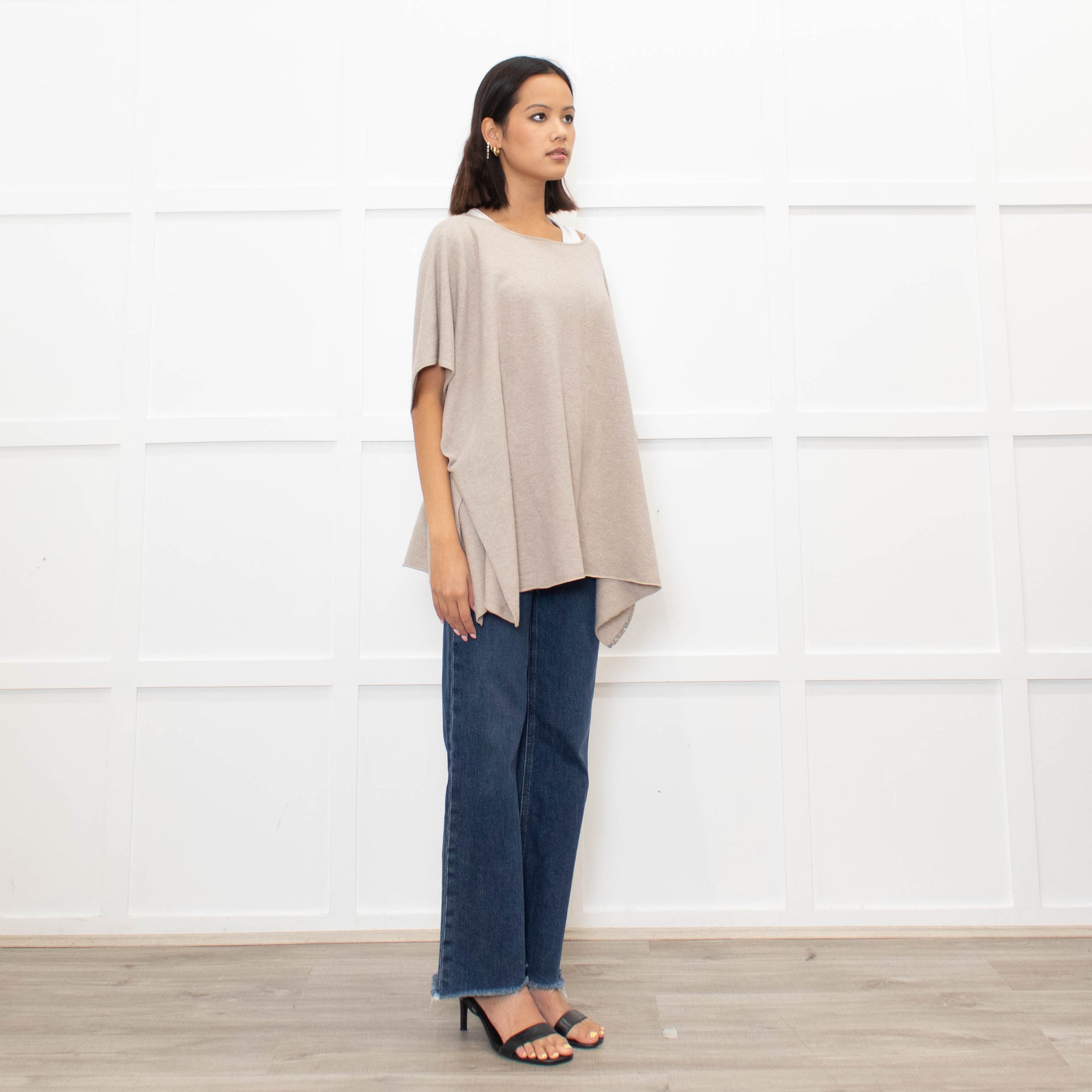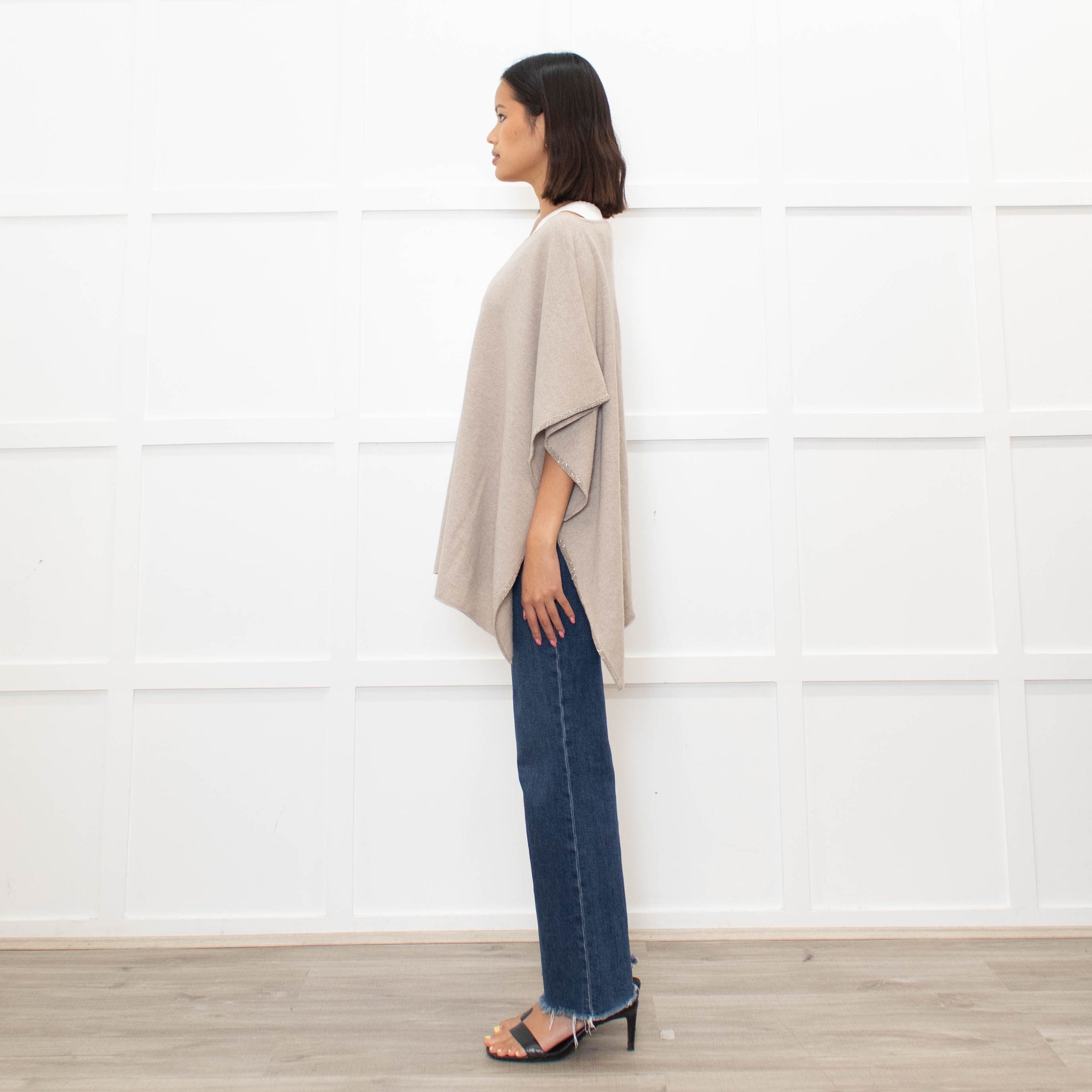 Fabiana Filippi Neutral Beige Silver Bead Trim Knitted Poncho