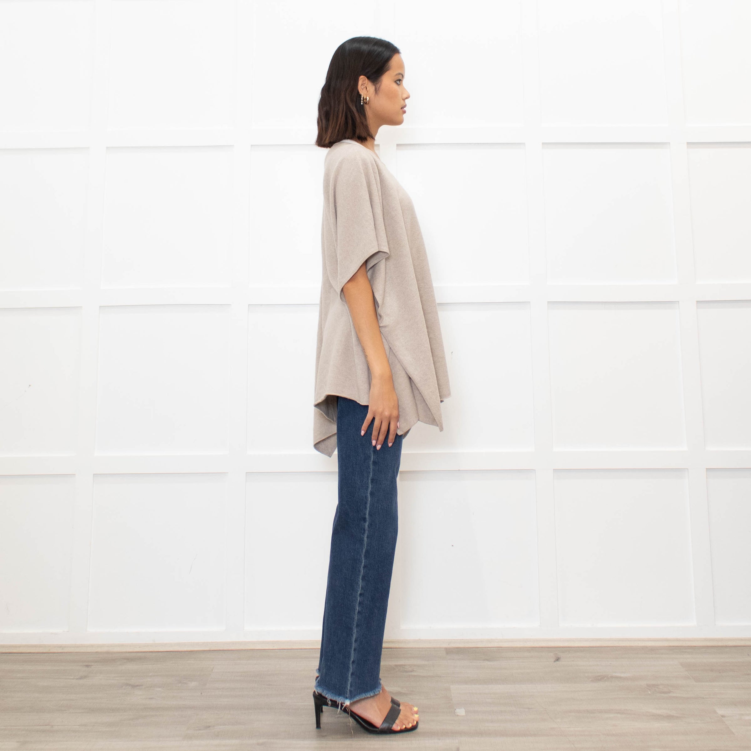 Fabiana Filippi neutral beige silver bead trim knitted poncho with a rounded neckline and side hem splits.