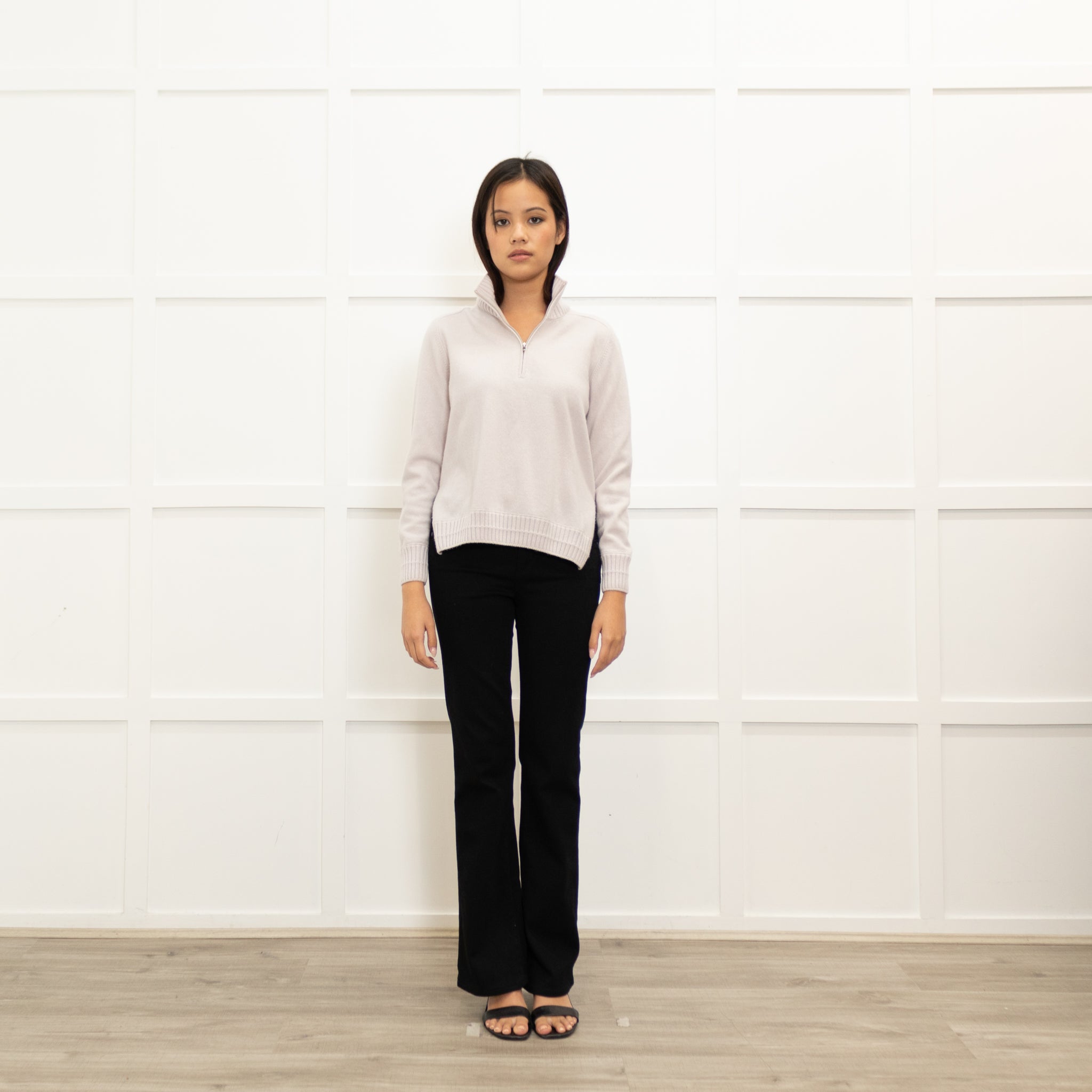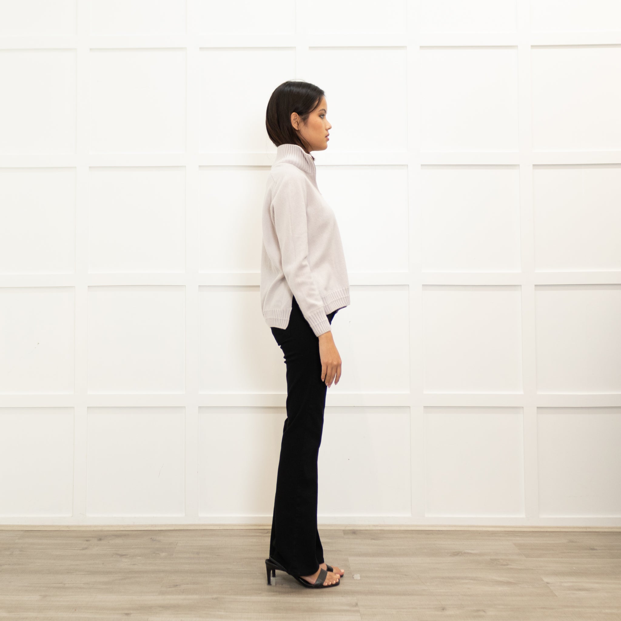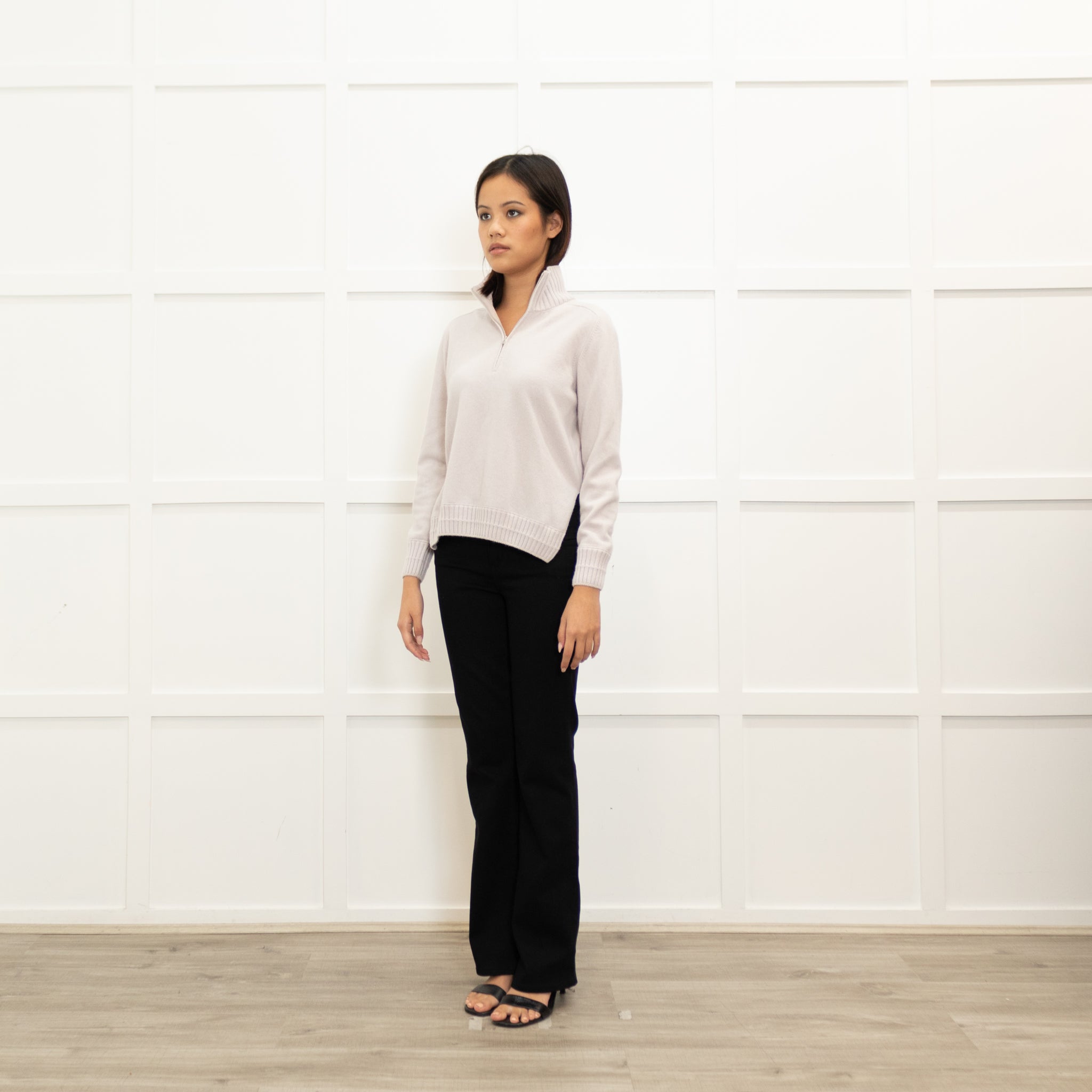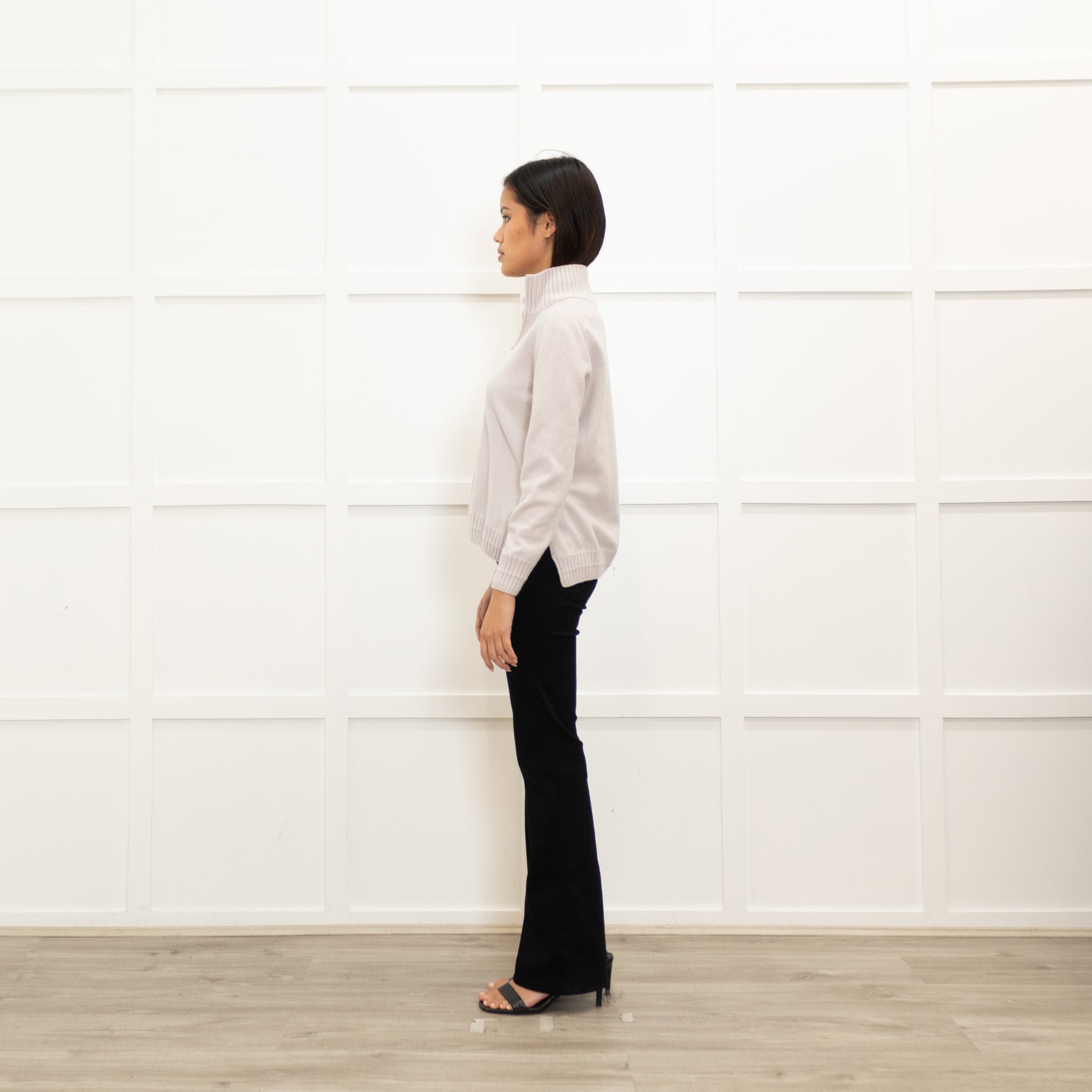 Gran Sasso cashmere short jumper, featuring a classic turtle neck, zip-up neckline, with taupe designs and cut hemlines, for a classic, stylish look.