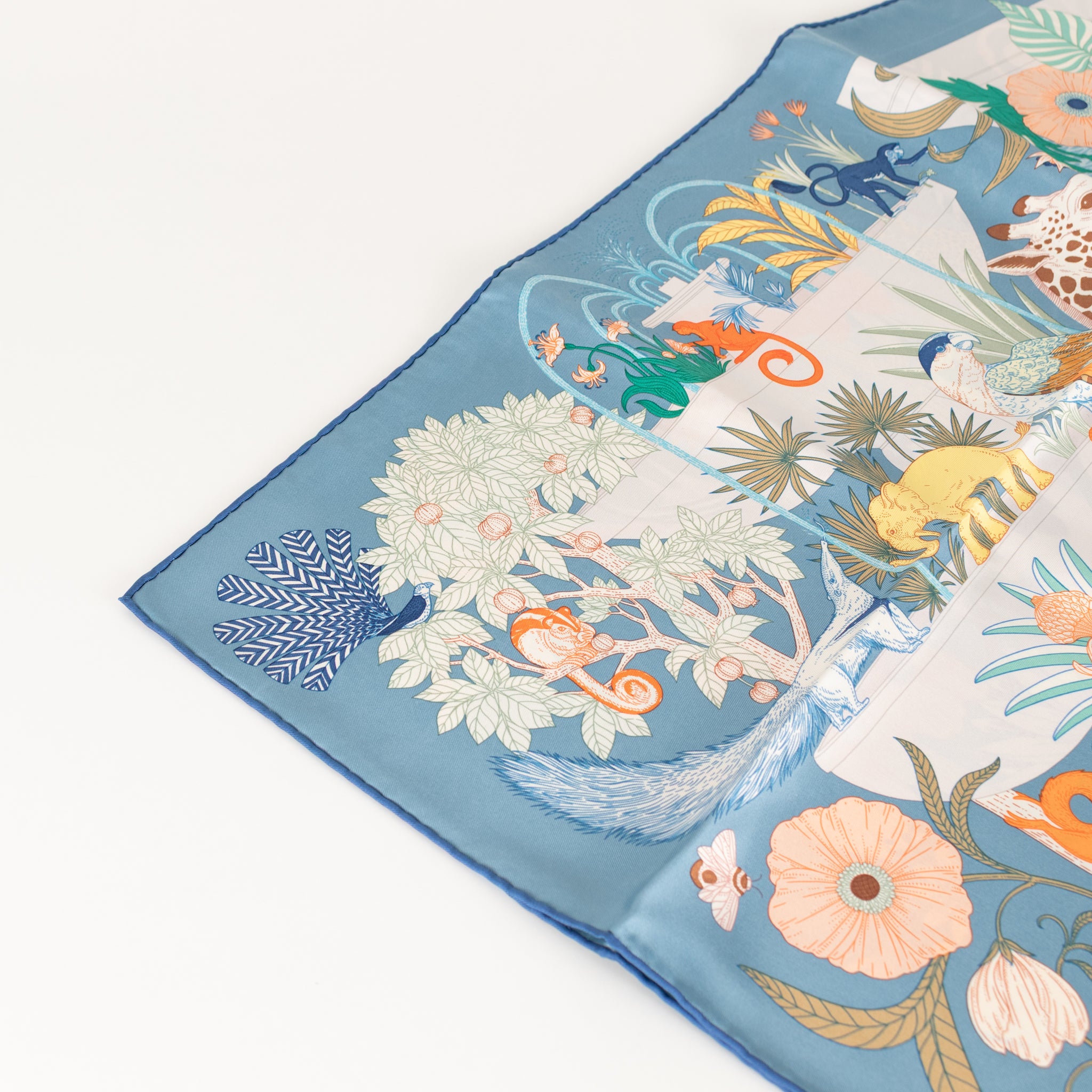 Hermes Silk Blue Multi Print Precious Paradise Scarf