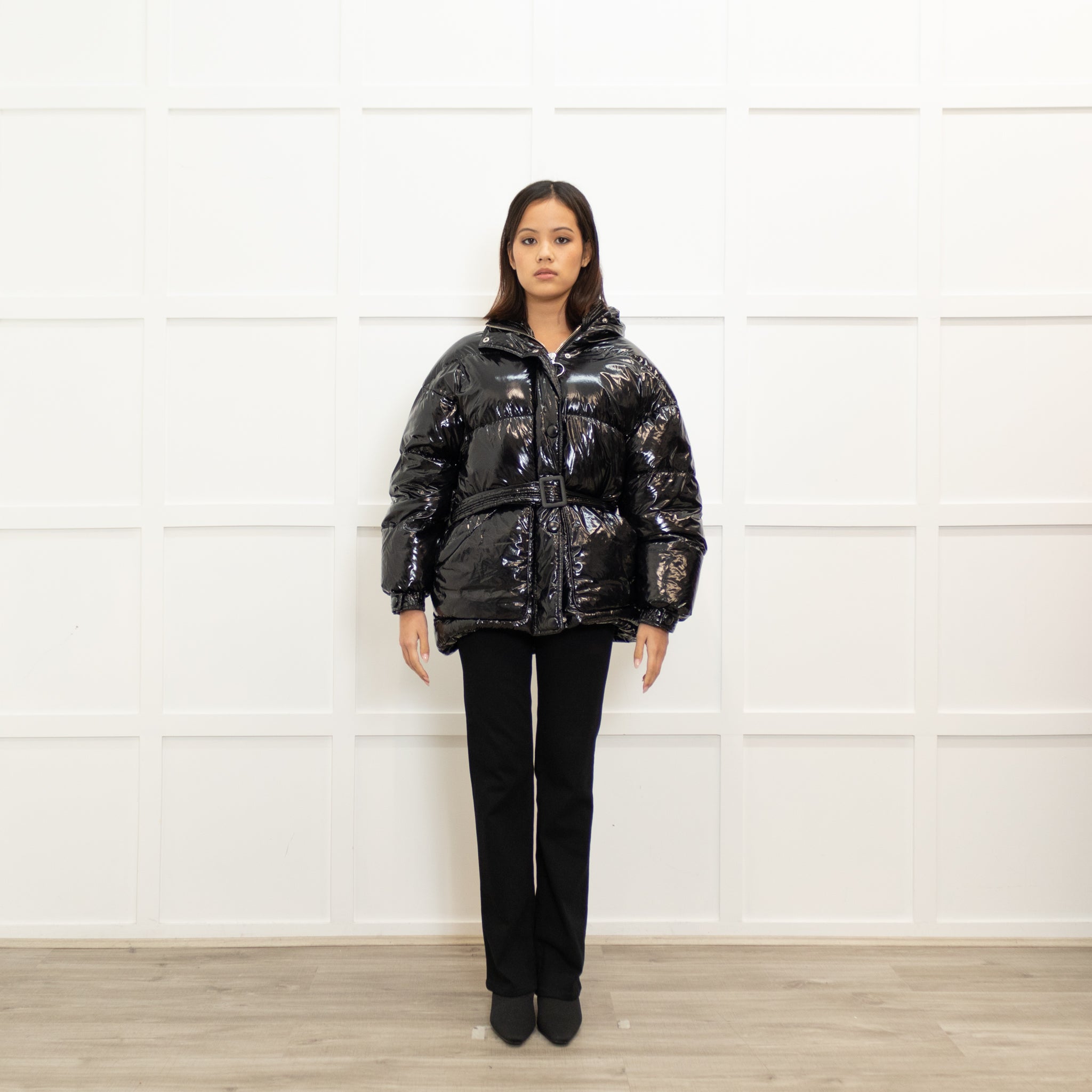 Ienki Ienki black puffer jacket, featuring a lovely waterproof glossy fabric, with button-up fitted sleeves, a zipped-up front closure, two front pockets and an attached hood.
