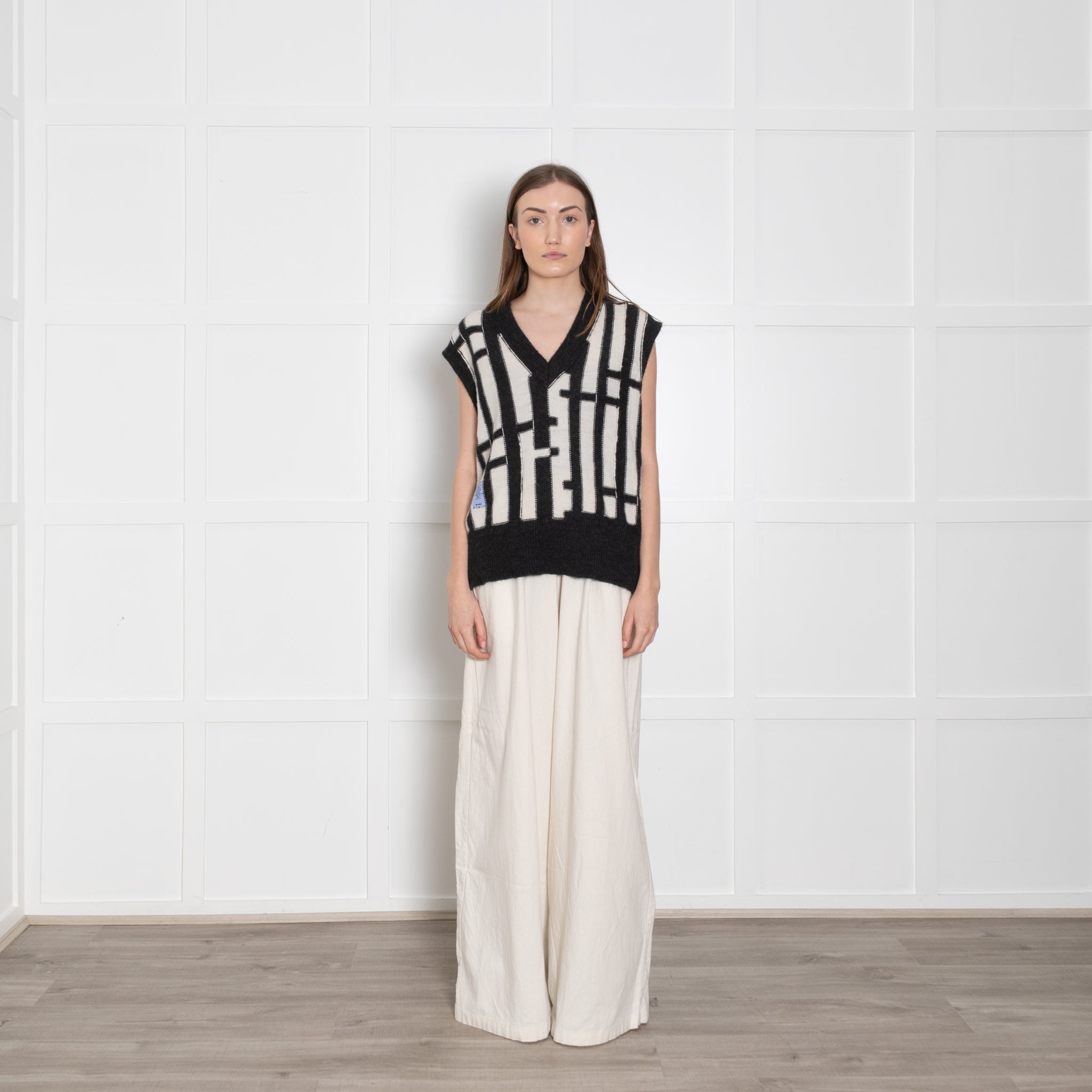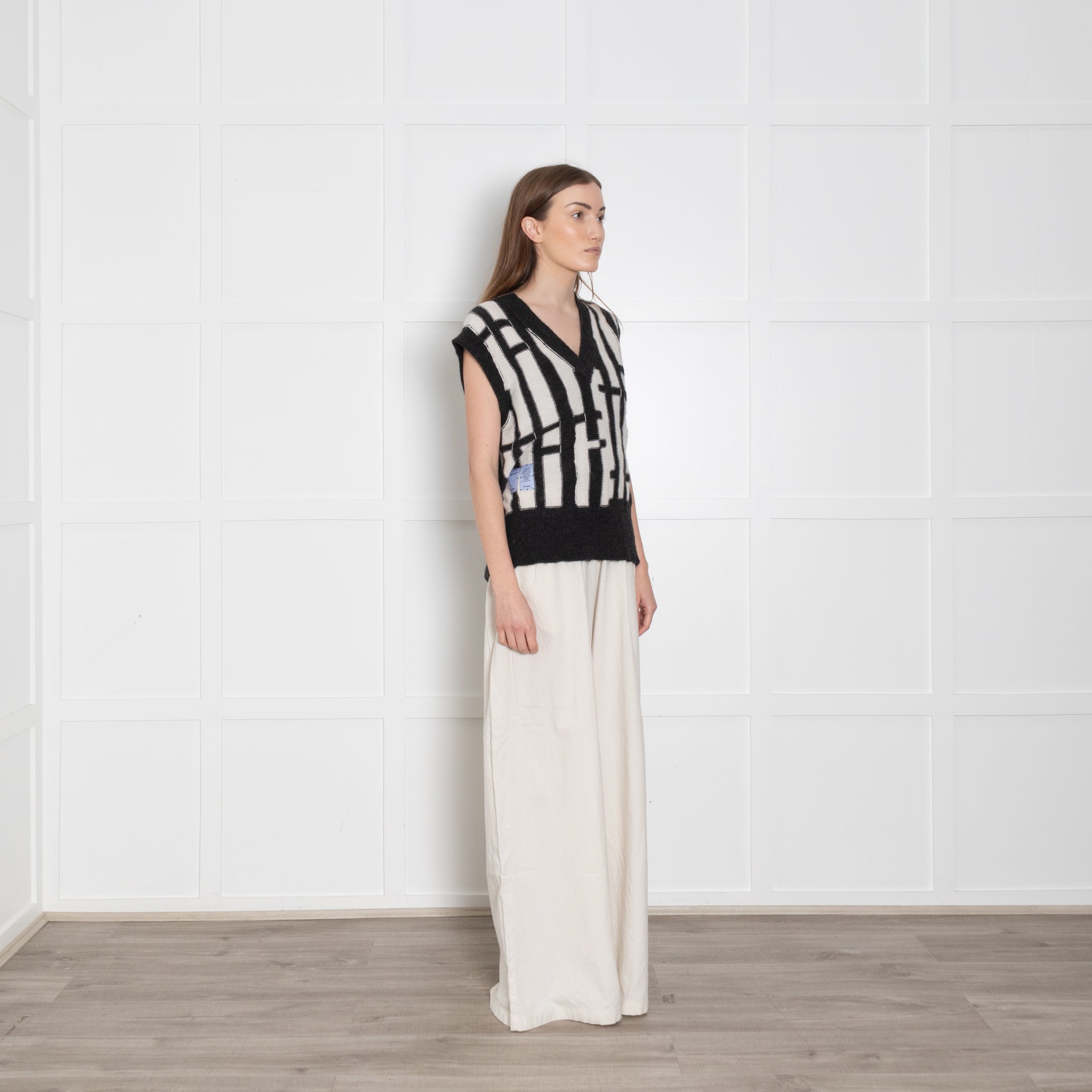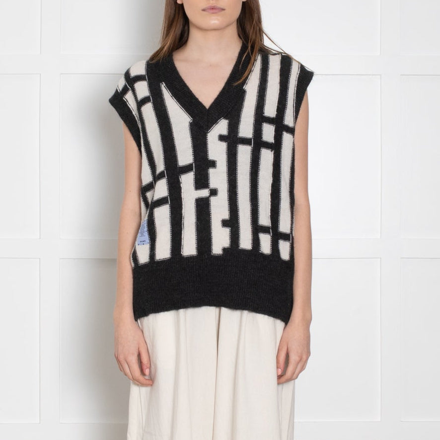 Indust by MCQ grey and white knit vest with a V-shaped neckline and ribbed trims.