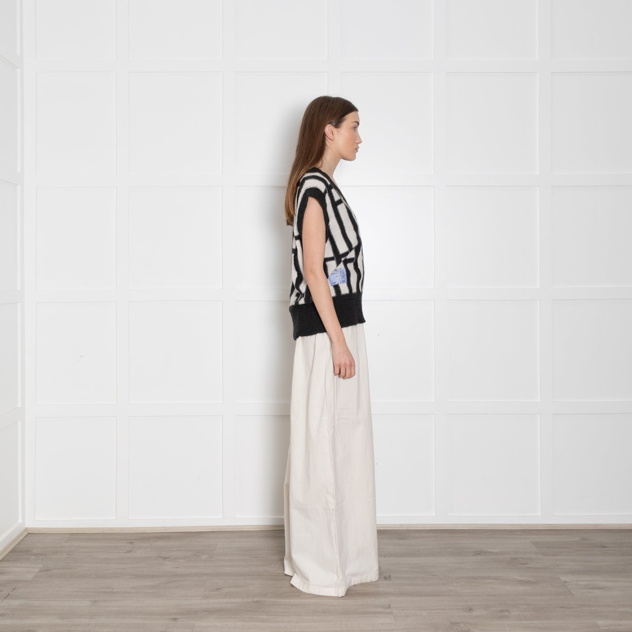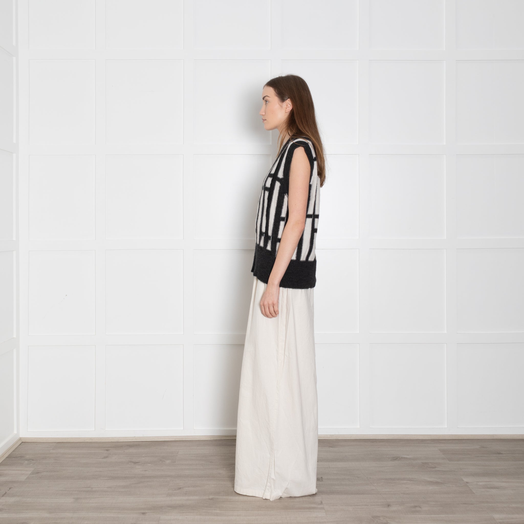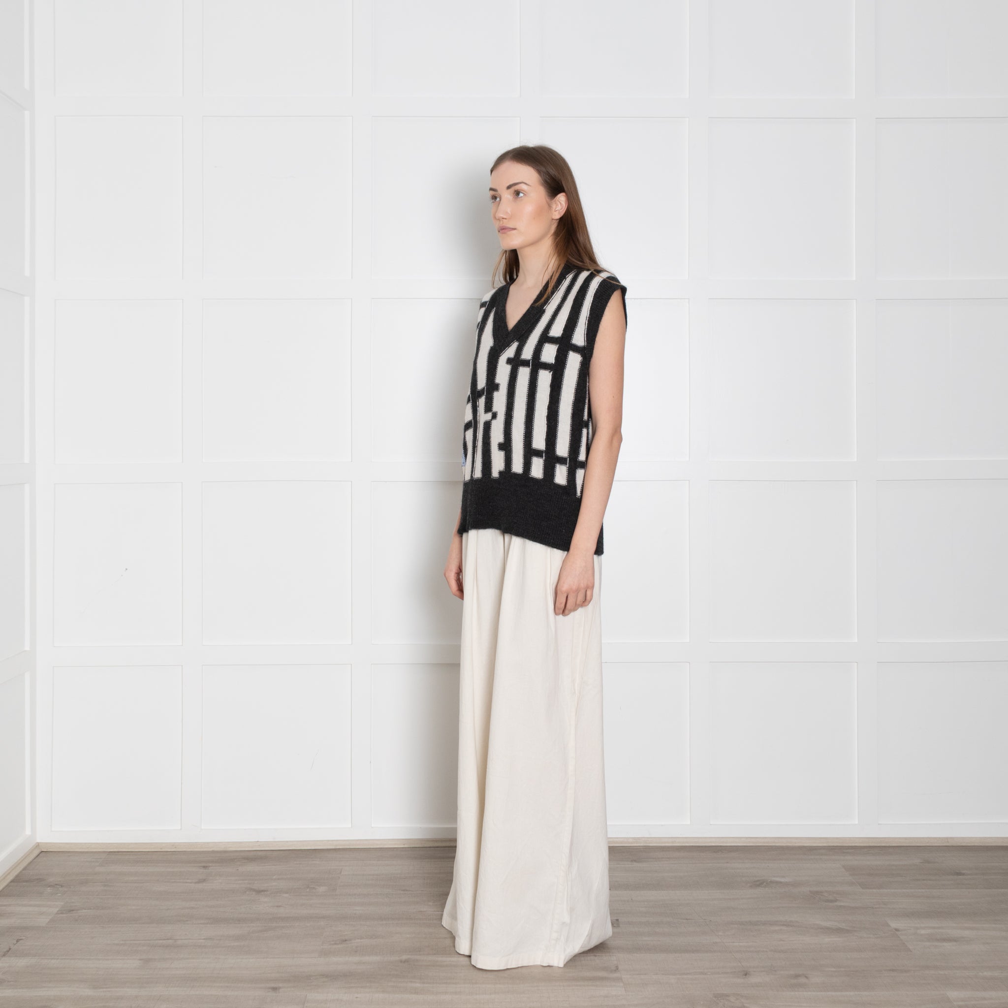 Indust by MCQ grey and white knit vest with a V-shaped neckline and ribbed trims.