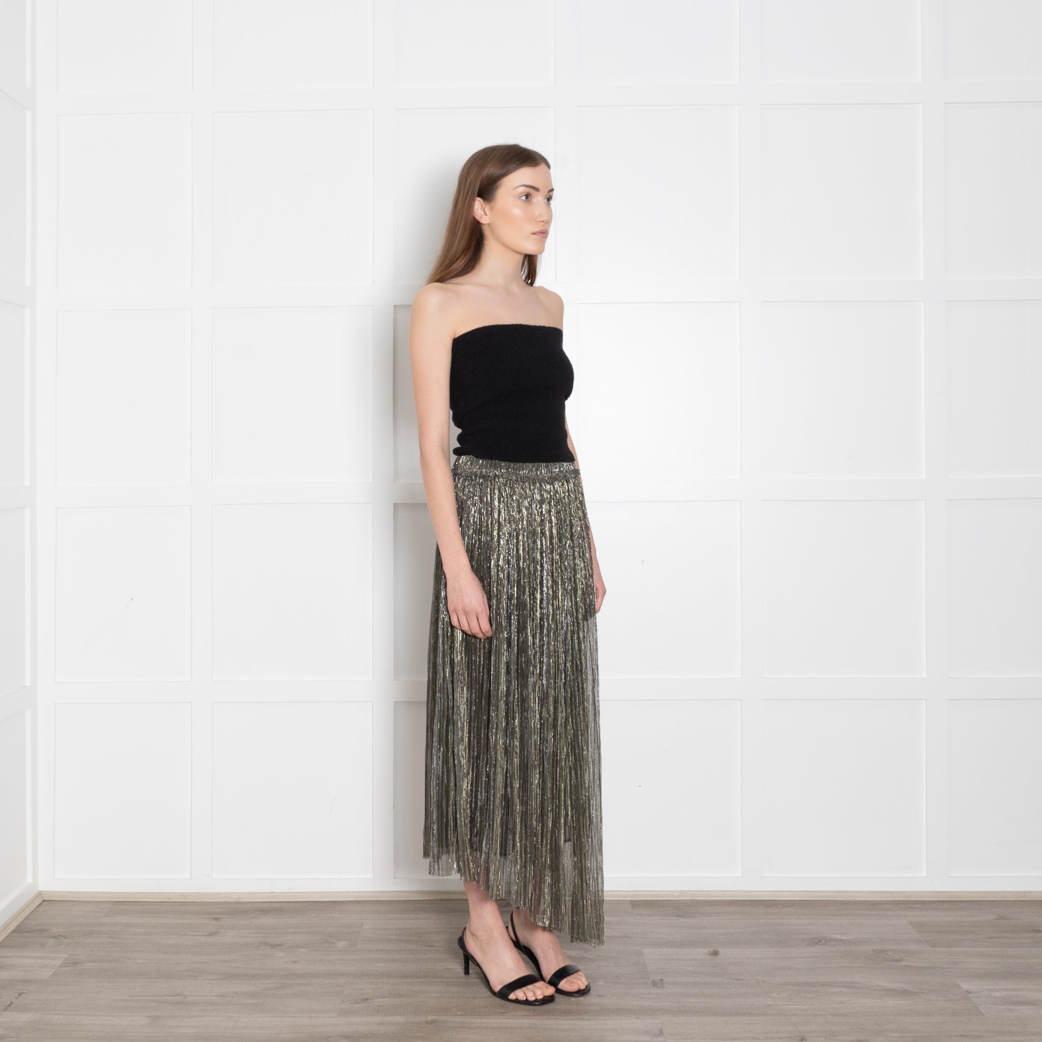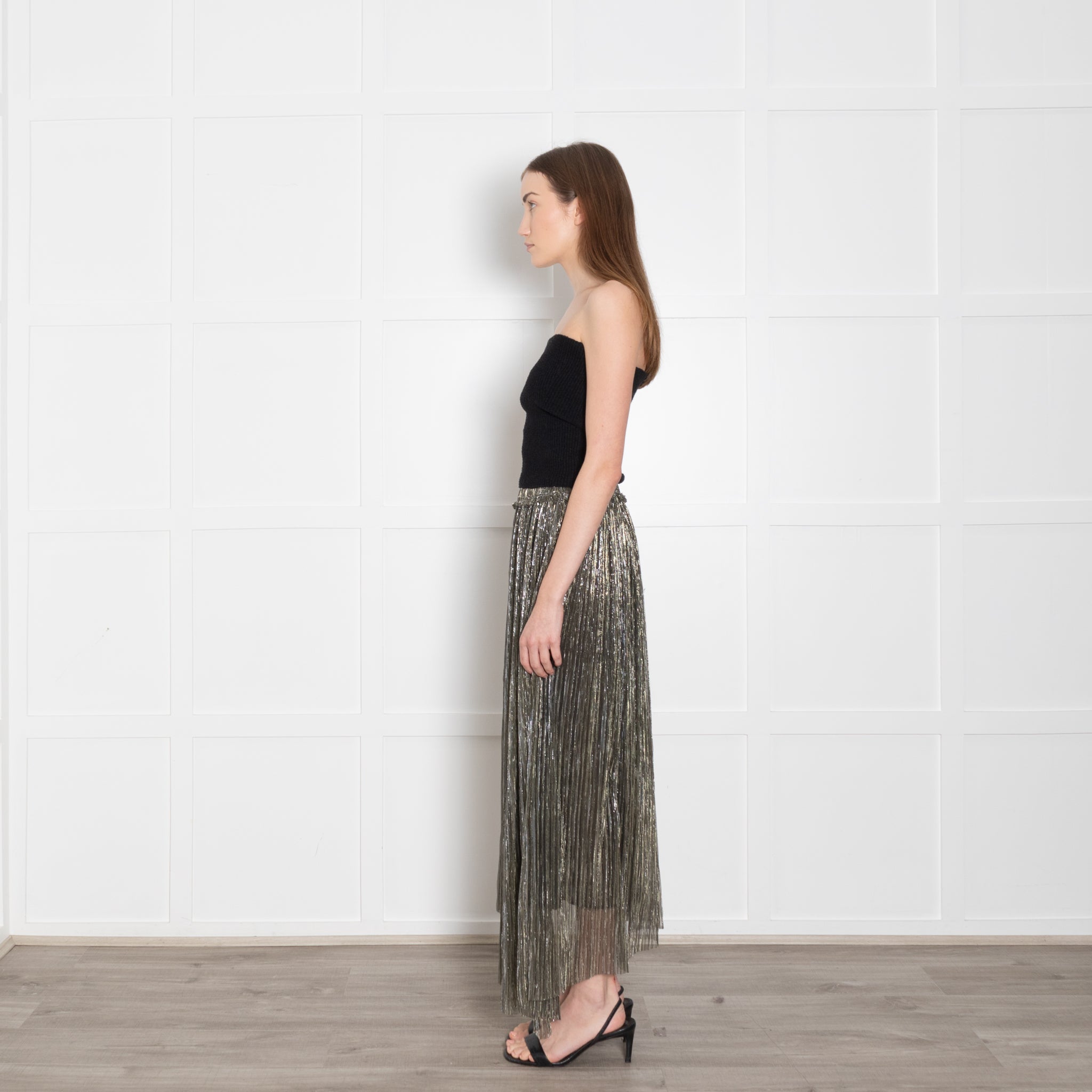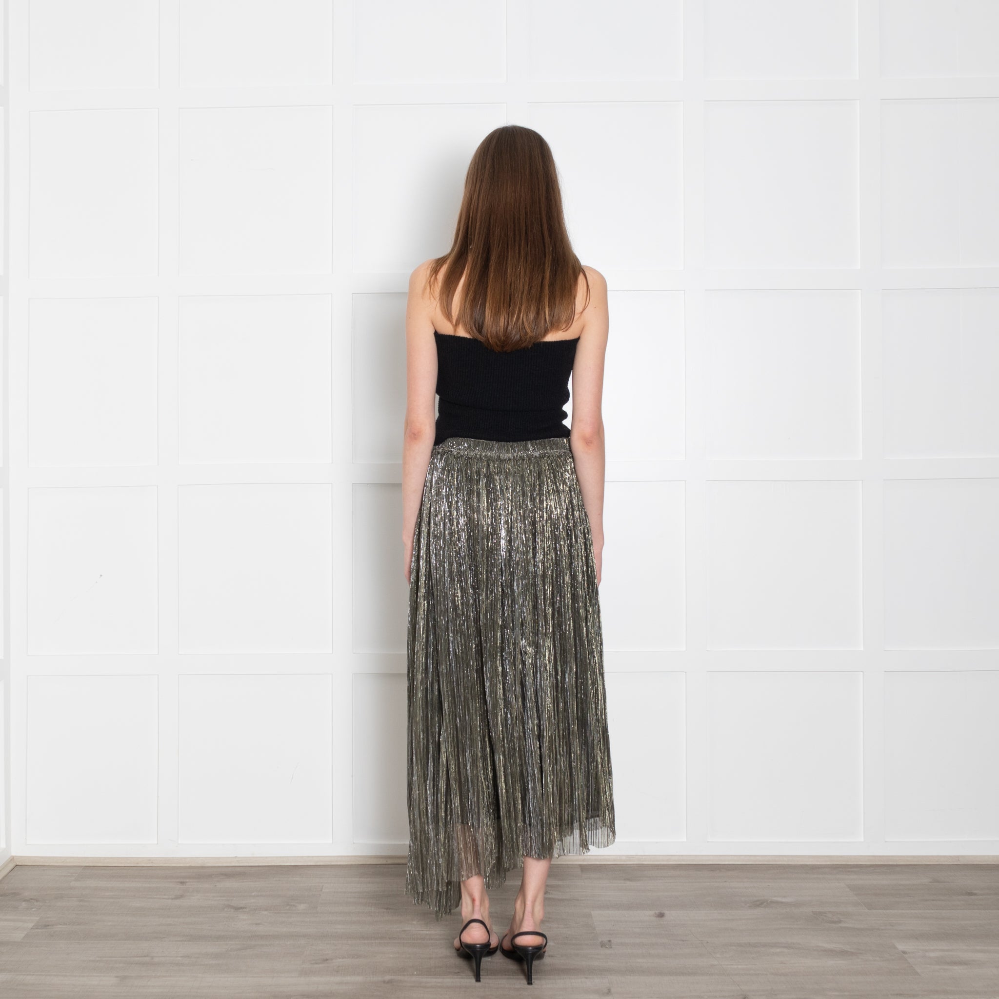 Isabel Marant Etoile silver lurex asymmetric midi length skirt featuring an elasticated waistband.