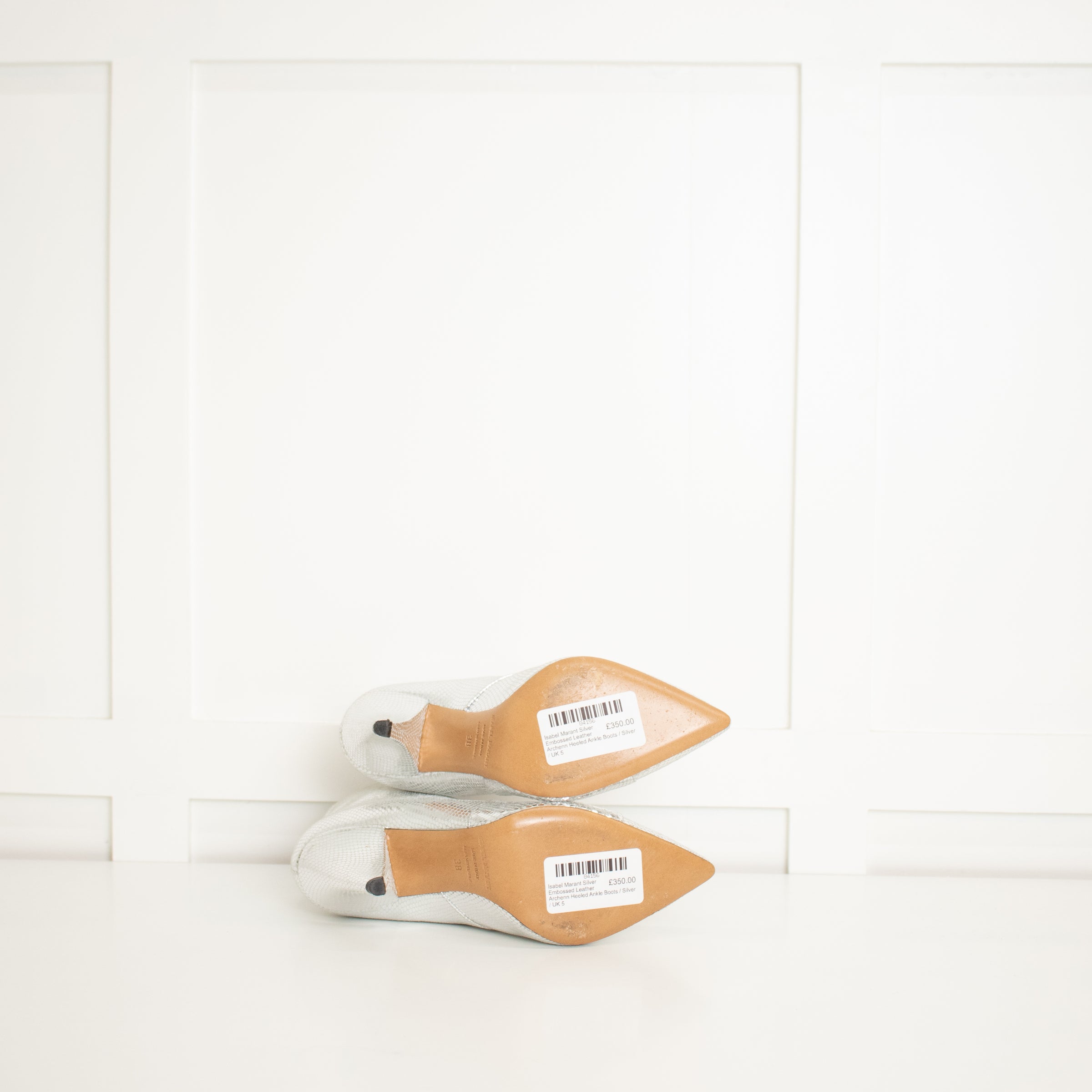 Isabel Marant Silver Embossed Leather Archenn Heeled Ankle Boots