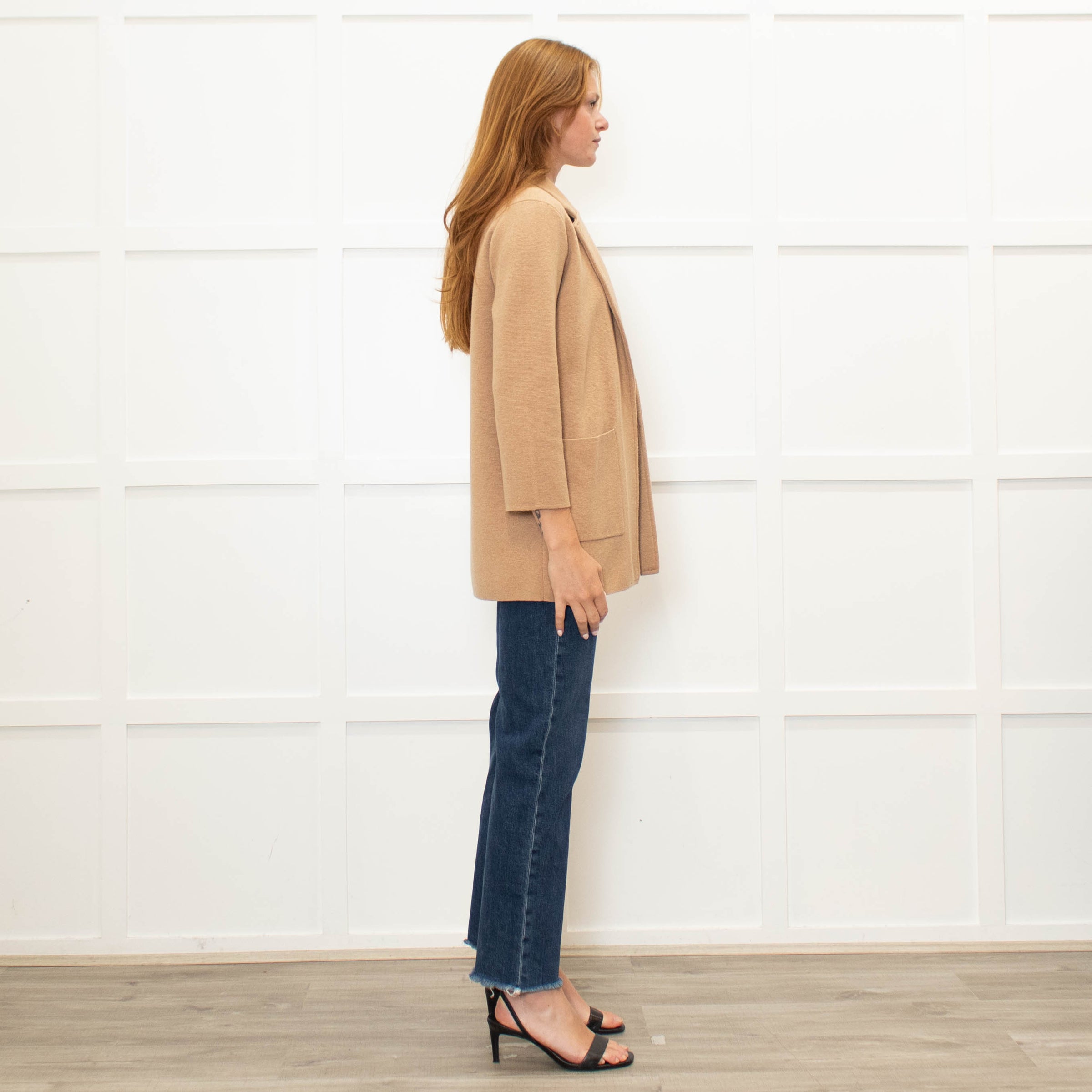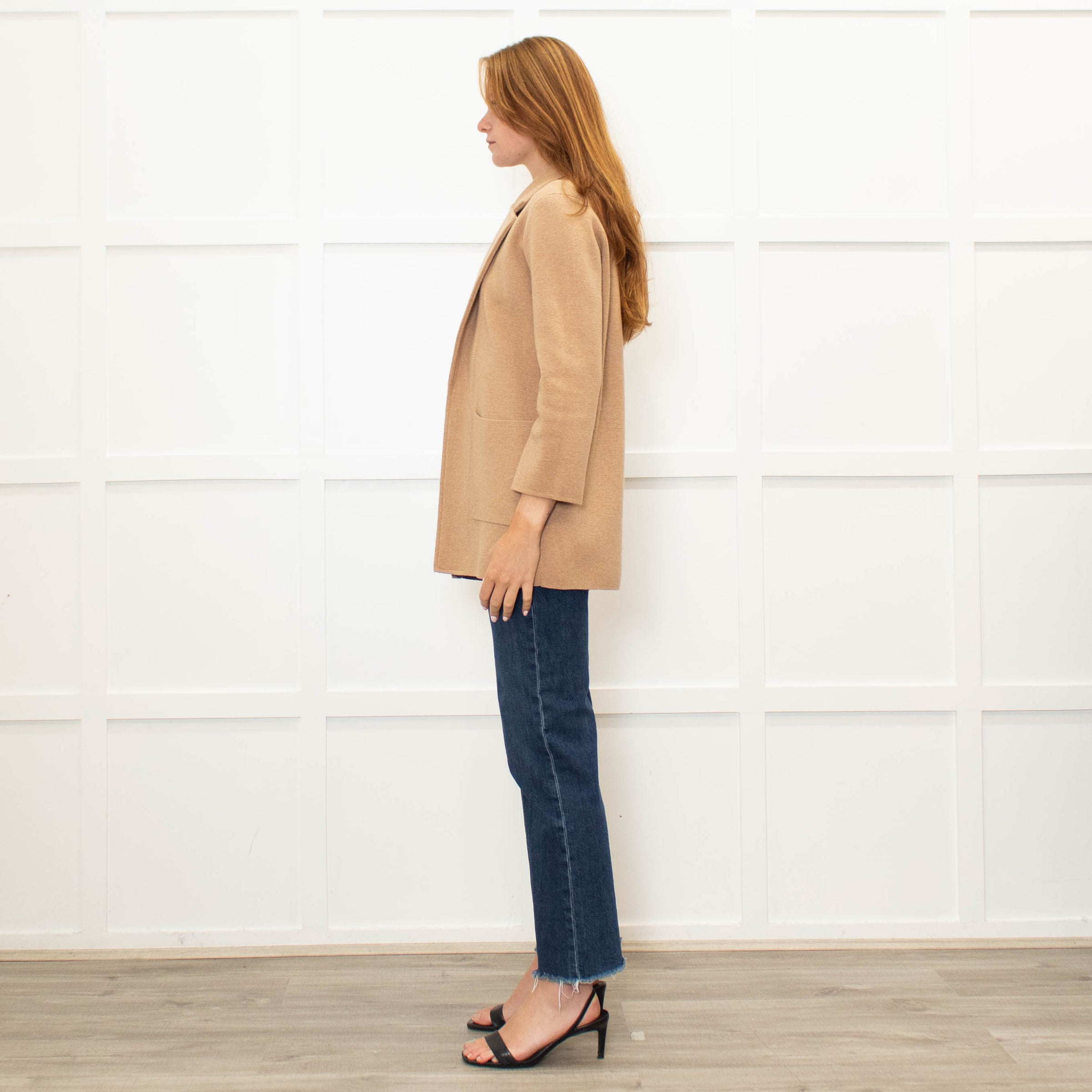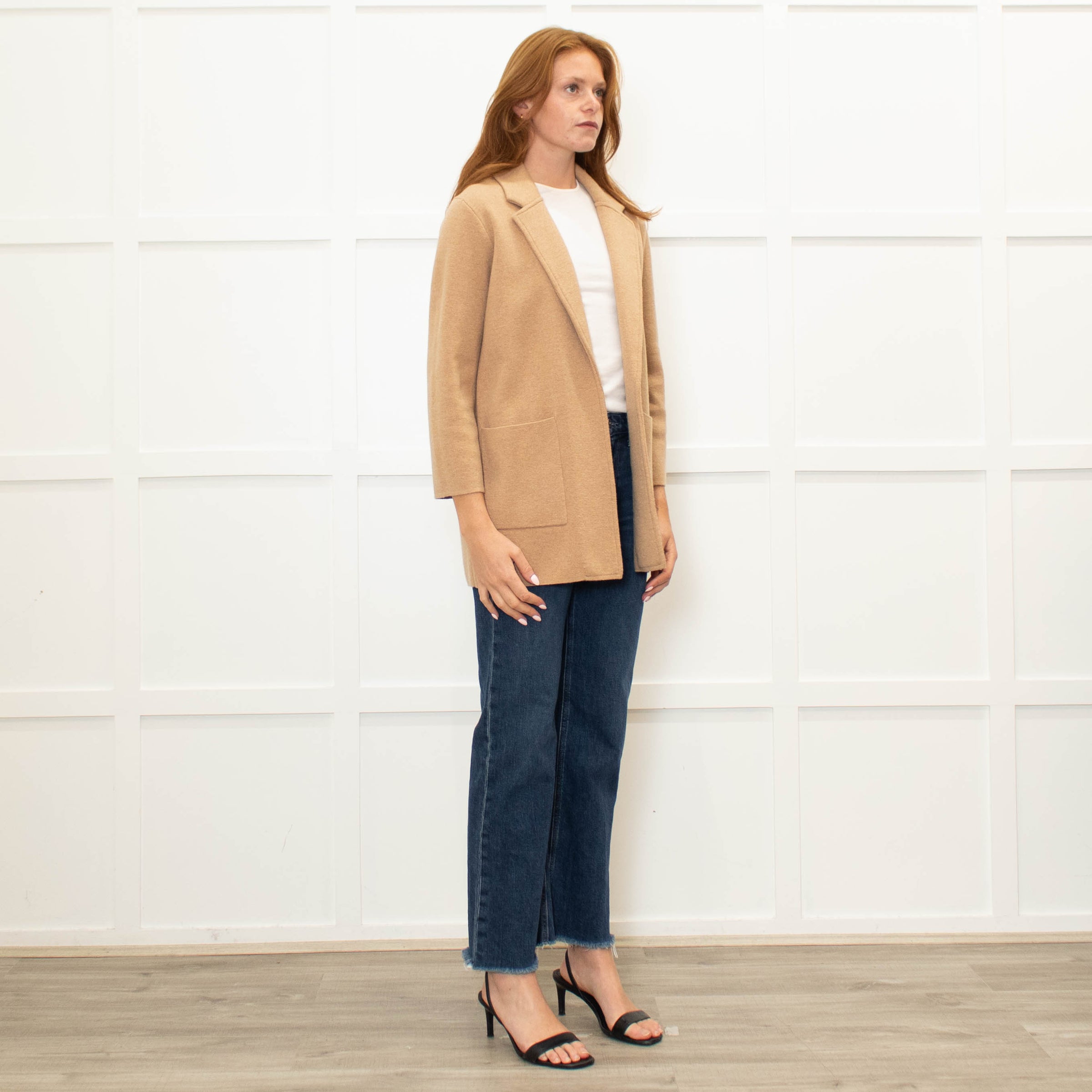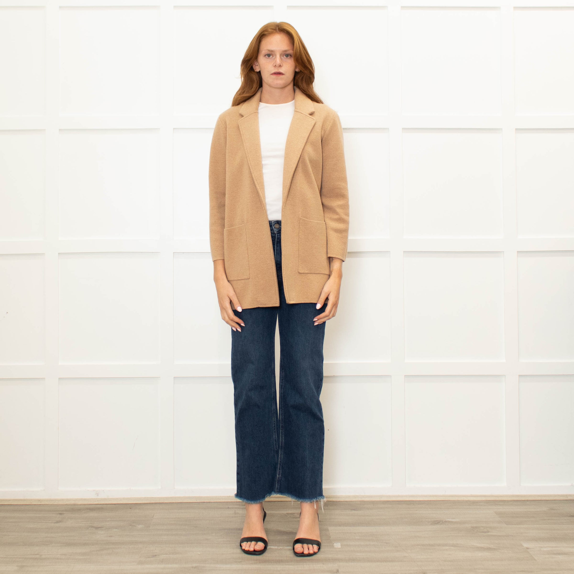 J.Crew sand knit blazer with an open front, 3/4 length sleeves and symmetrical waist pockets.
