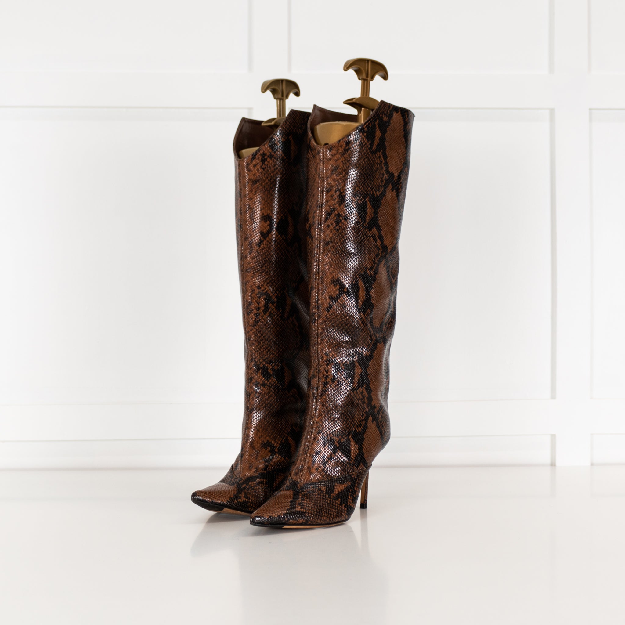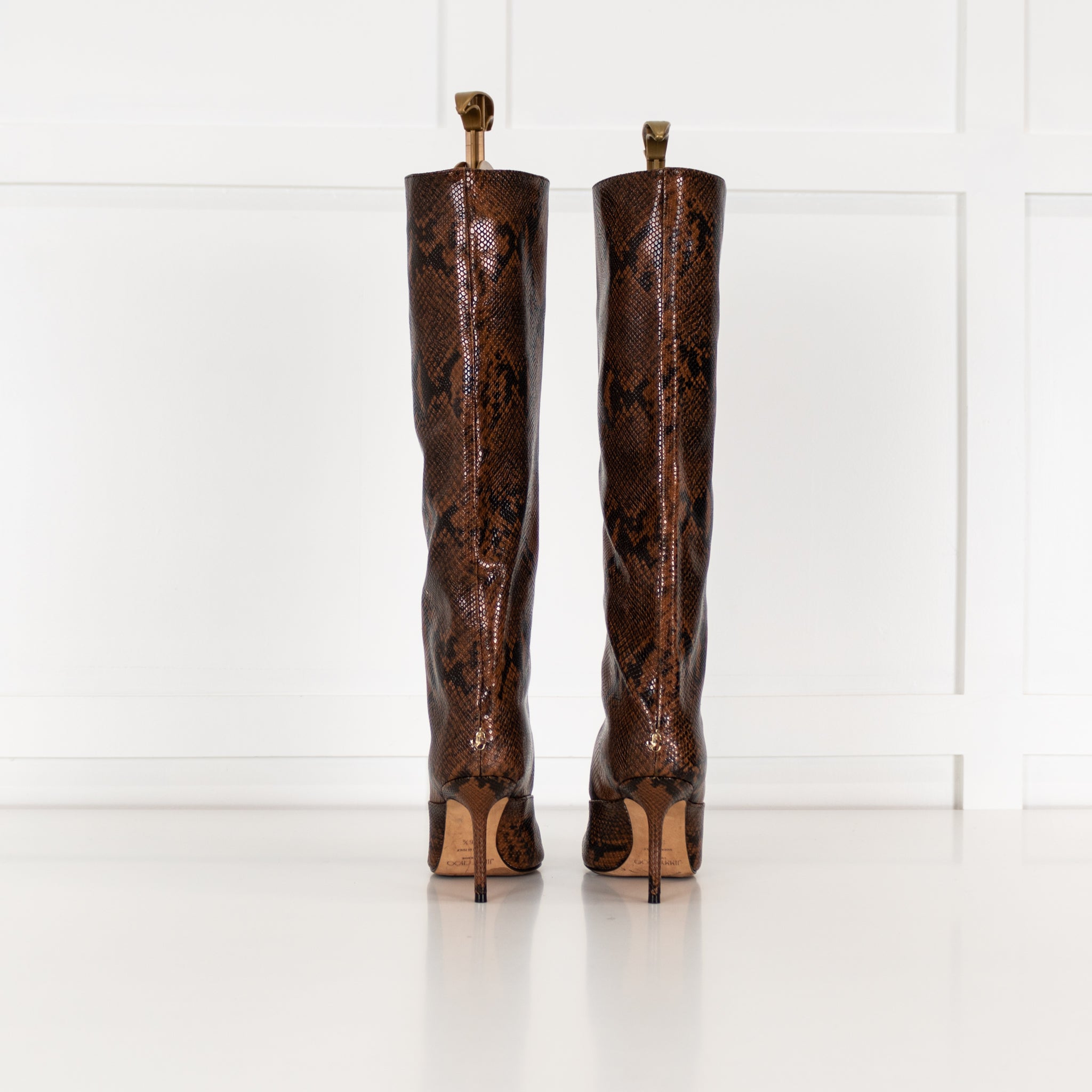 Jimmy Choo Brown Mock Snake Skin Heeled Boots
