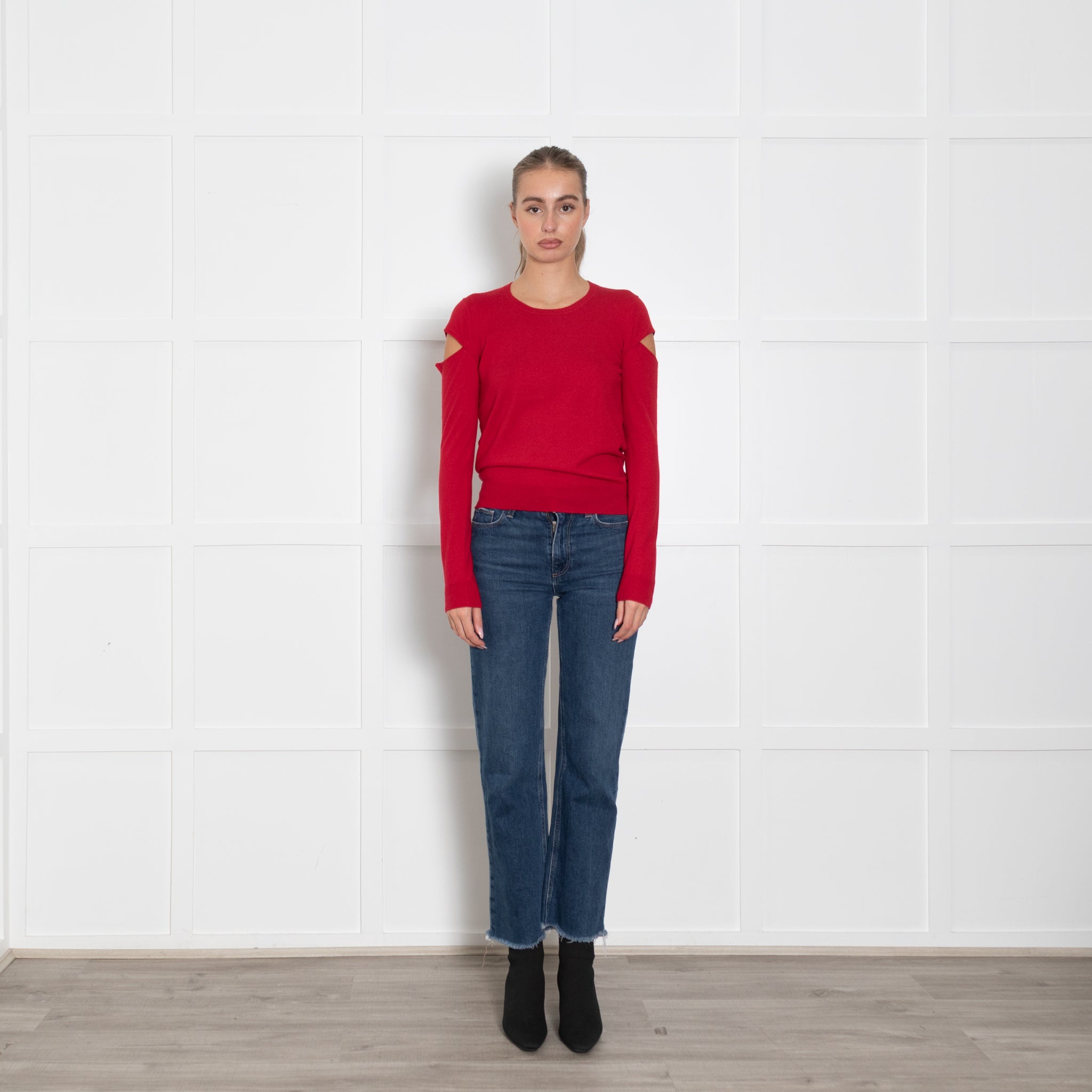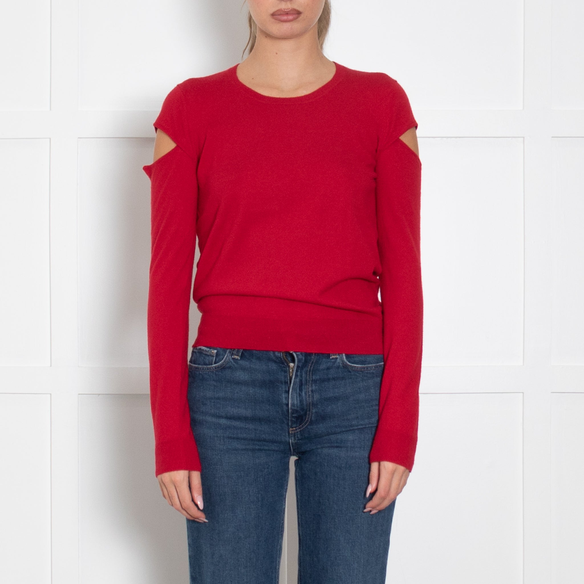 Joseph Red Cashmere Split Shoulder Jumper