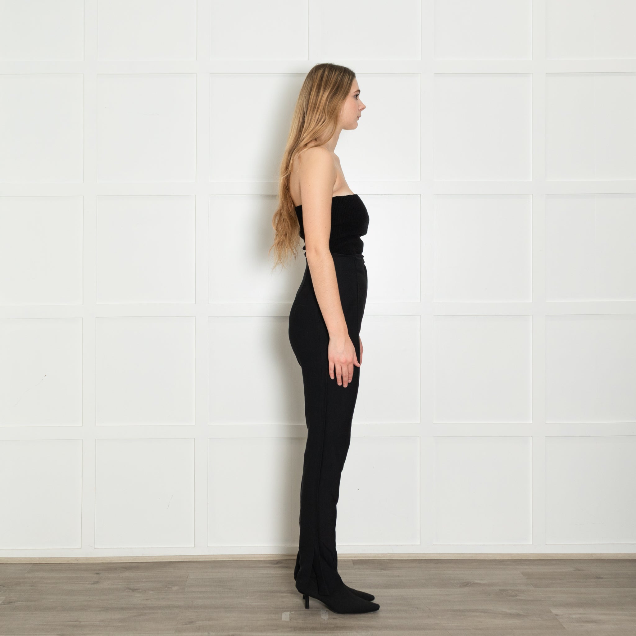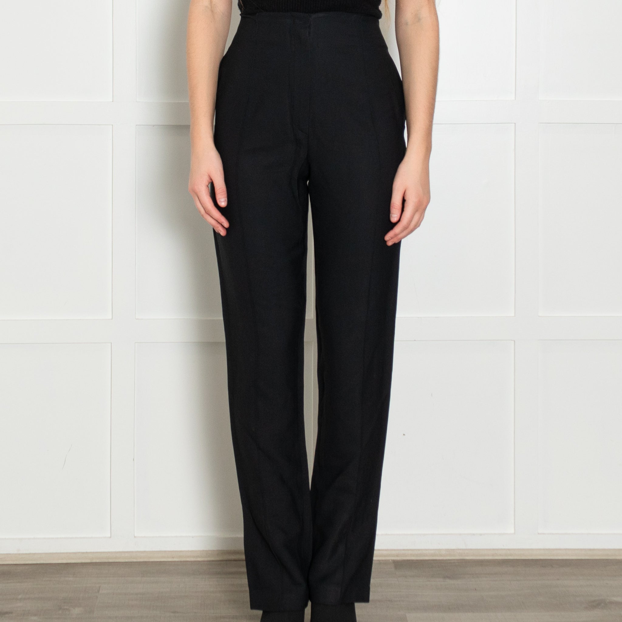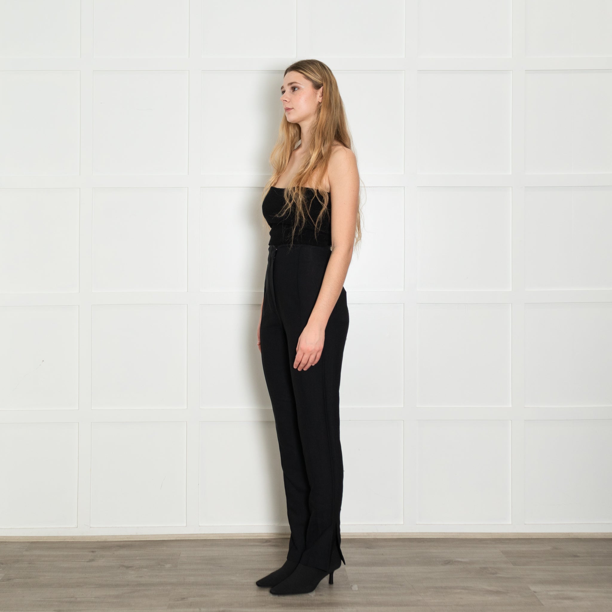 Khaite black tailored straight-leg trousers, featuring a stunning smart back split detail design, with a front zip closure, and a metal clasp.