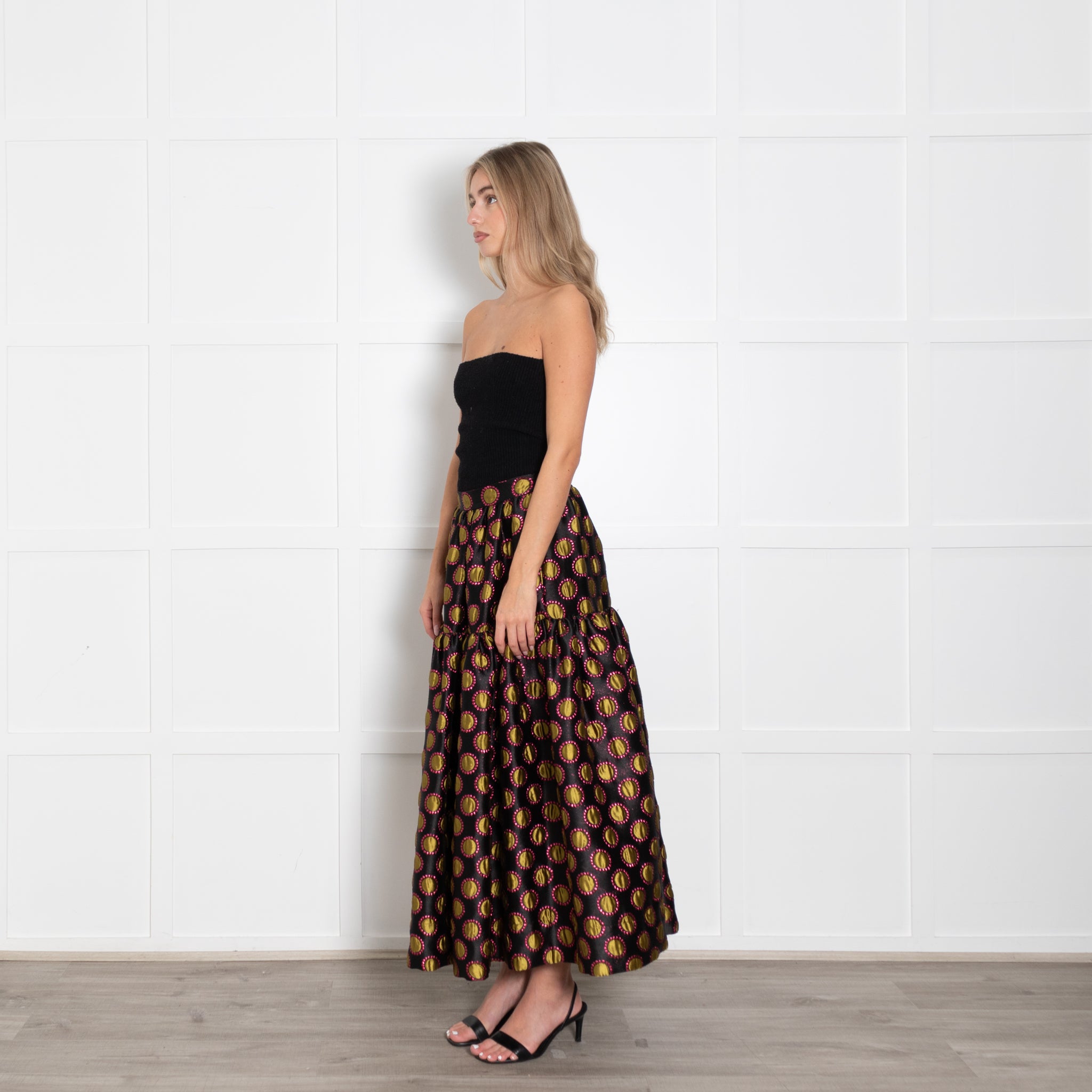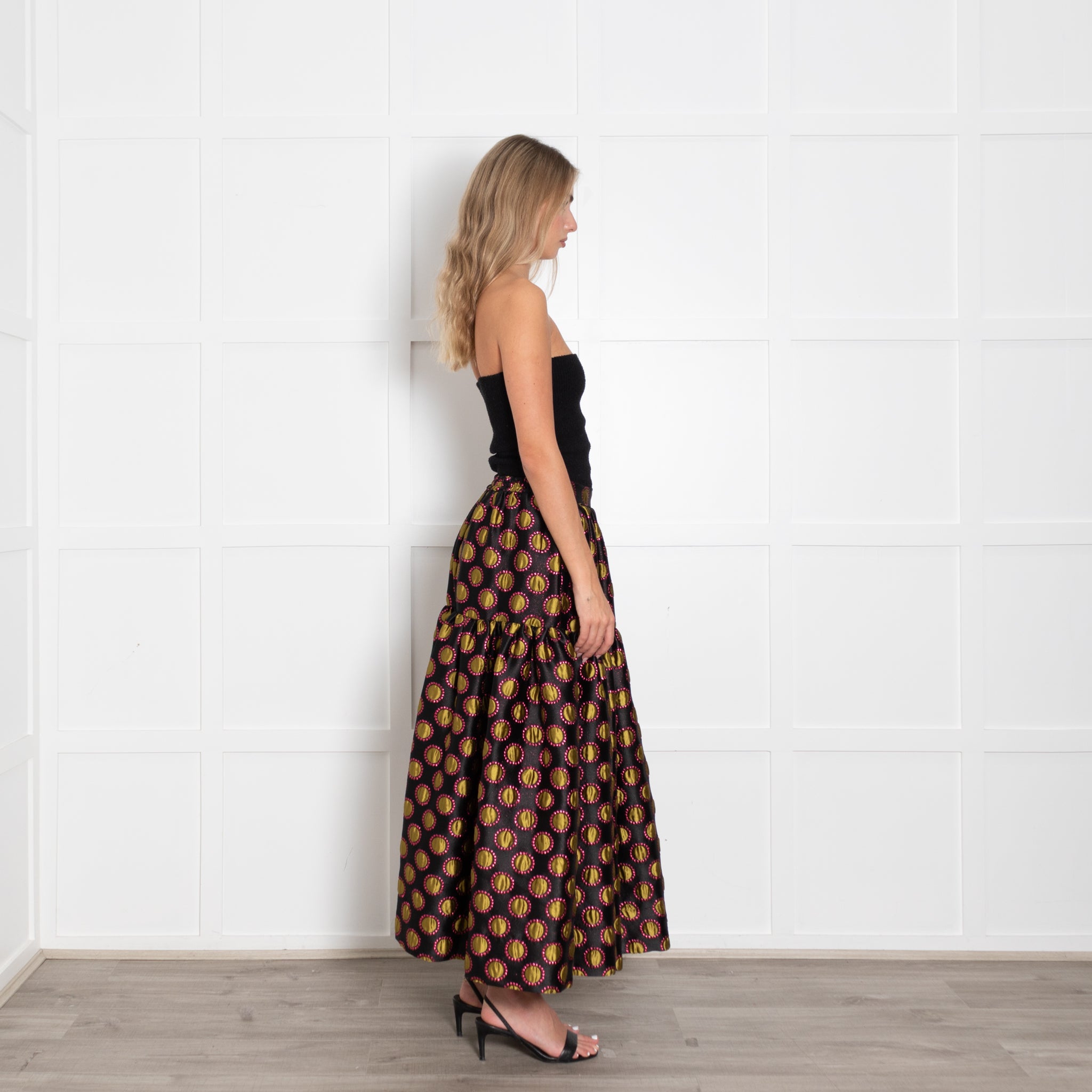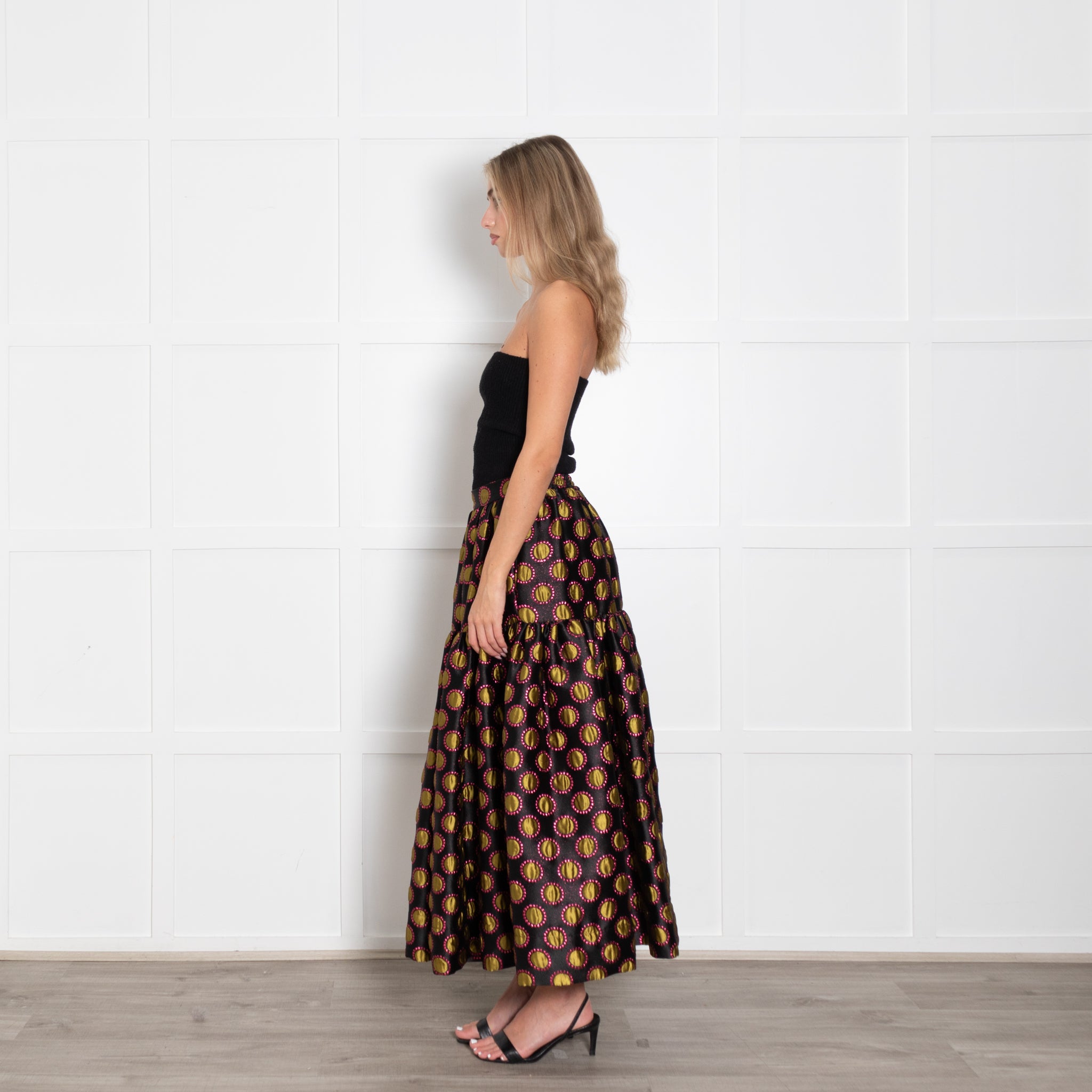 La Double J black winter sun jacquard full skirt with elasticated waist.