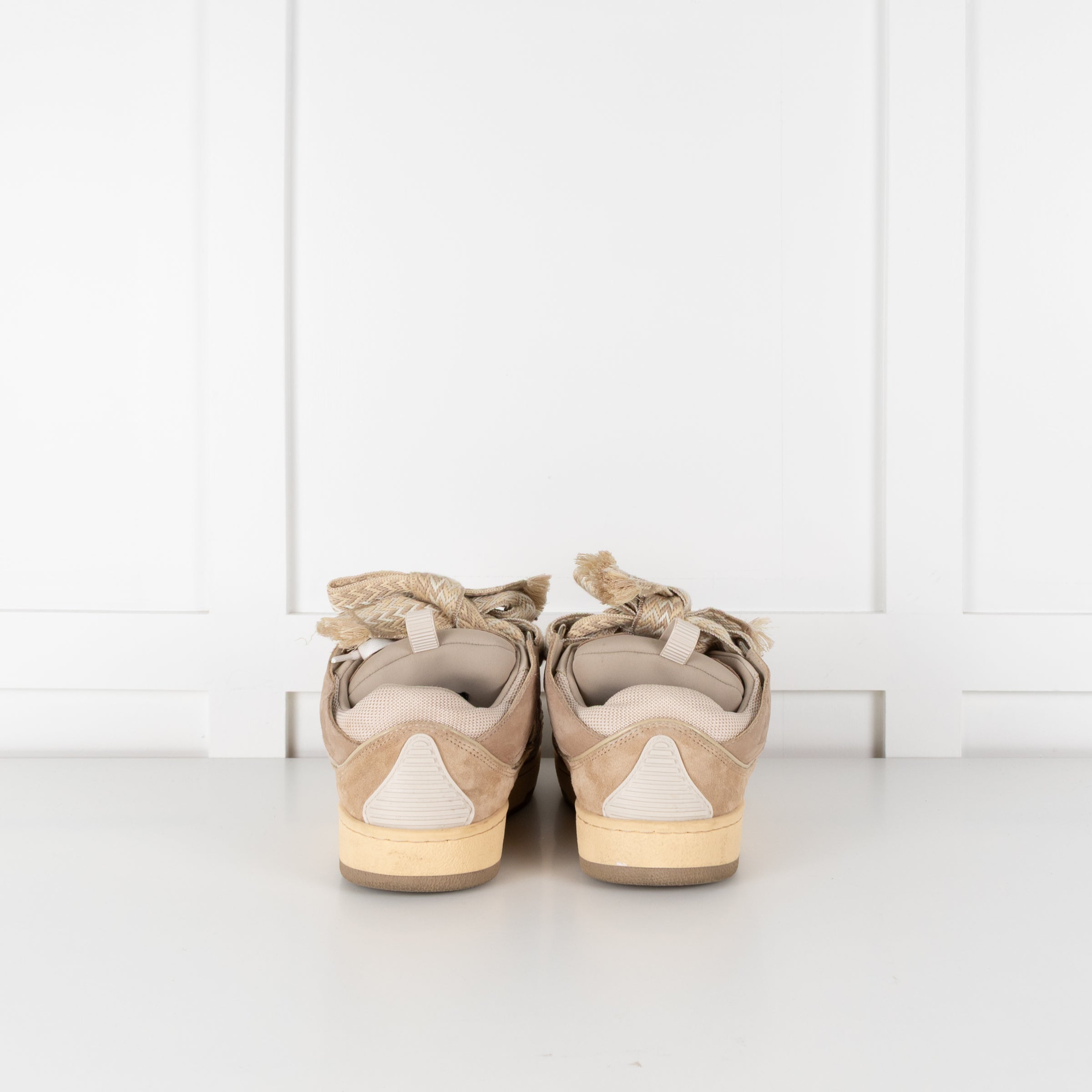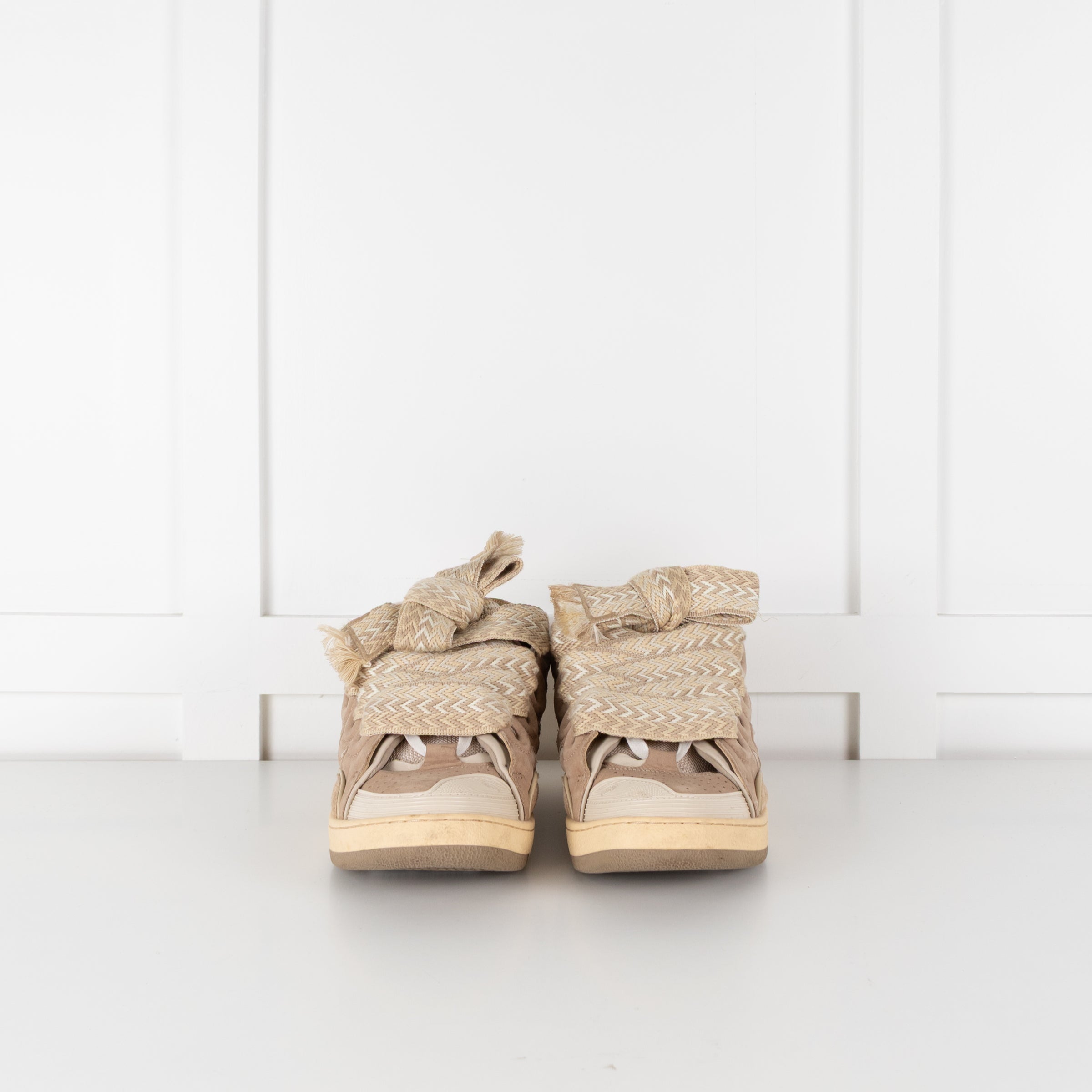 Lanvin beige curb sneakers with a rounded toe, double herringbone woven laces, and a rubber sole. RRP £770.