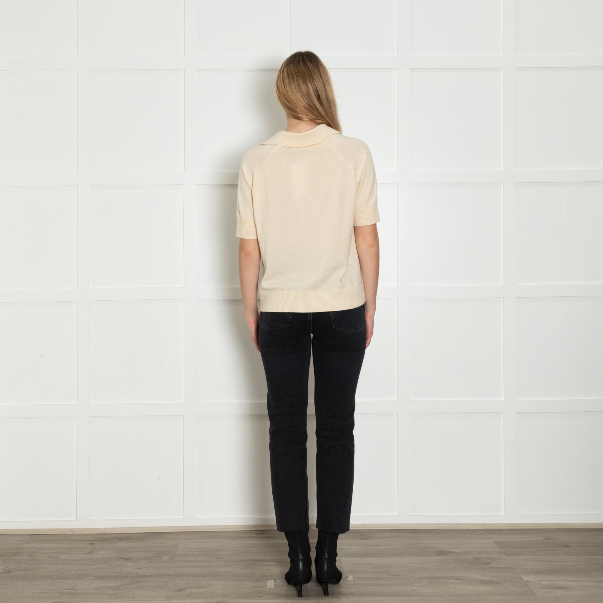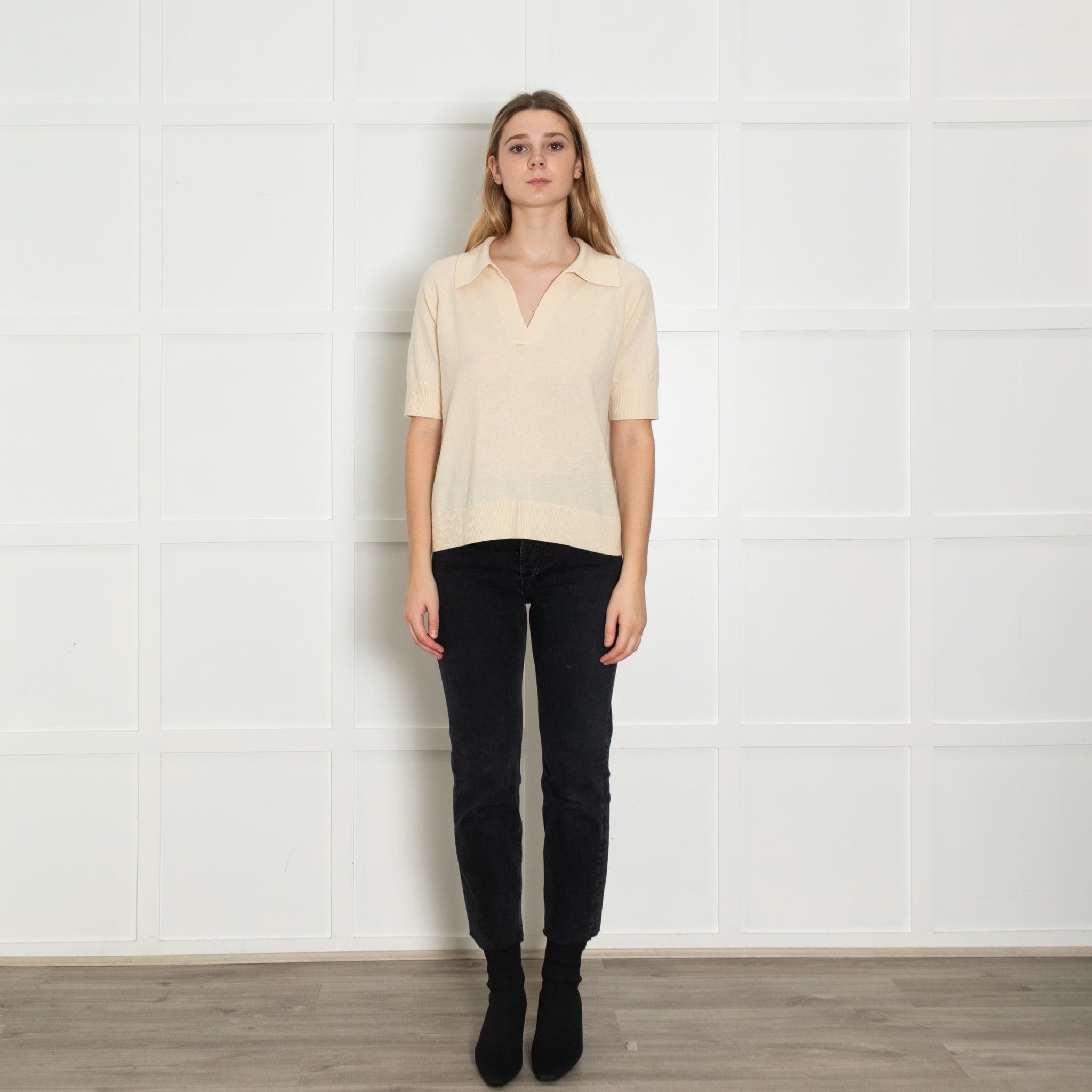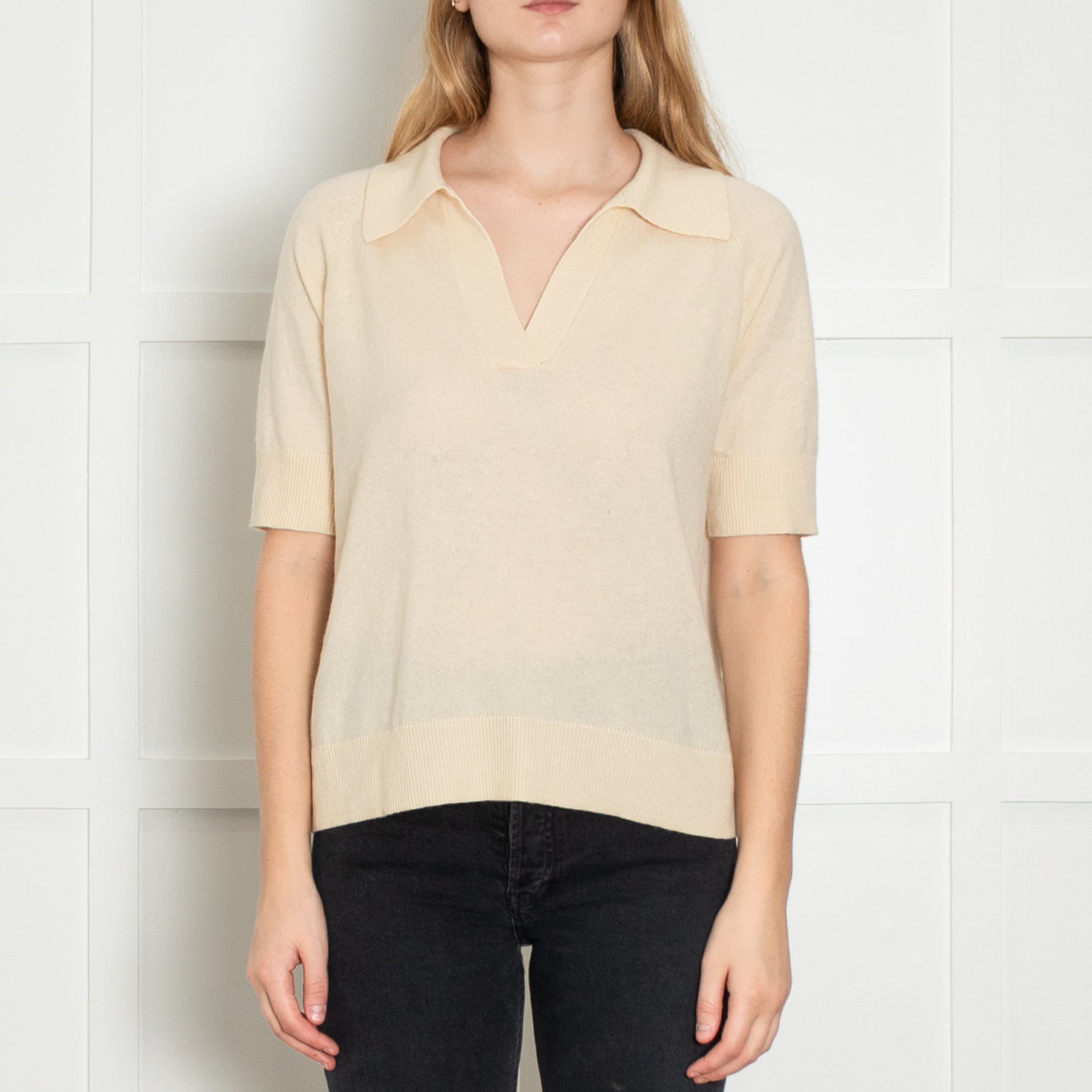 Levete Room Cream Wool Blend Short Sleeve V Neck Jumper