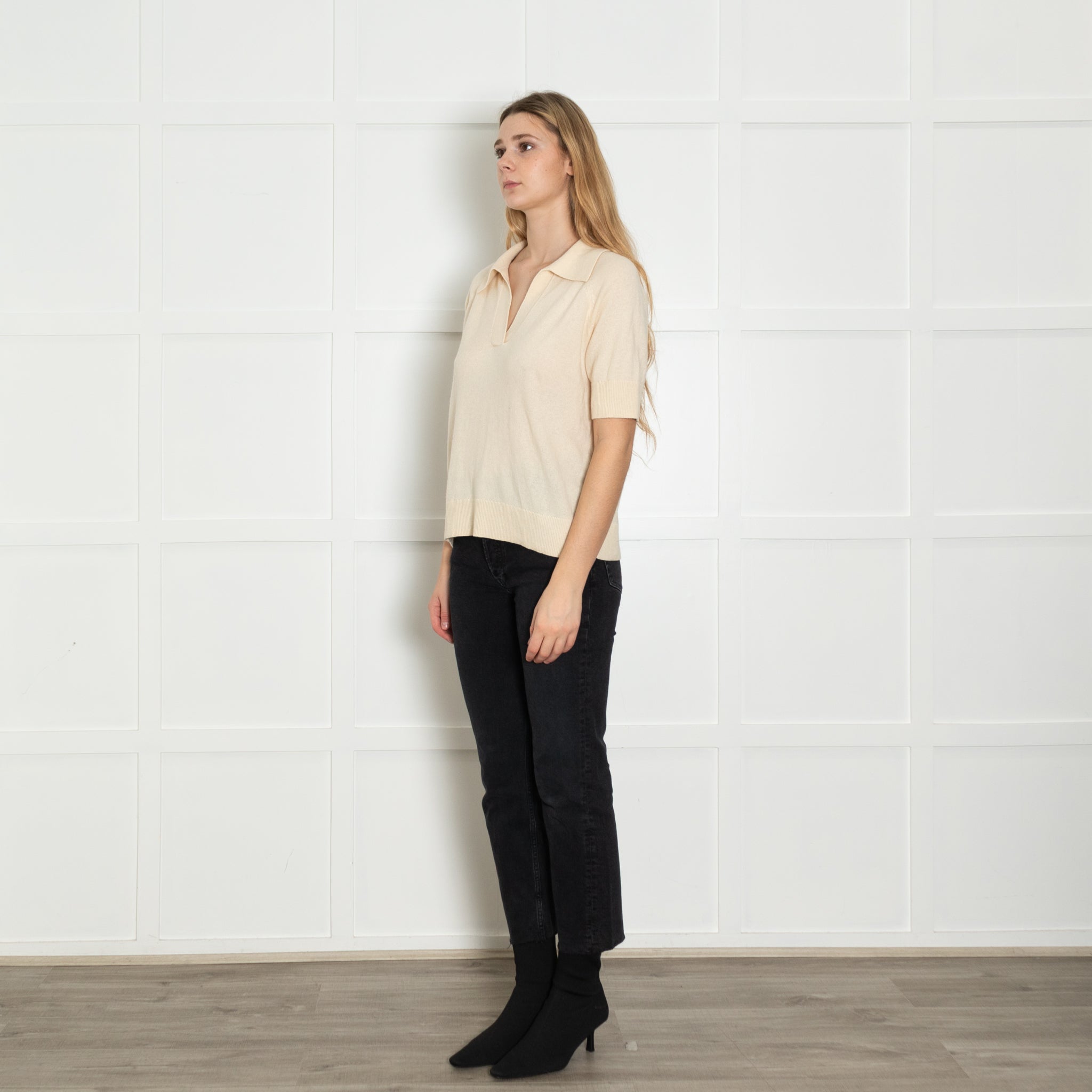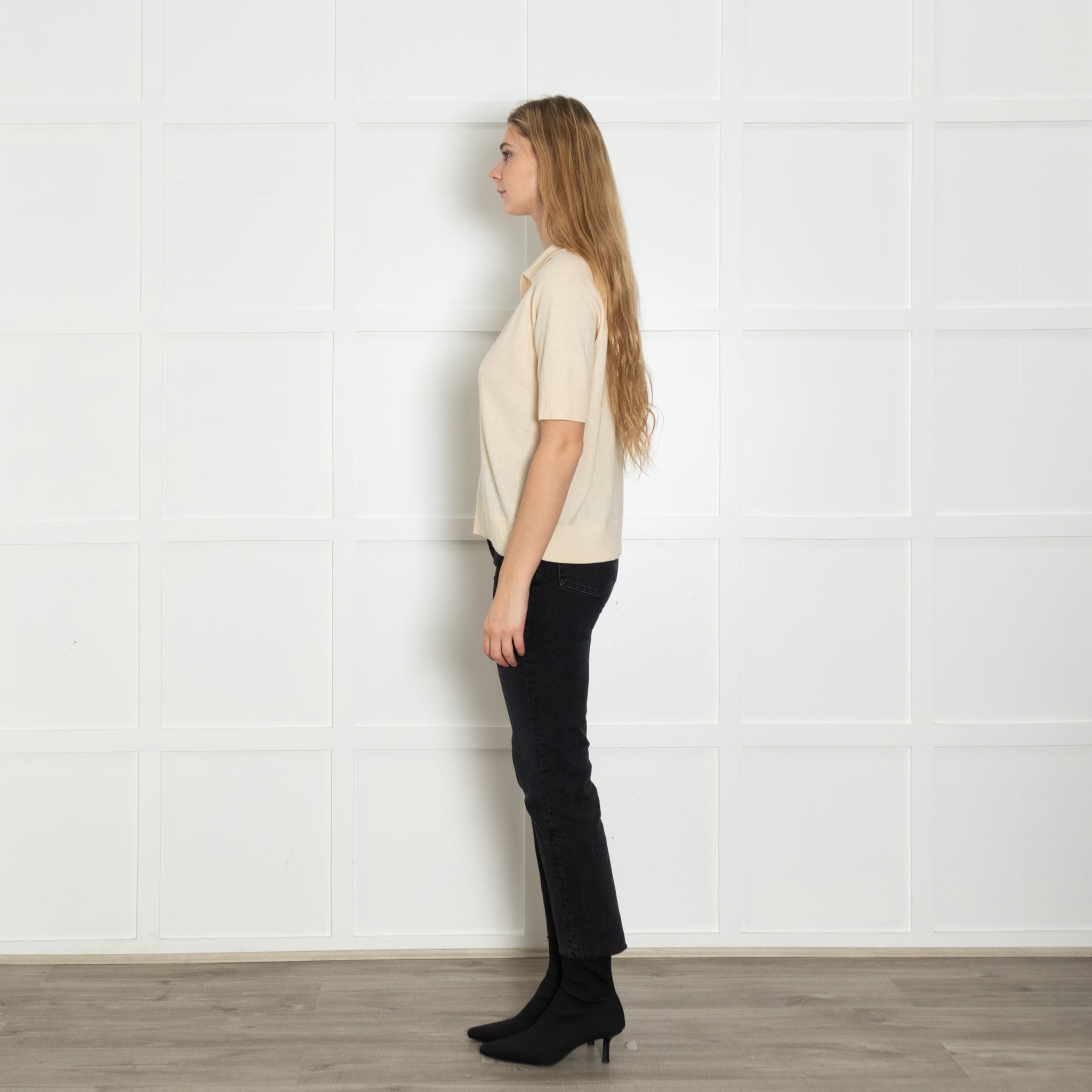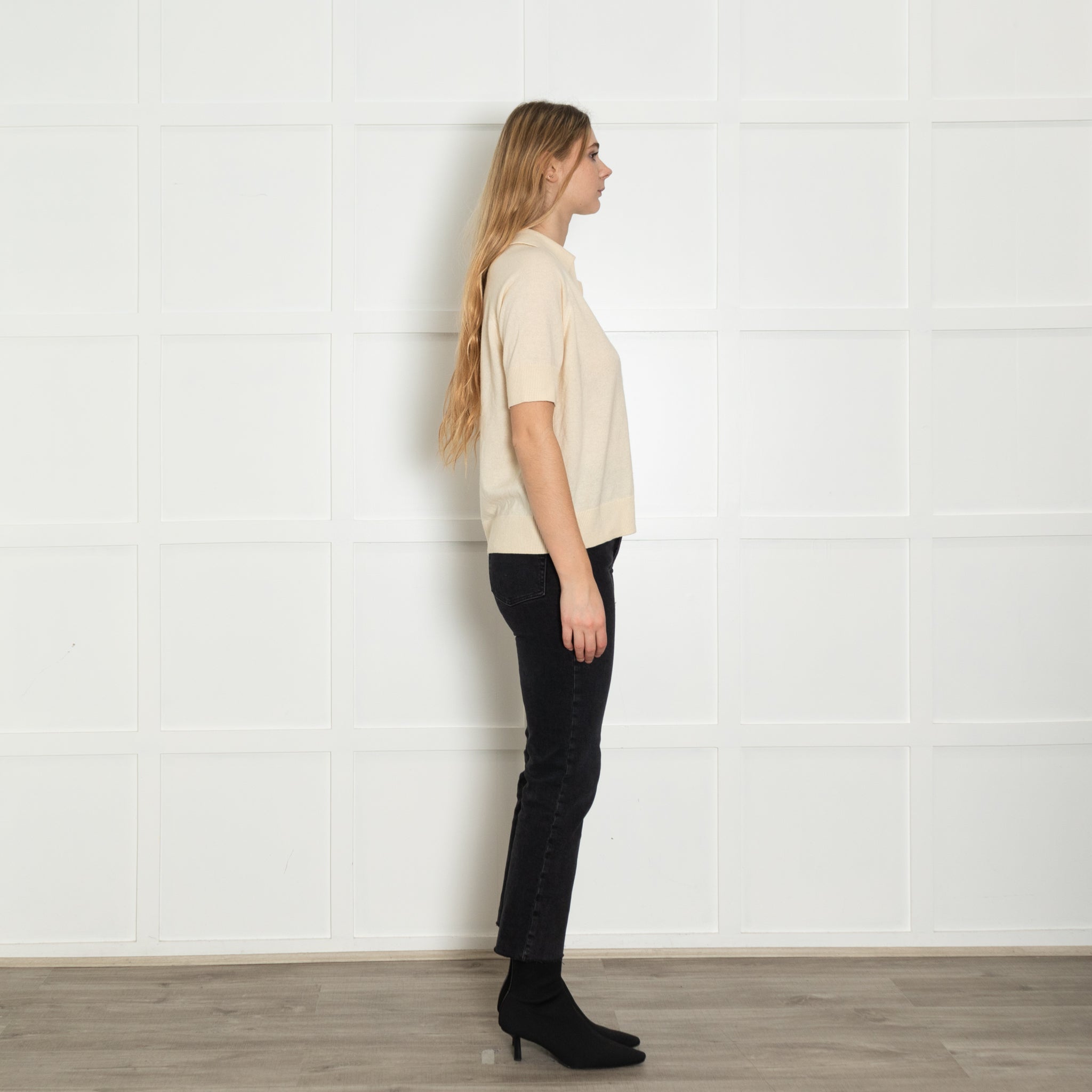 Levete Room Cream Wool Blend Short Sleeve V Neck Jumper