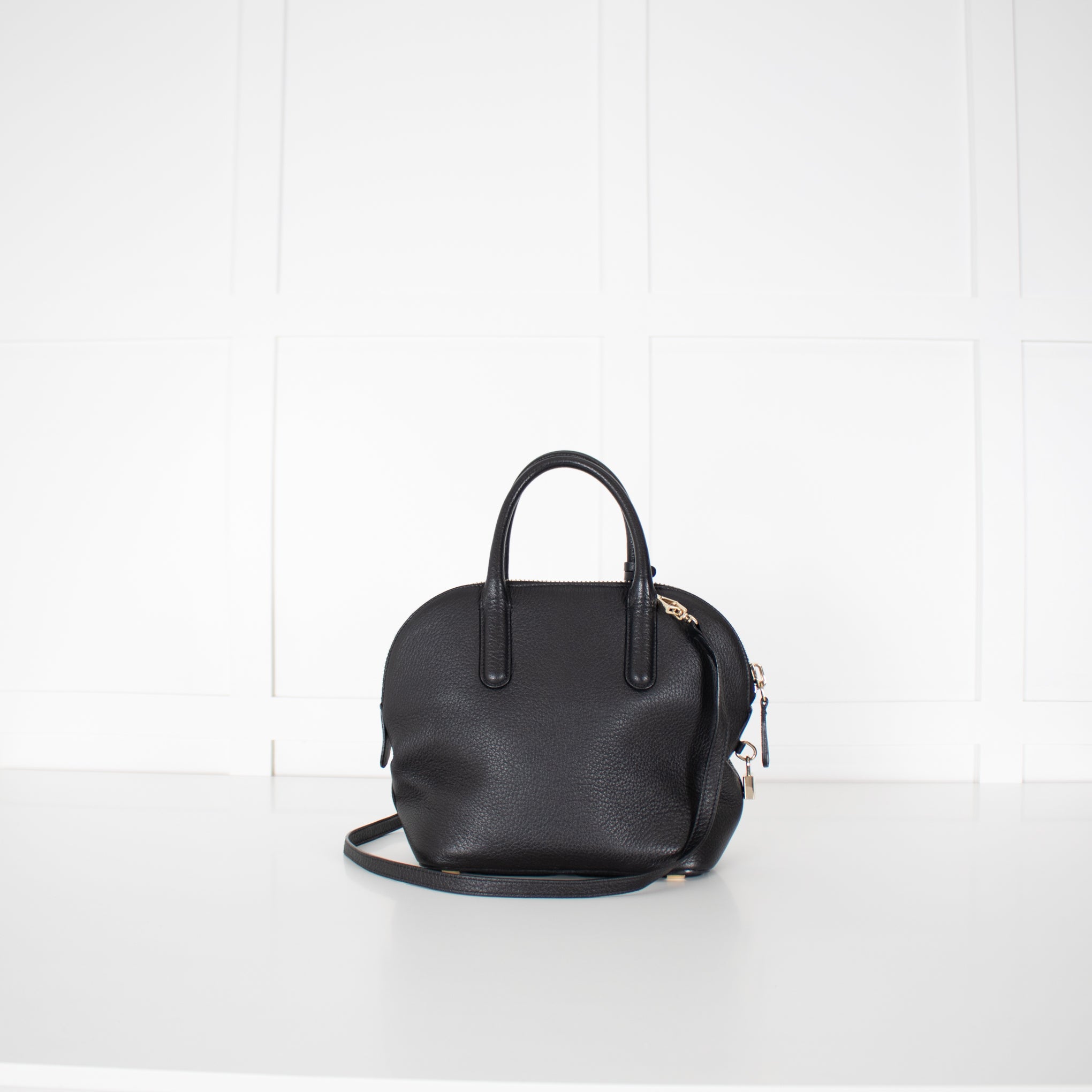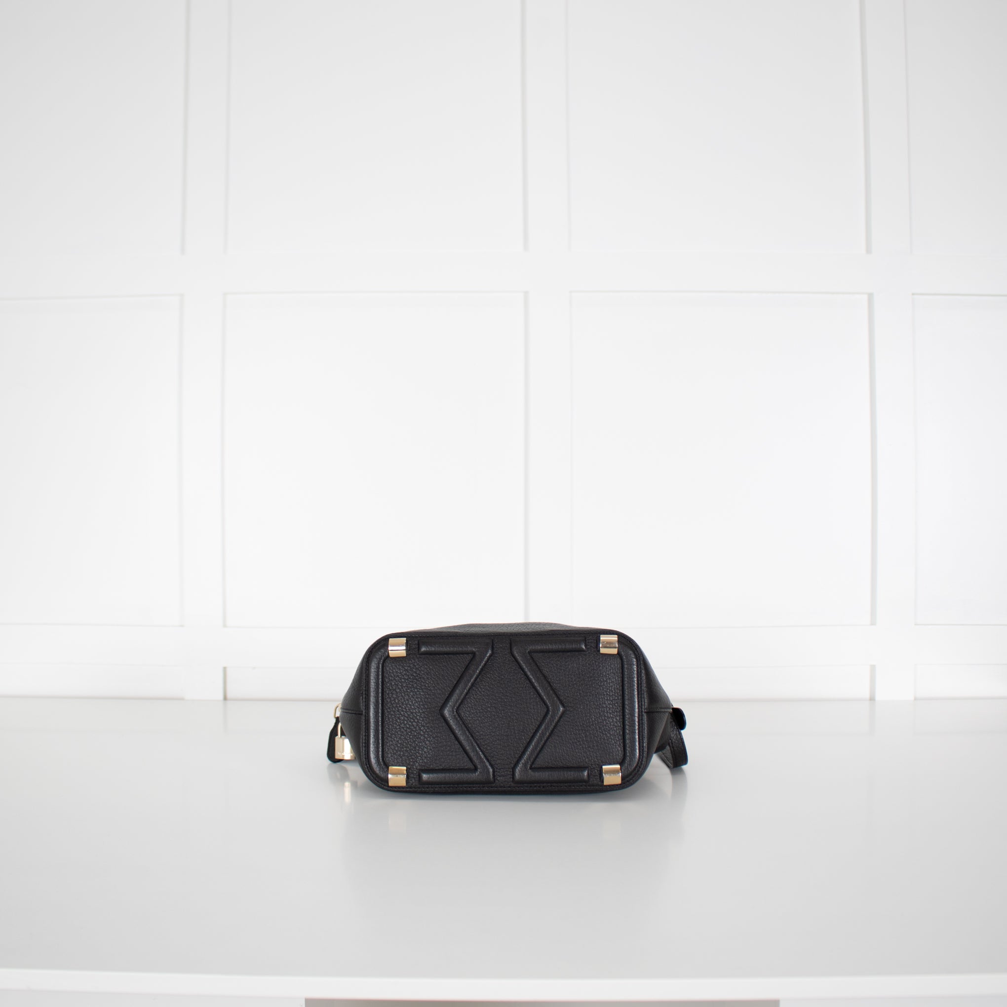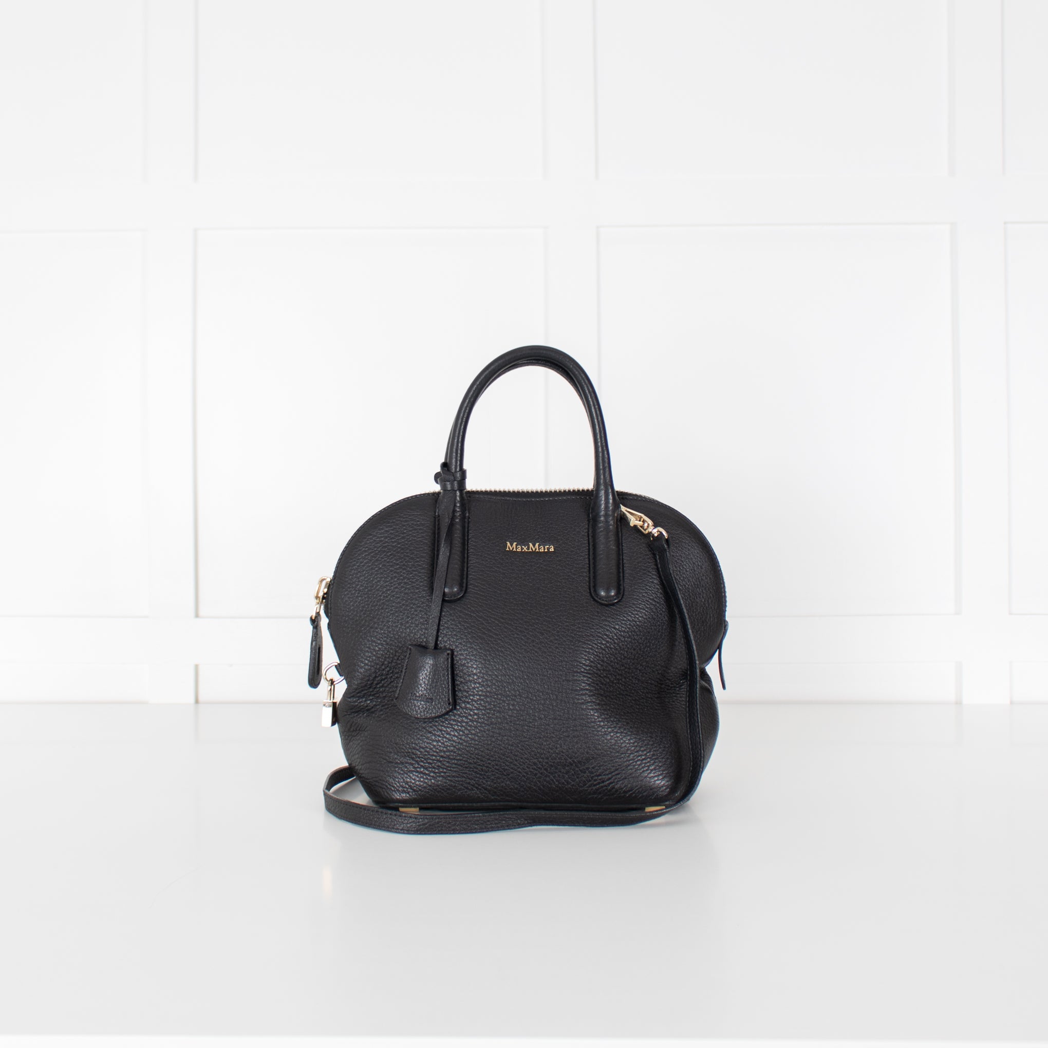 Max Mara black grainy leather shoulder bag with a structured silhouette and dual top handles. Designed with a spacious interior and subtle gold-tone hardware.