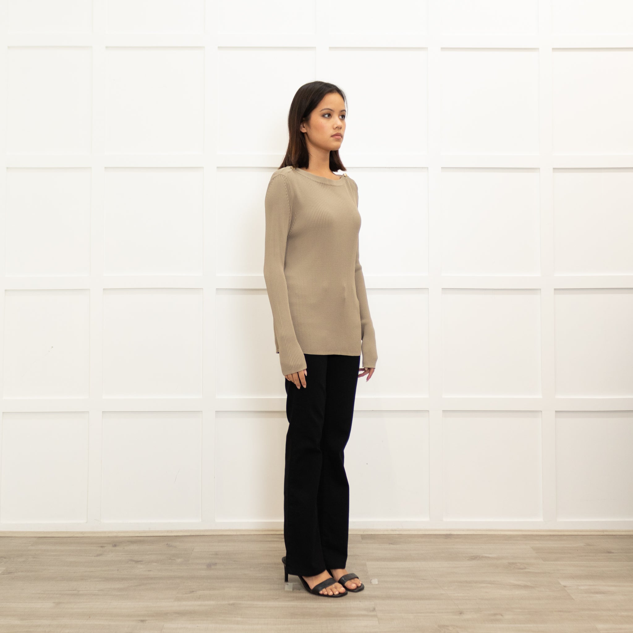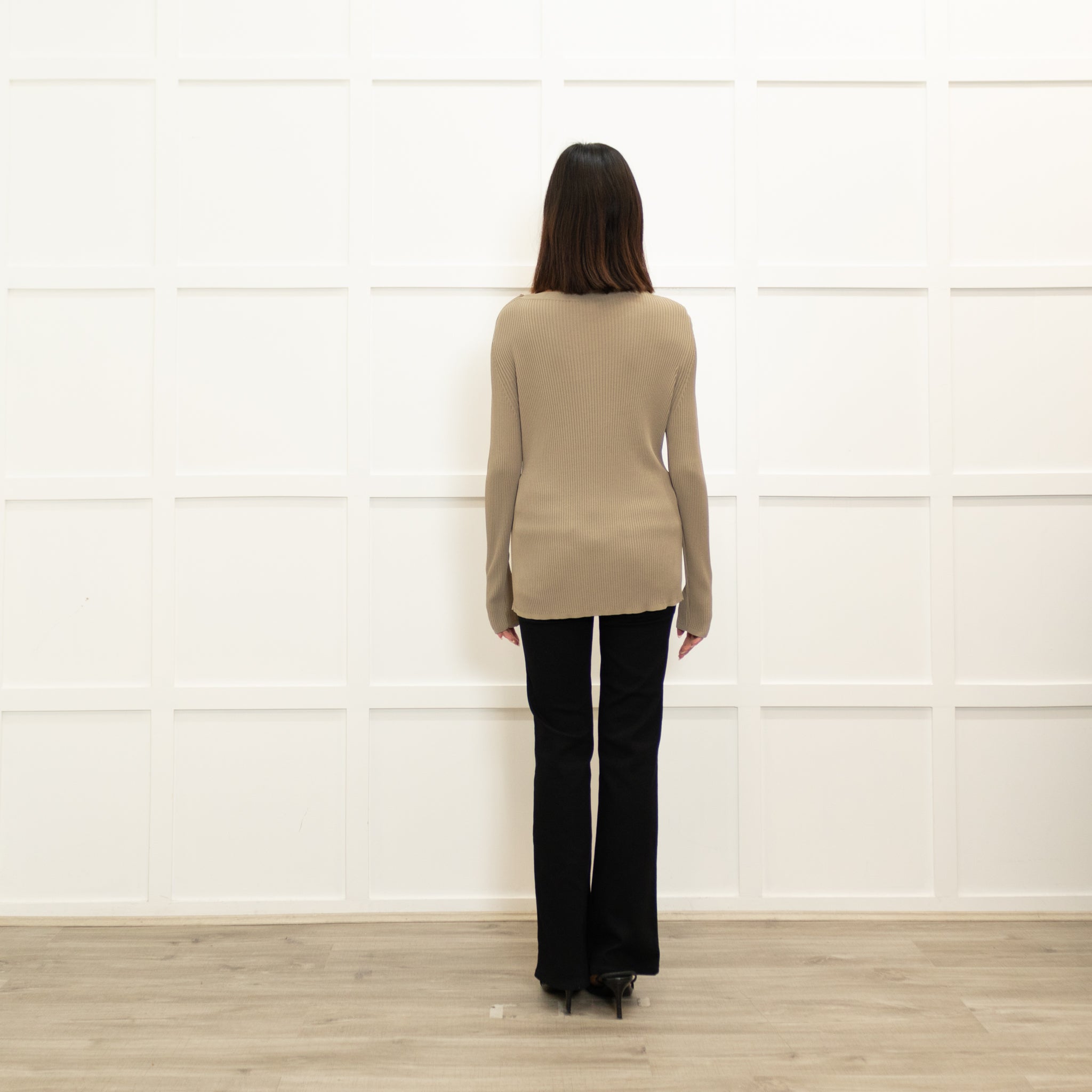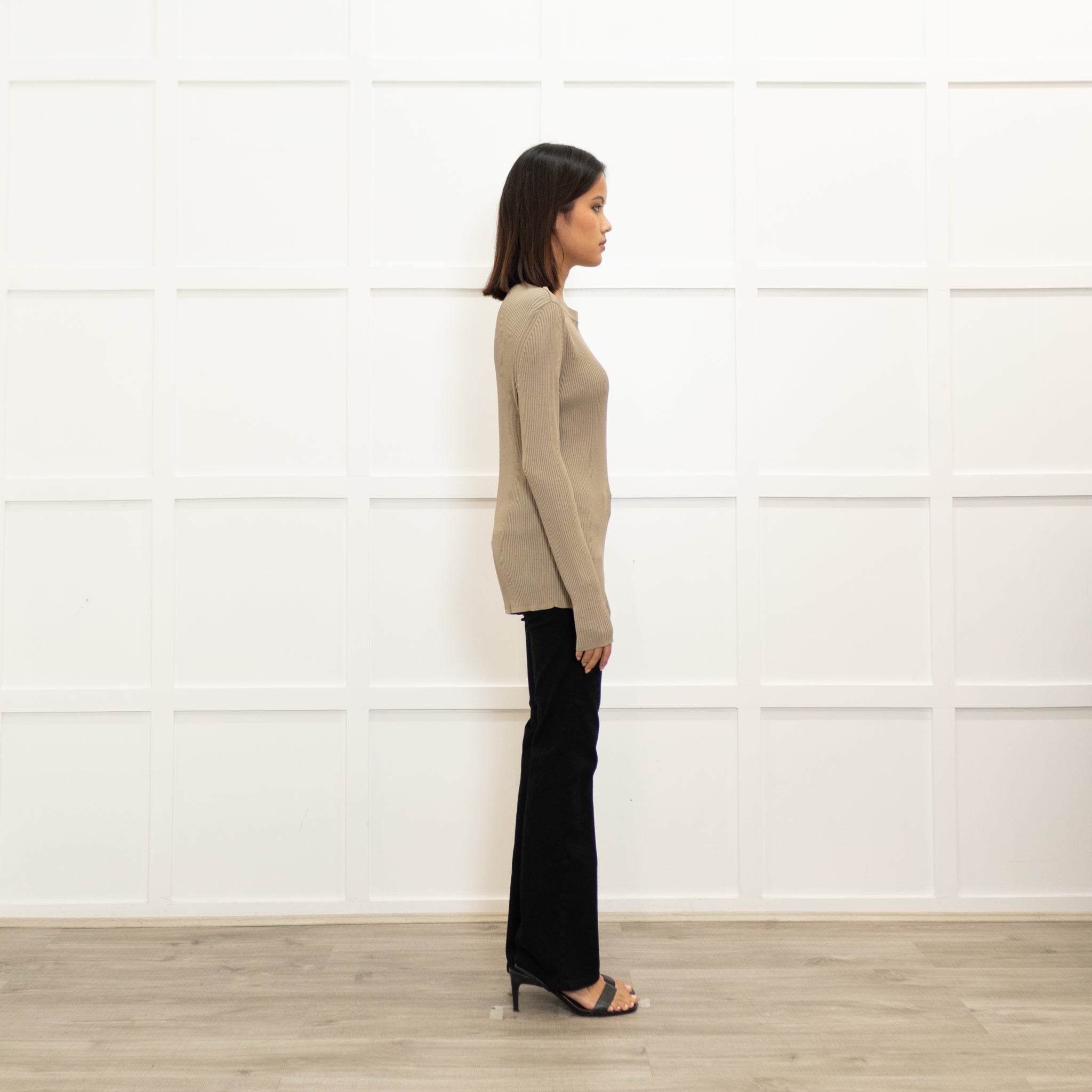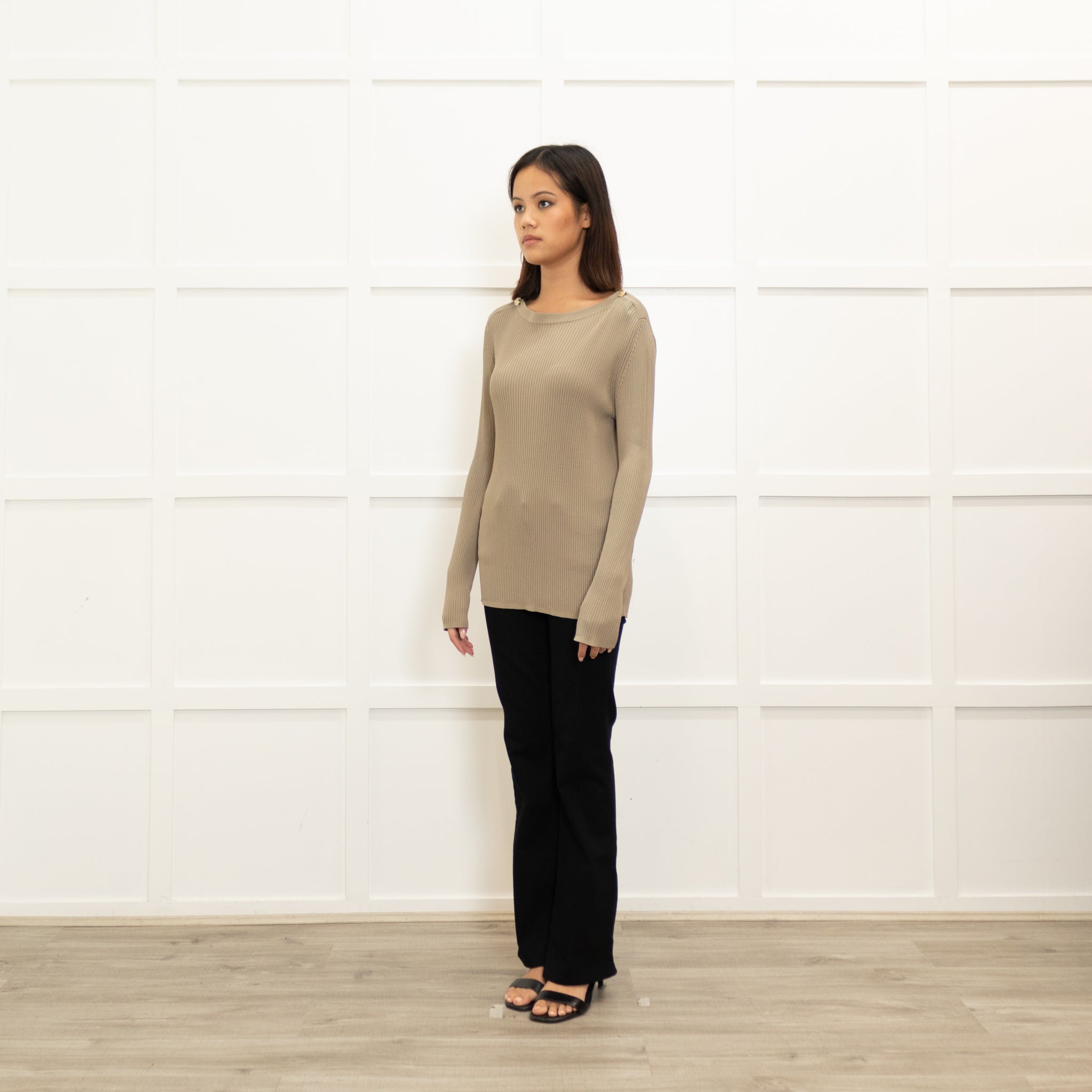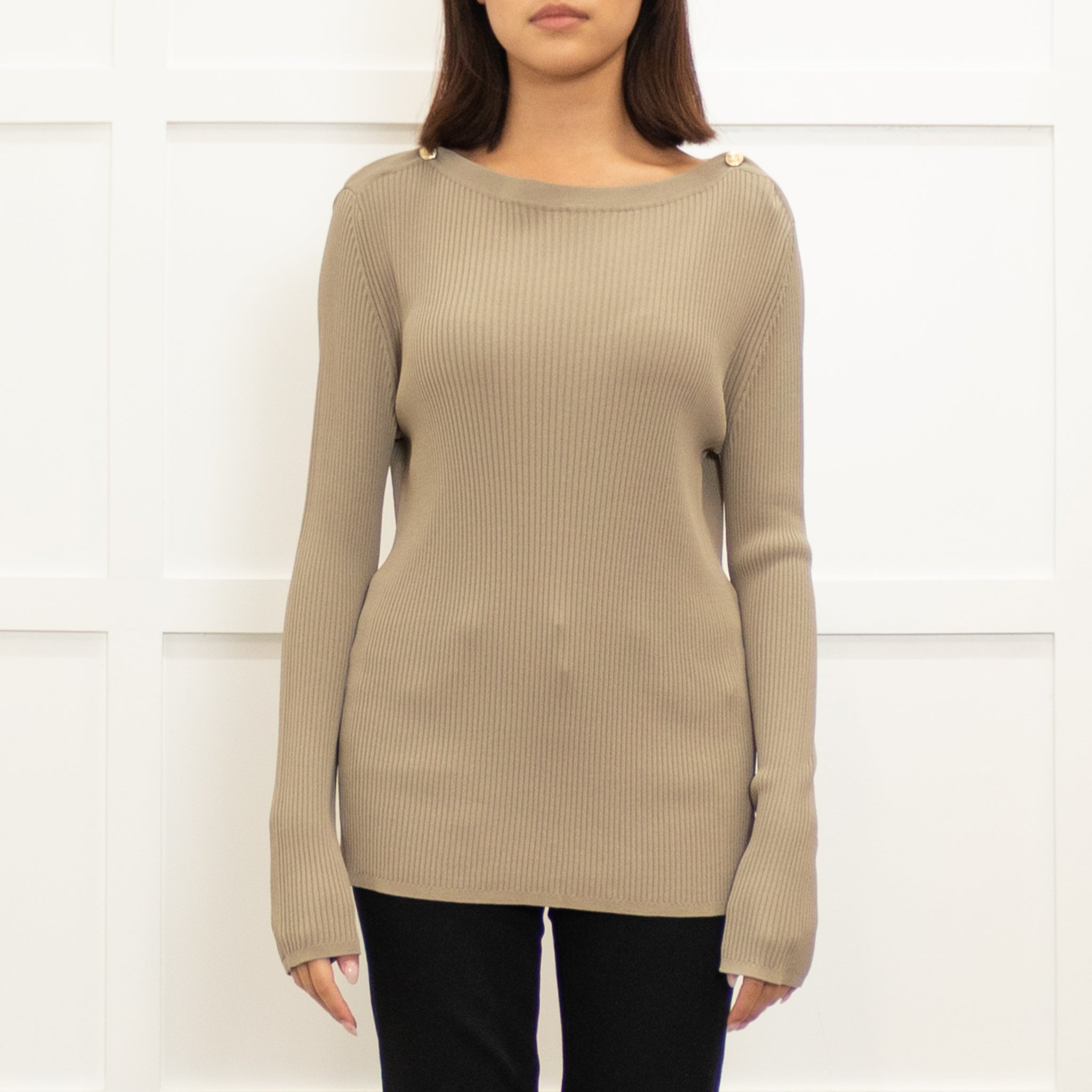 Max Mara Olive Green Ribbed Button Detail Long Sleeve Top
