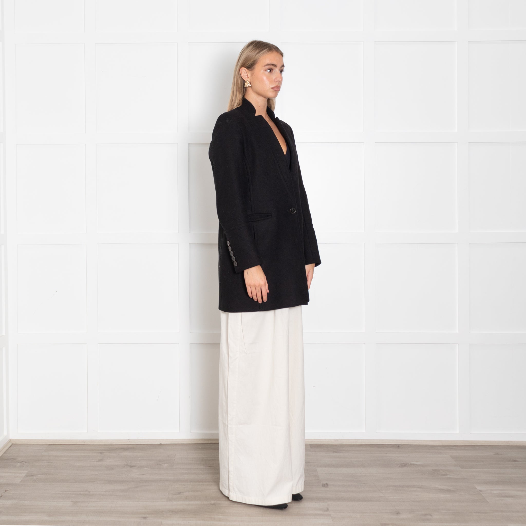 Me & Em Black Textured Wool Blend Coat