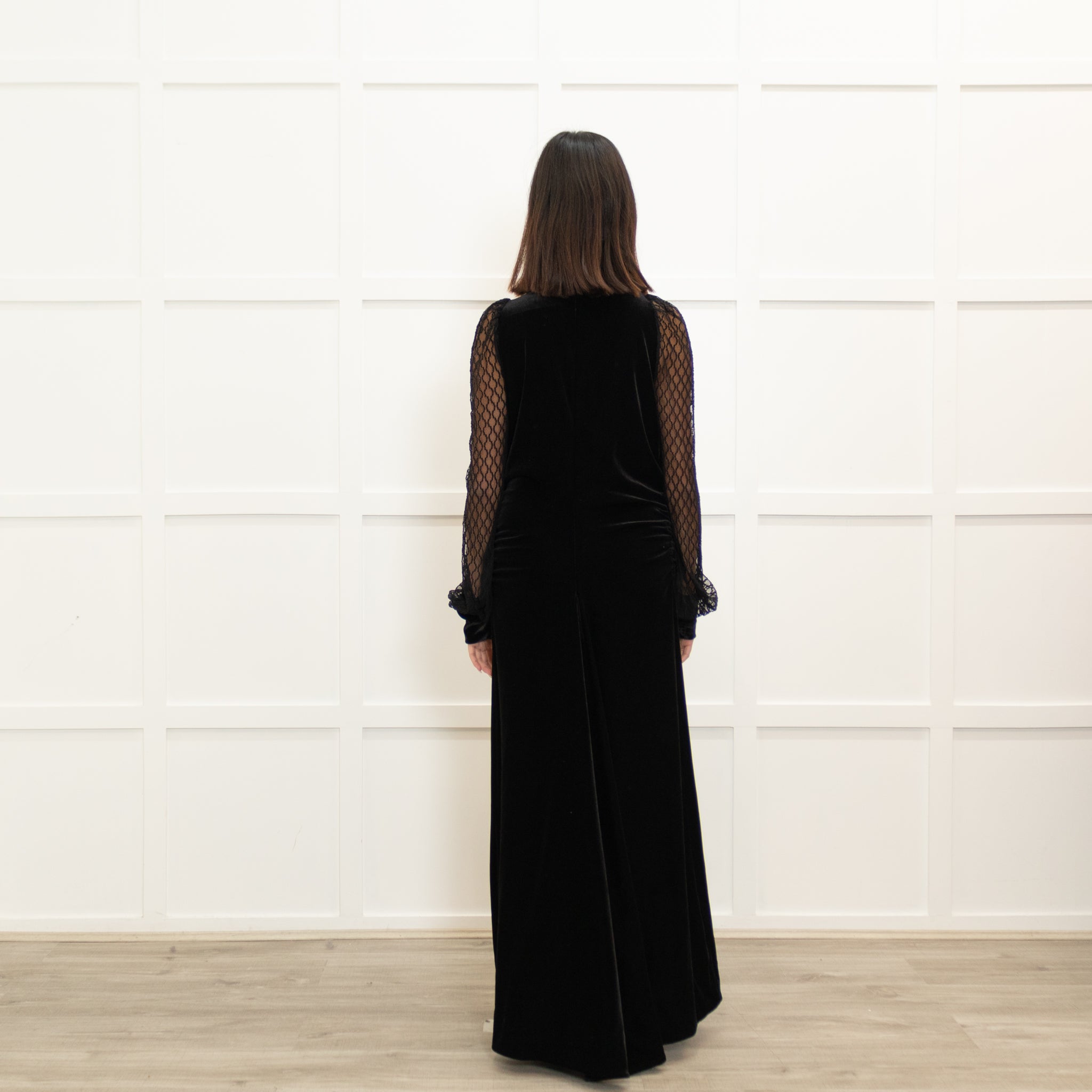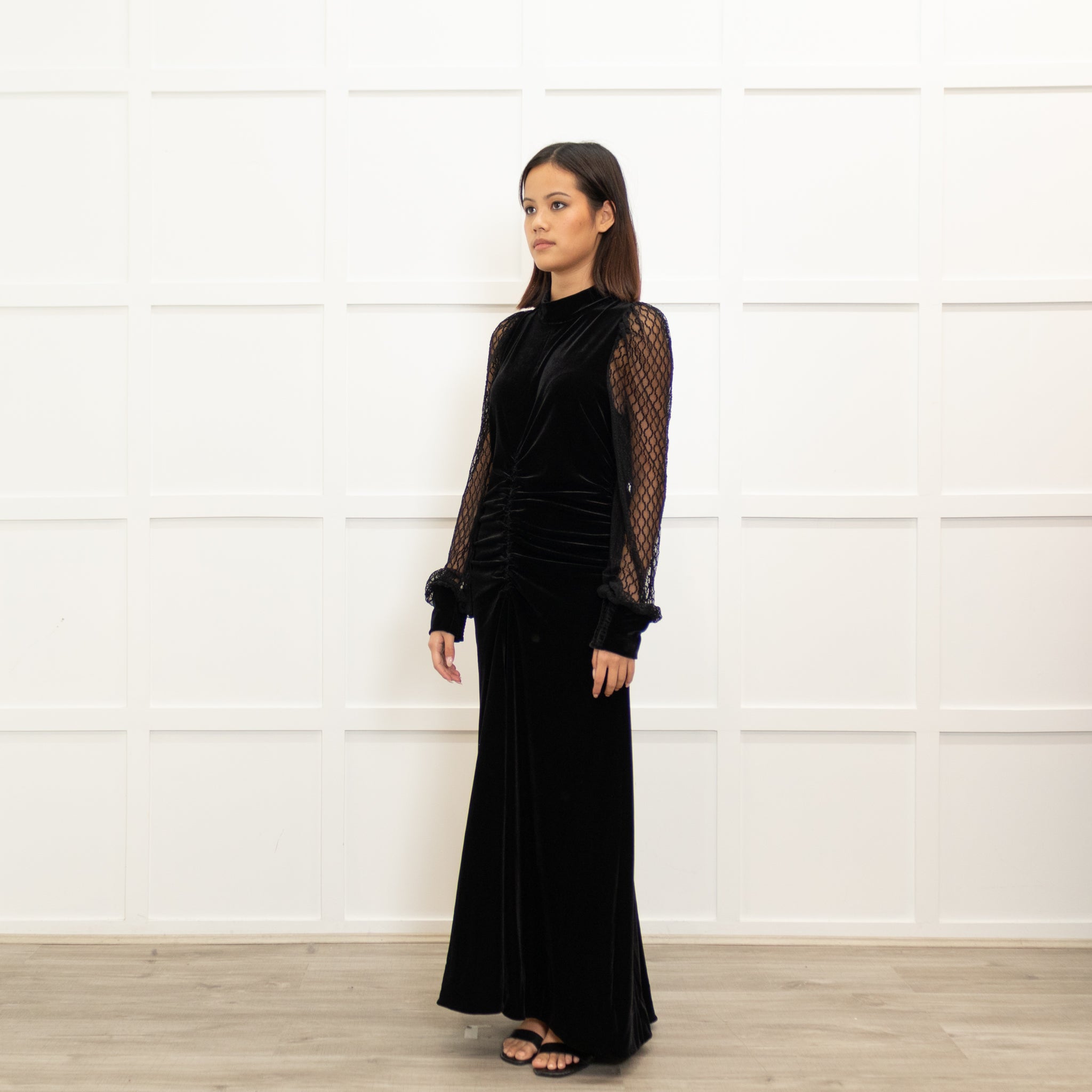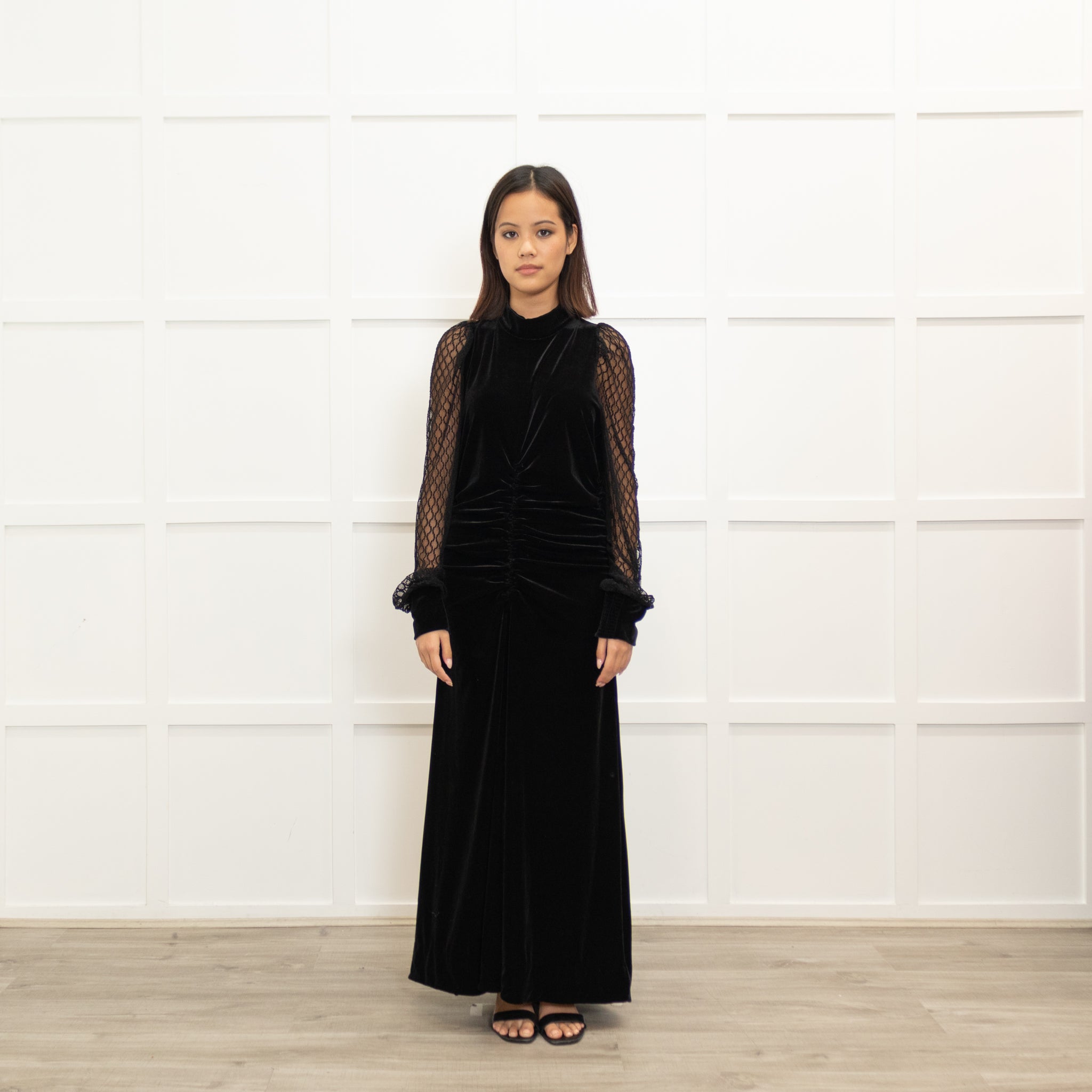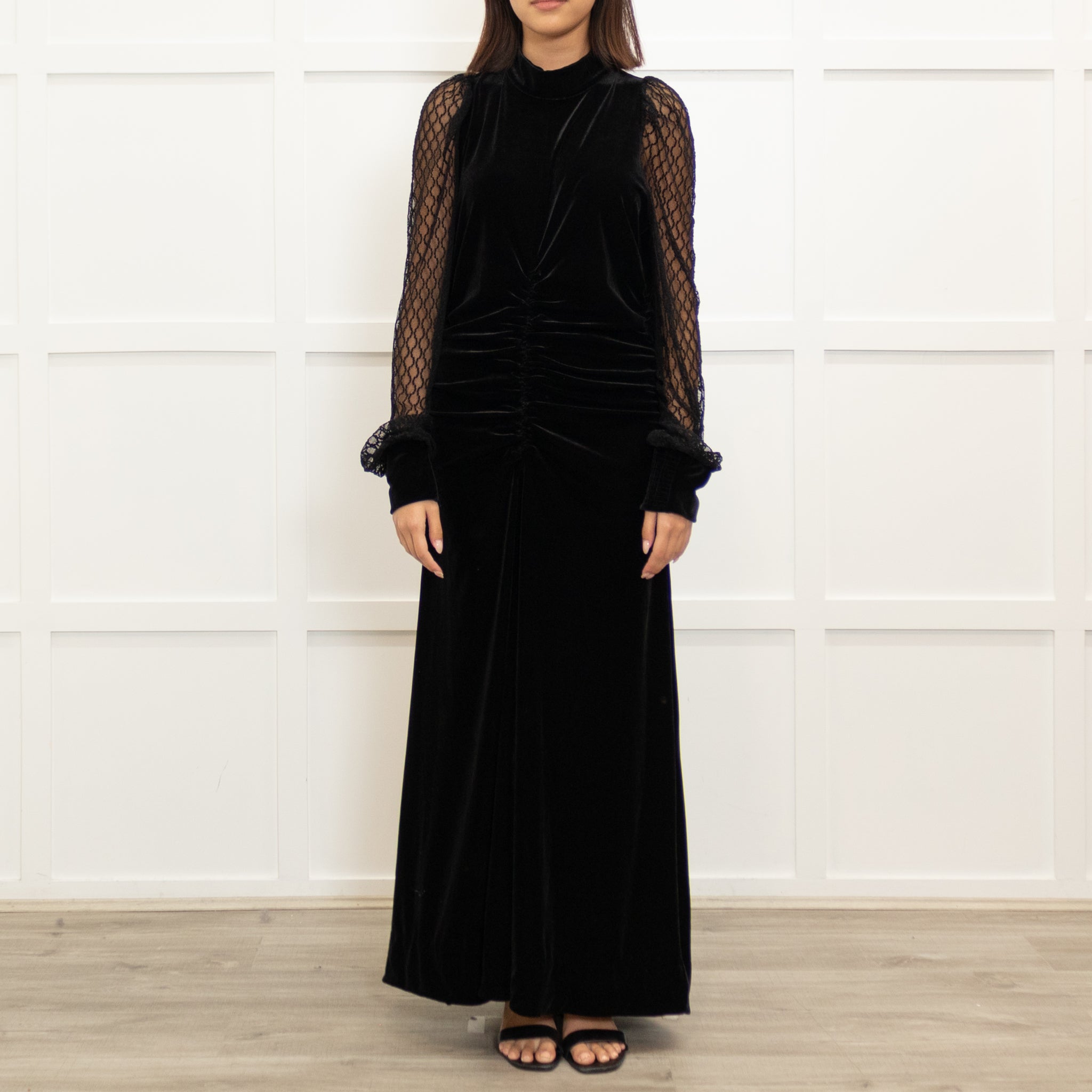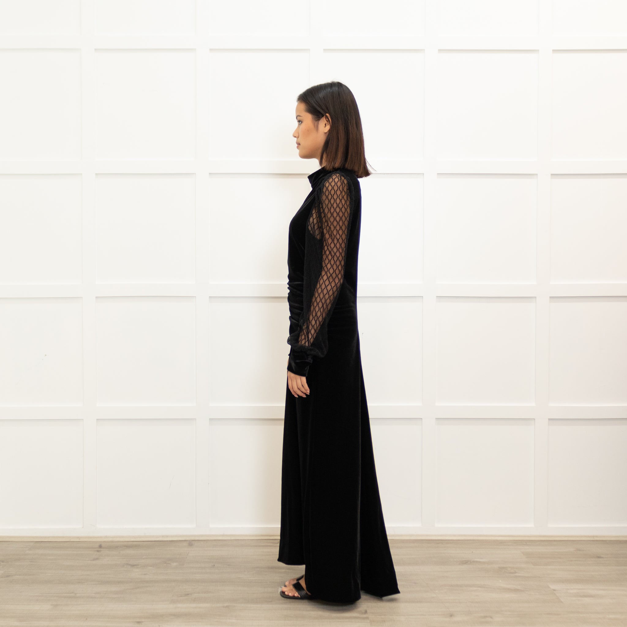 Me + Em Black Velvet Lace Sleeve Maxi Dress